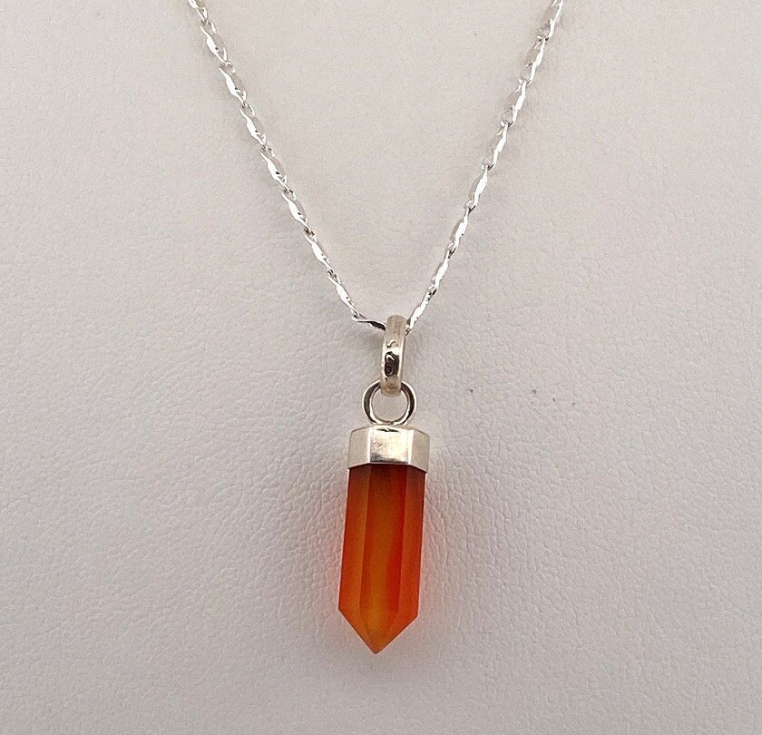 Interesting Natural Carnelian & Solid 925 Sterling Silver Drop Pendant Necklace