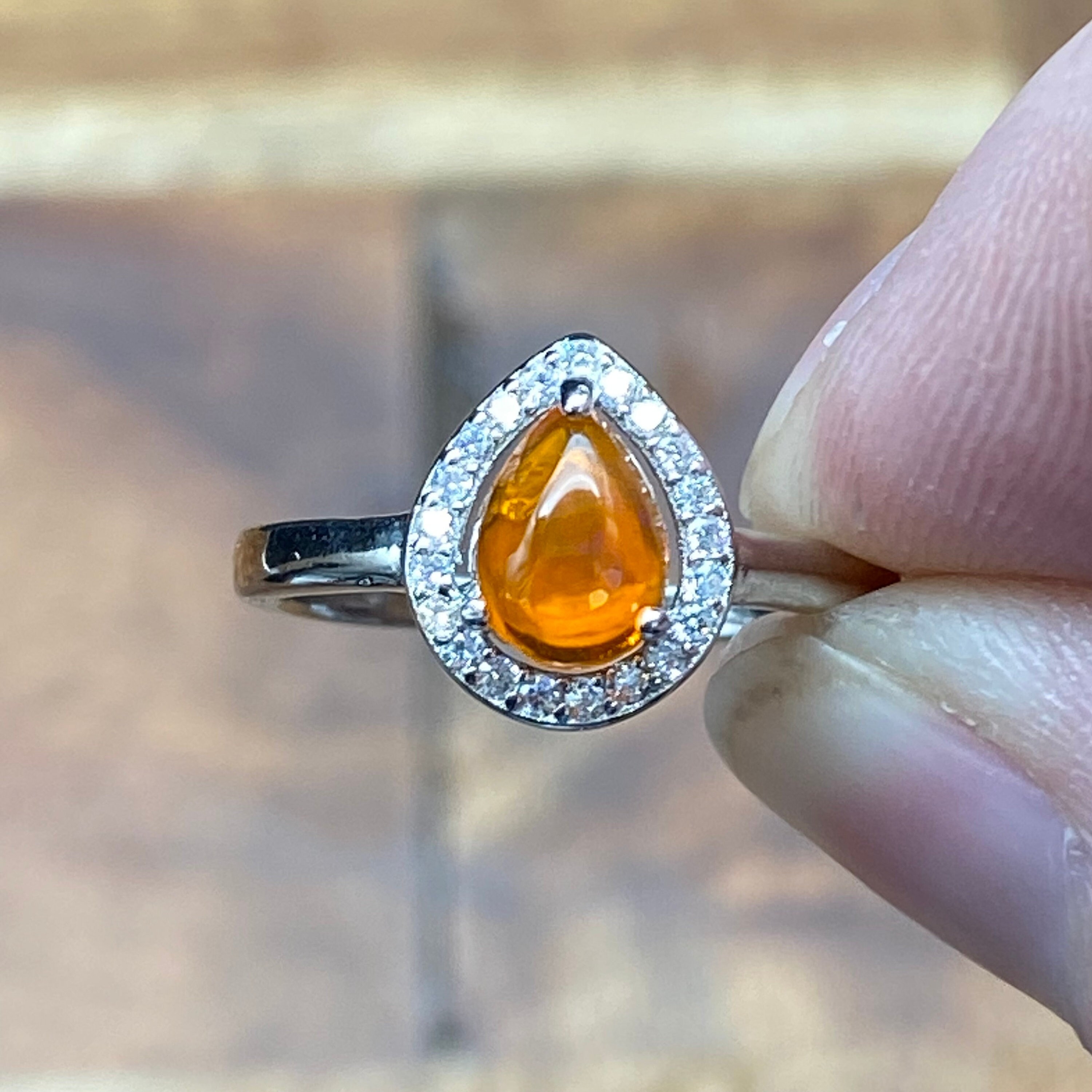 Beaming Natural Orange Fire Opal & Solid 925 Sterling Silver Statement Ring