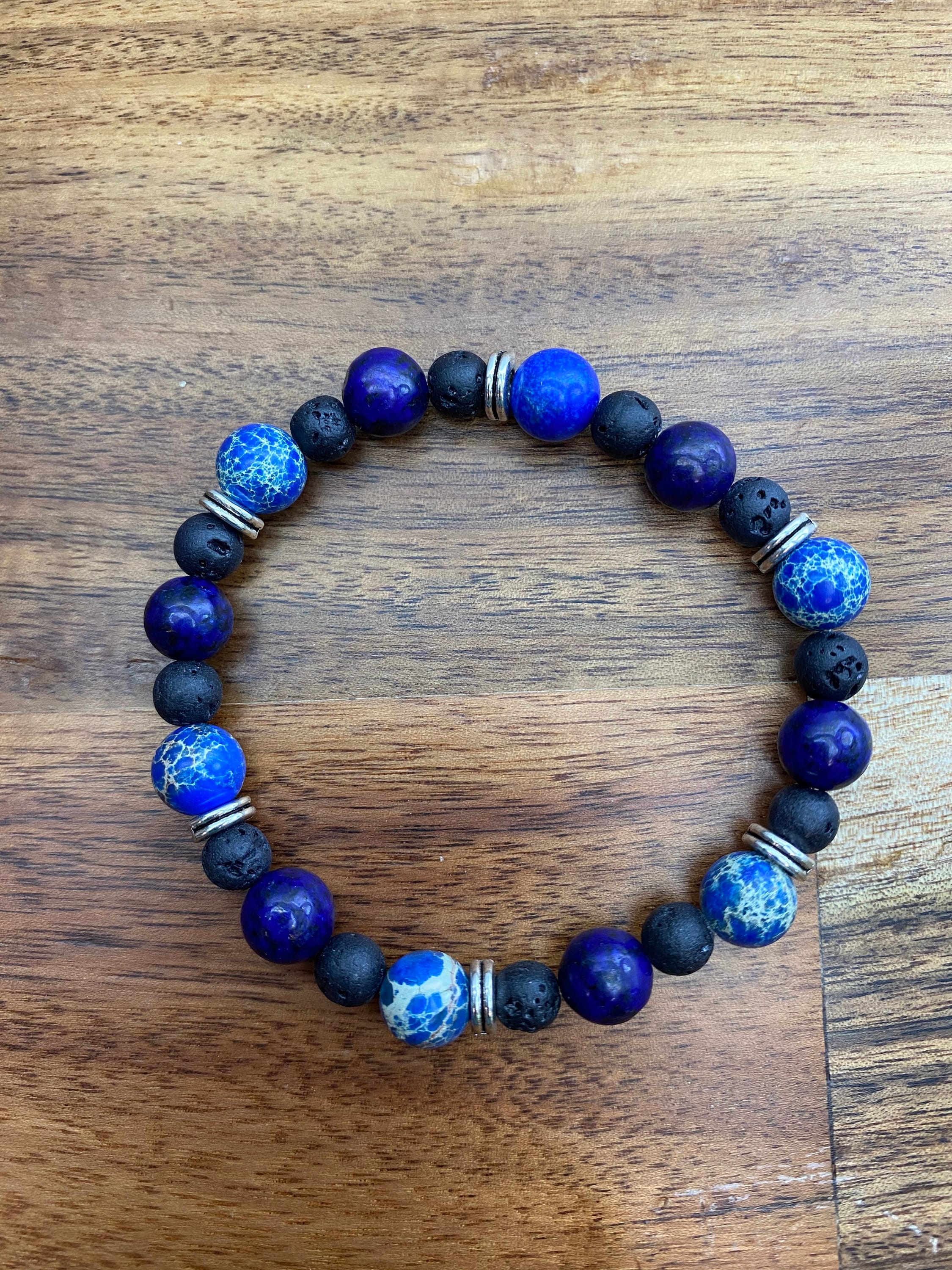 Lapis Lazuli, Ocean Sediment Jasper & Lava Rock Bracelet