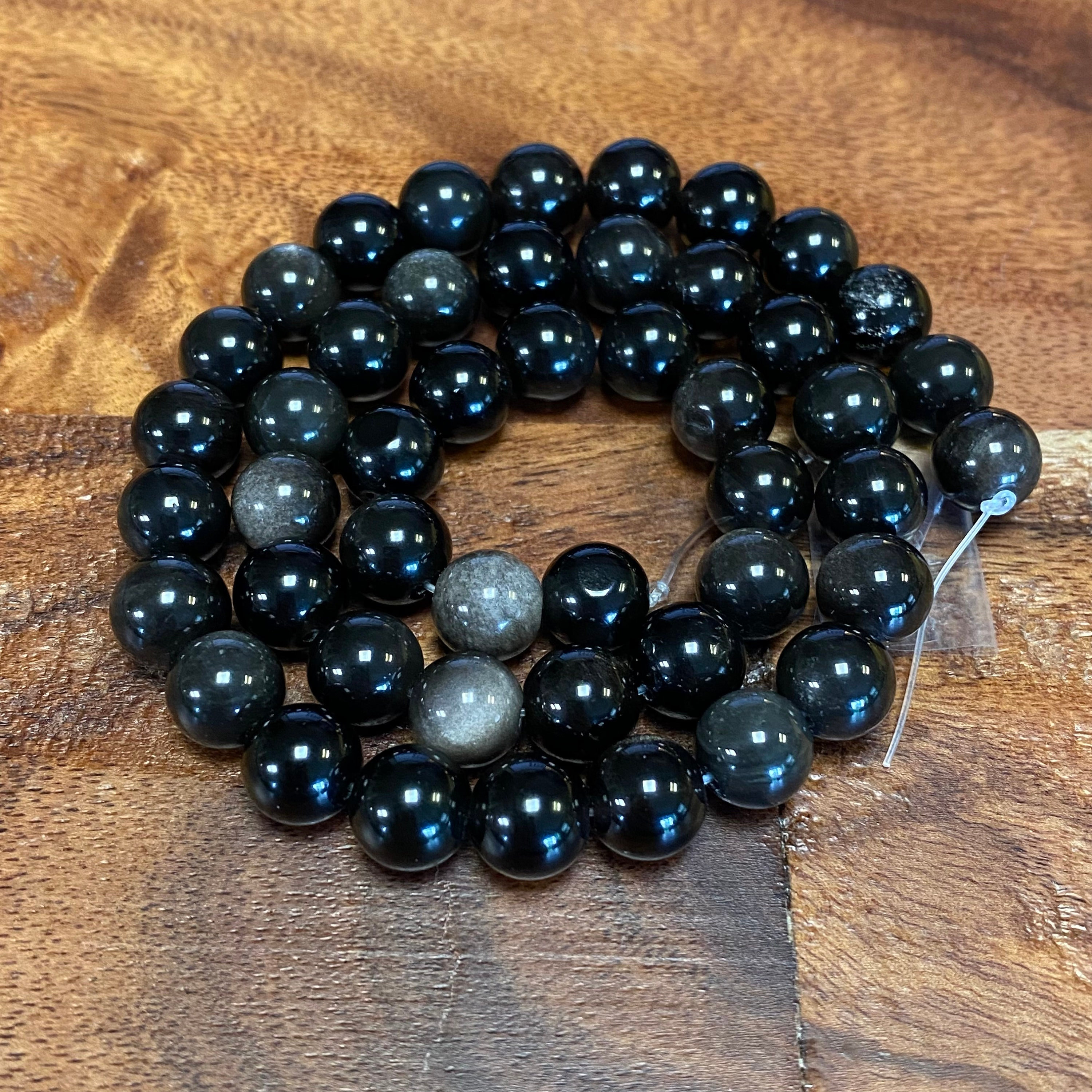 Premium Quality Natural Silver Obsidian Gemstone Beads for Jewelry/Craft Making, Round: 6mm, 8mm