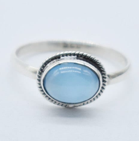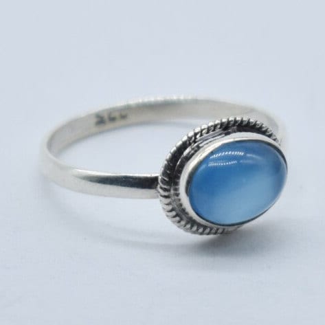 This ring is made of high-quality materials. The Blue Chalcedony is natural and untreated while the setting is made of solid 925 sterling silver.