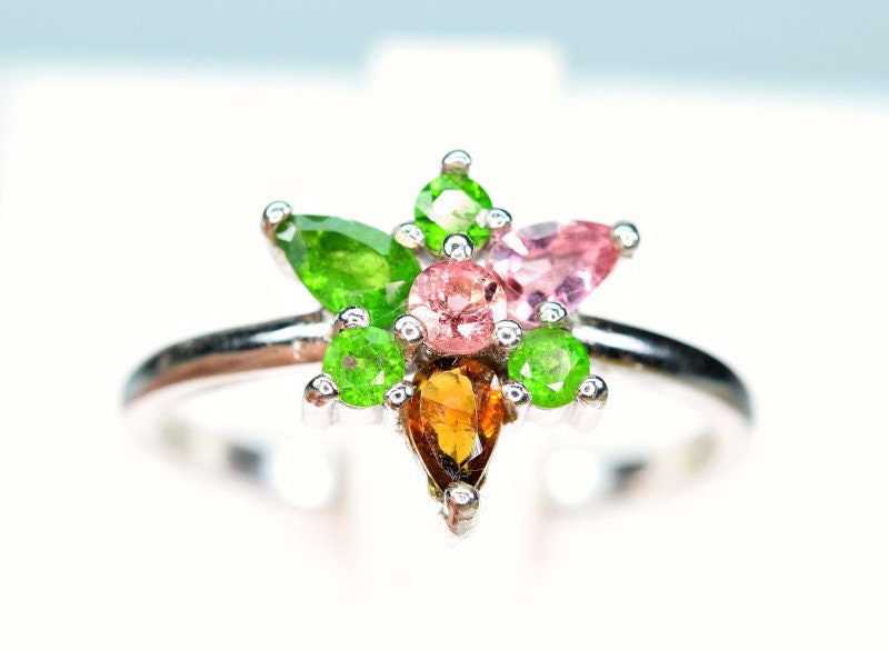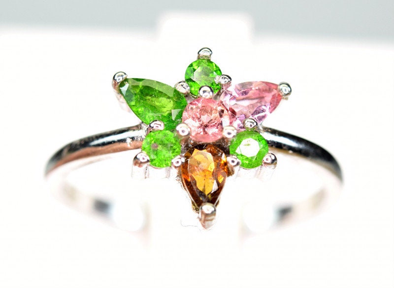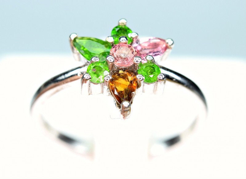 This ring is made of high-quality materials. The multicolored Tourmaline and Chrome Diopside are natural and untreated and the setting is made of solid 925 sterling silver.