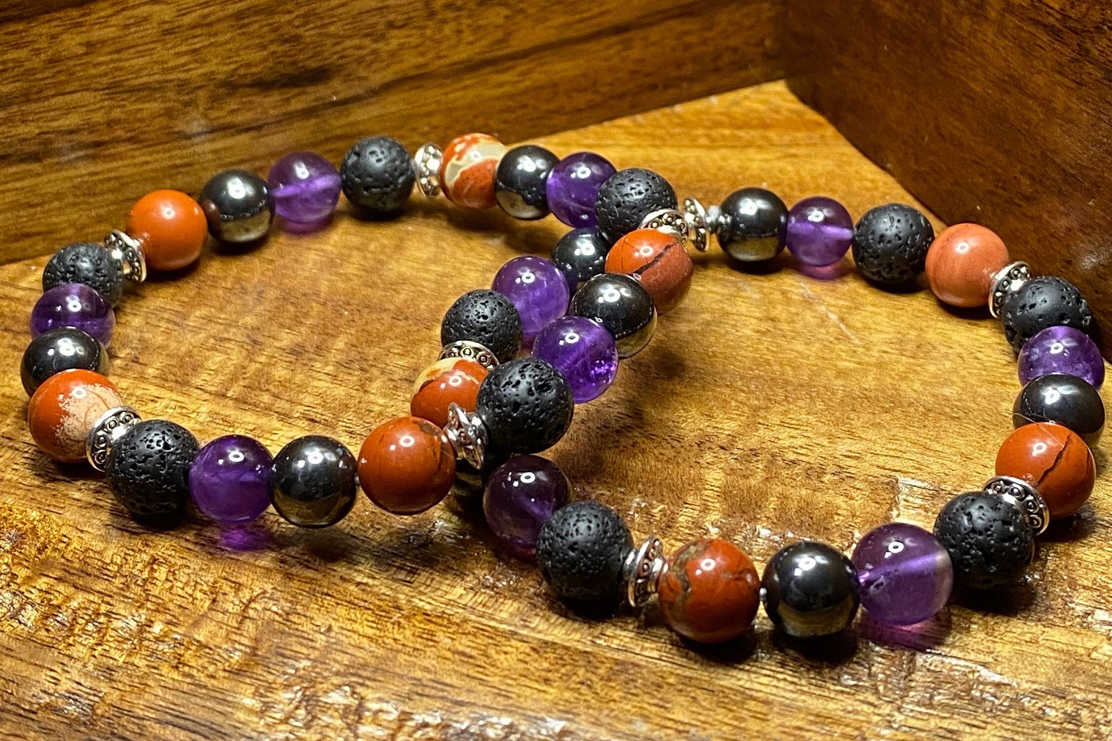 This Red Jasper, Hematite, Amethyst and Lava rock bracelet will bring health, healing, strength and power to all those looking for it during these rough times. I choose to use 8mm size bead for the perfect fit and the natural stone are accentuated the most beautiful silver spacers.