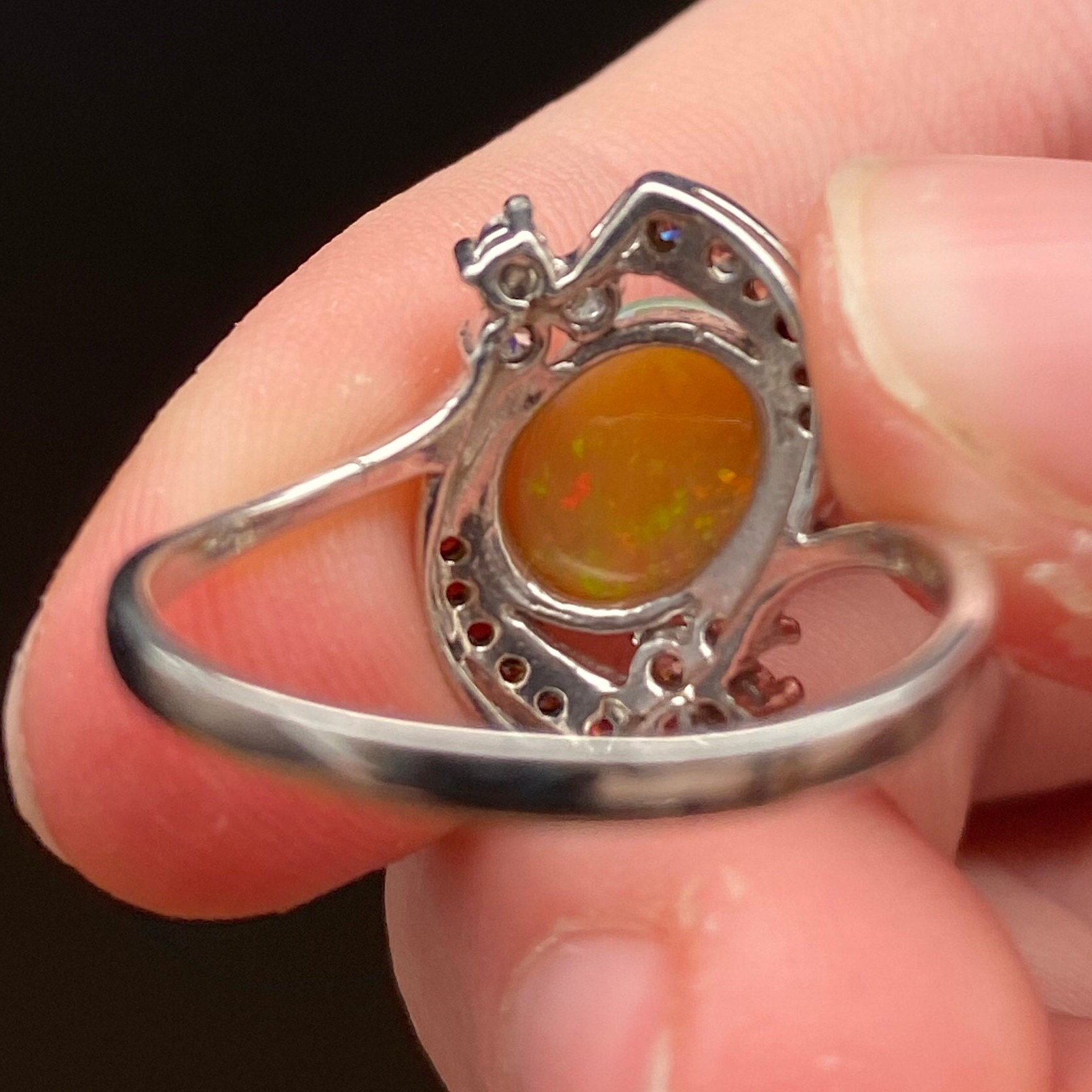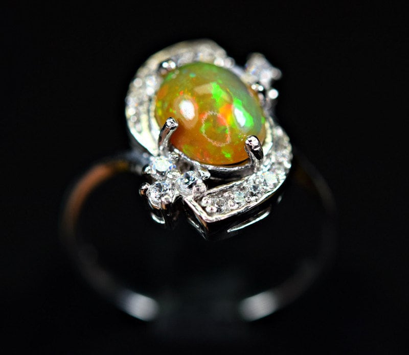 This ring is made of high-quality materials. The Ethiopian Welo Rolling/Pinfire Flash Fire Opal is natural and untreated and the setting is made of solid 925 sterling silver. The small stones around the main stone are high quality cubic zirconia.