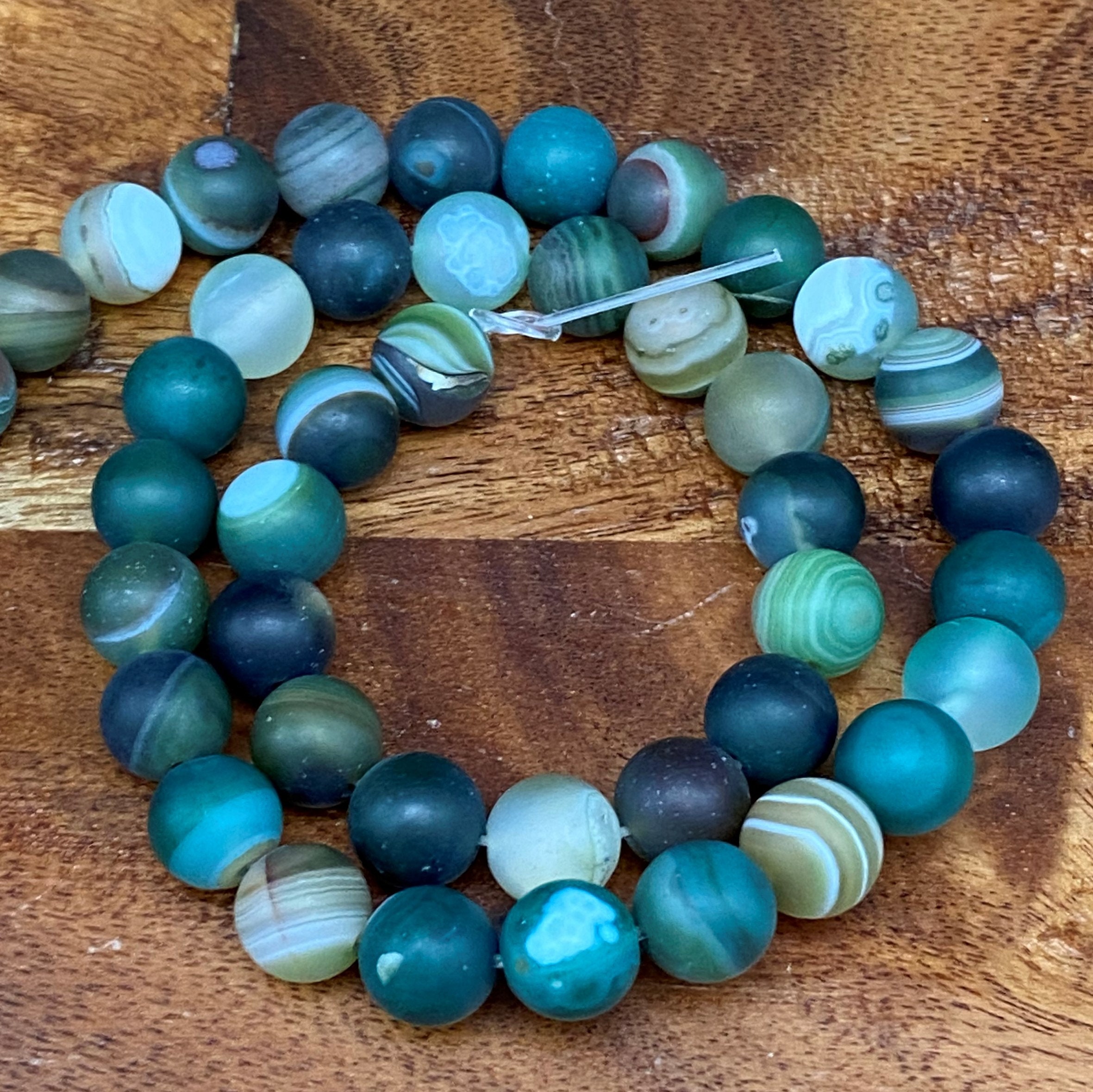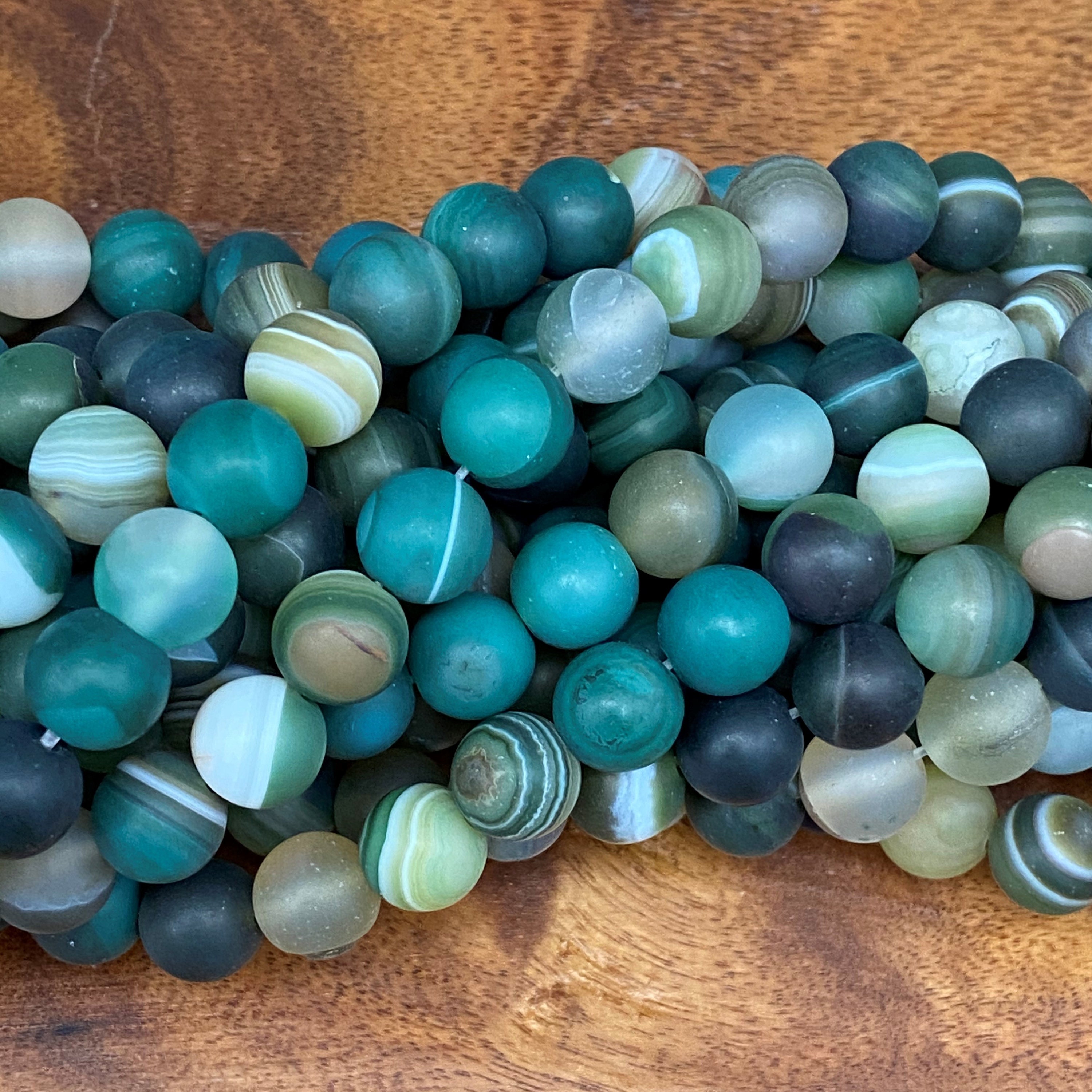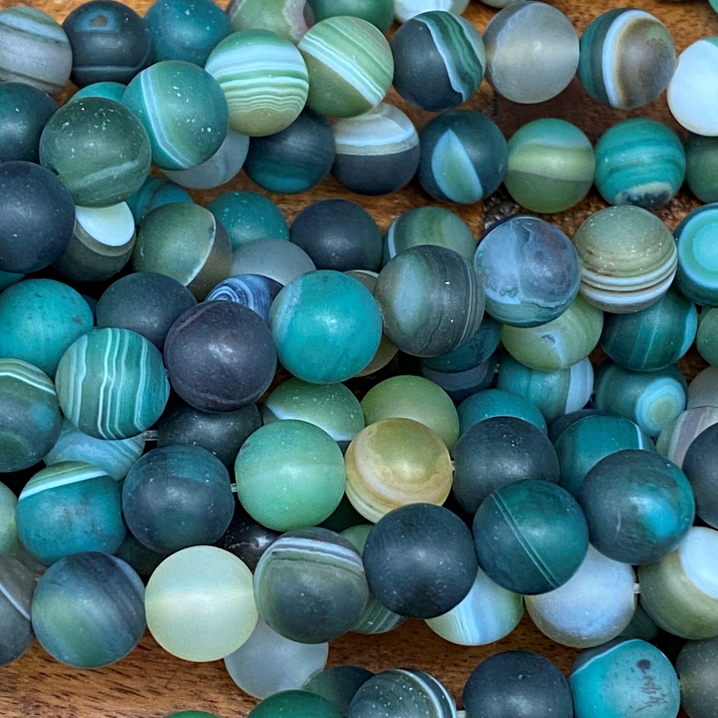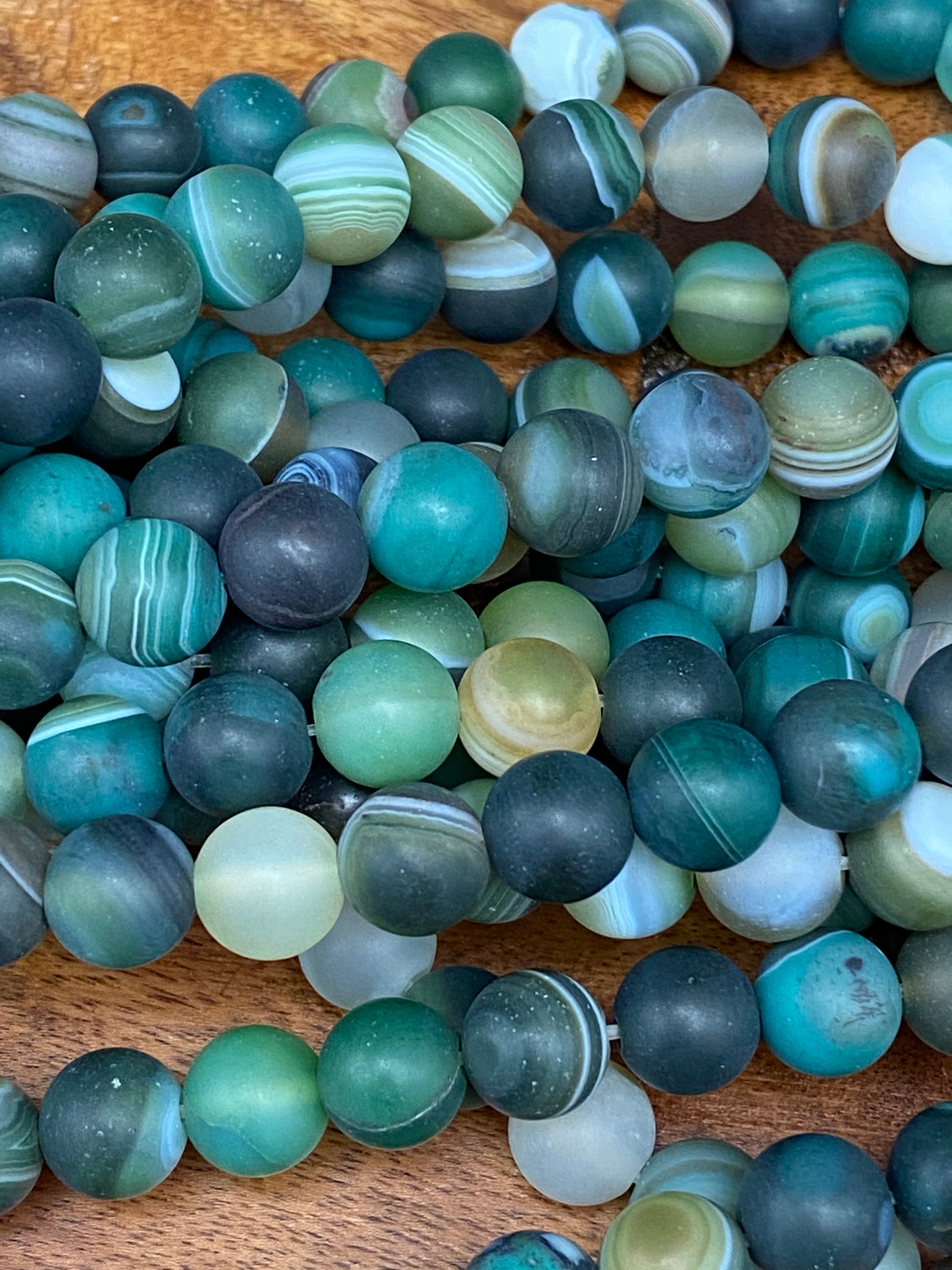 Beautiful Natural Matte Mixed Colored Green Striped Agate Gemstone Beads for Jewelry/Craft Making, Round 8mm (44-48 pieces)