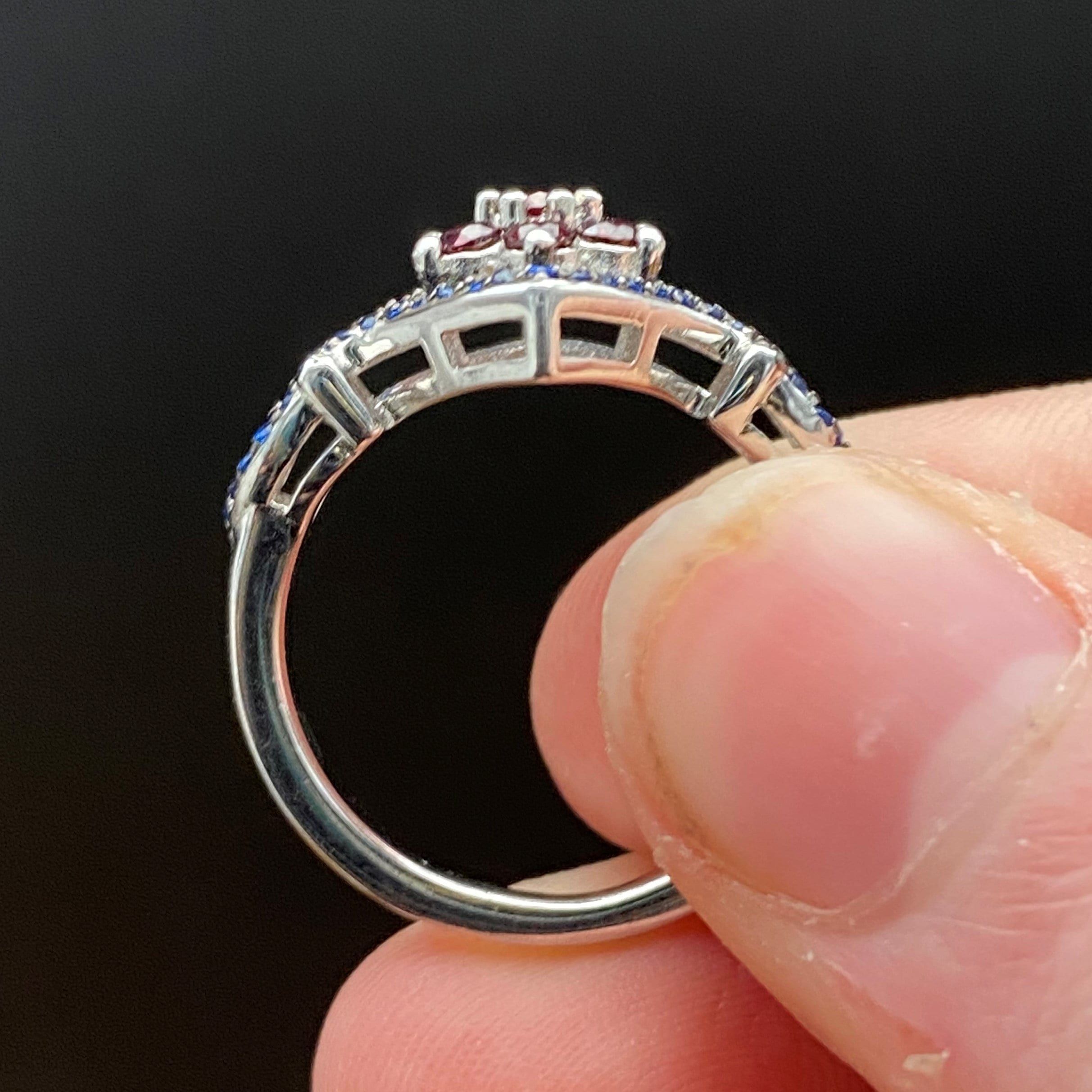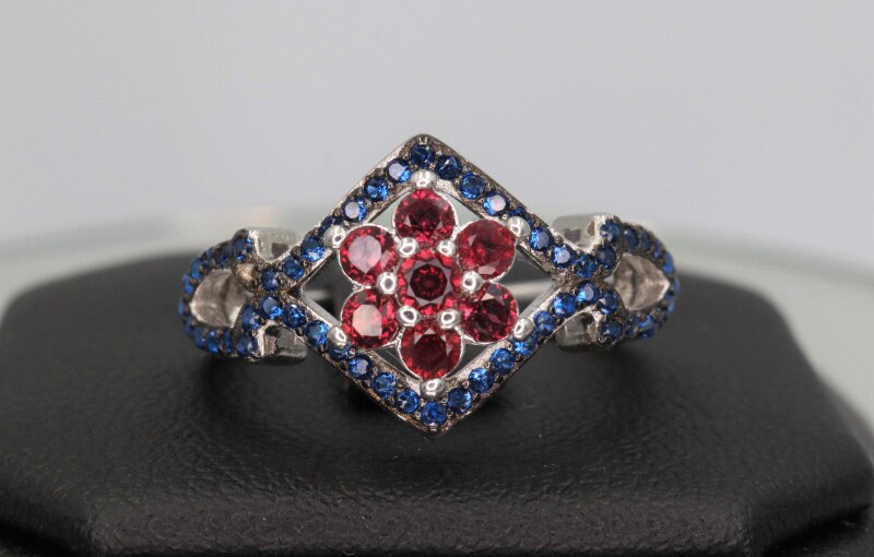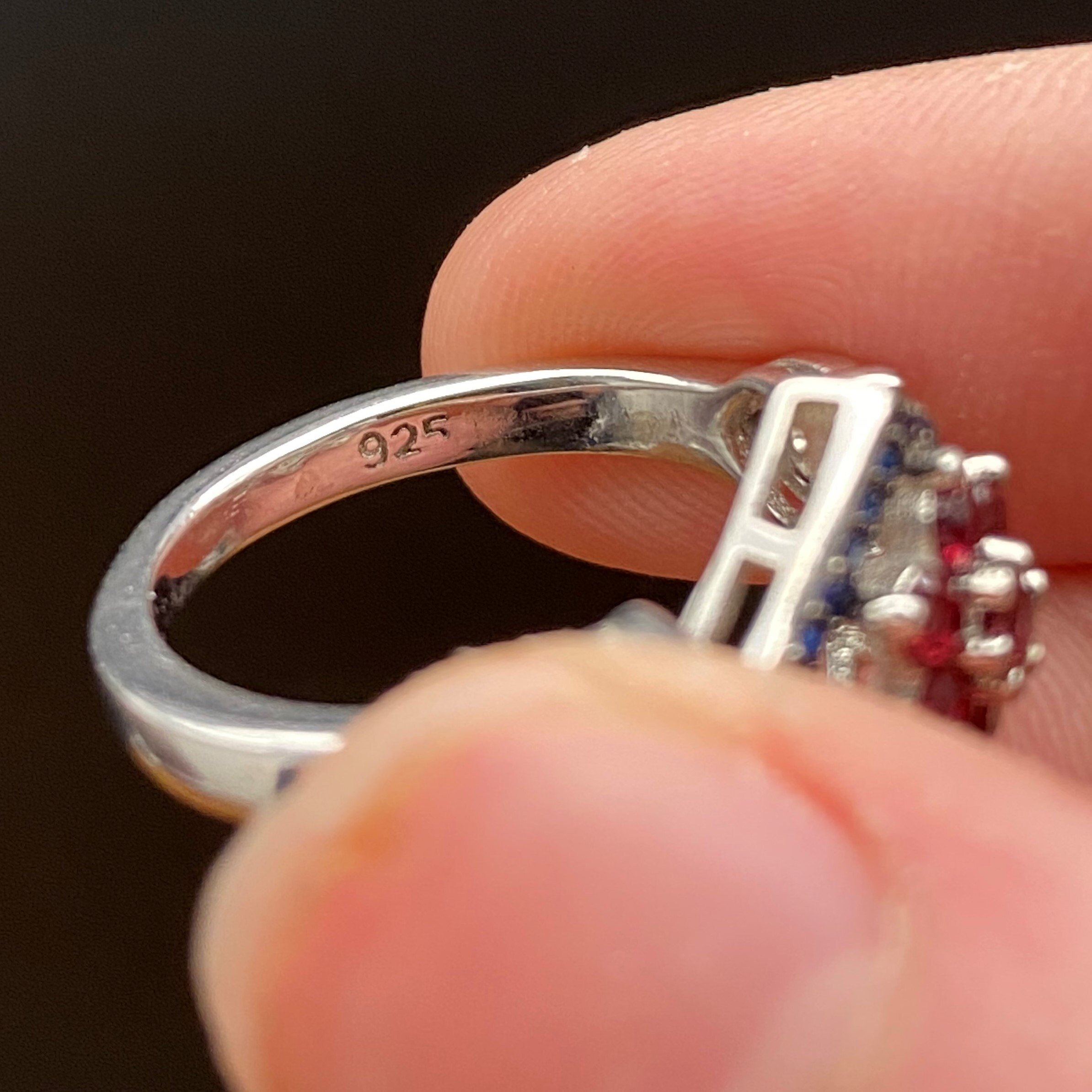 This ring is made of high-quality materials. The Rhodolite Garnet and Chrome Diopside are natural/untreated and the setting is made of solid 925 sterling silver.