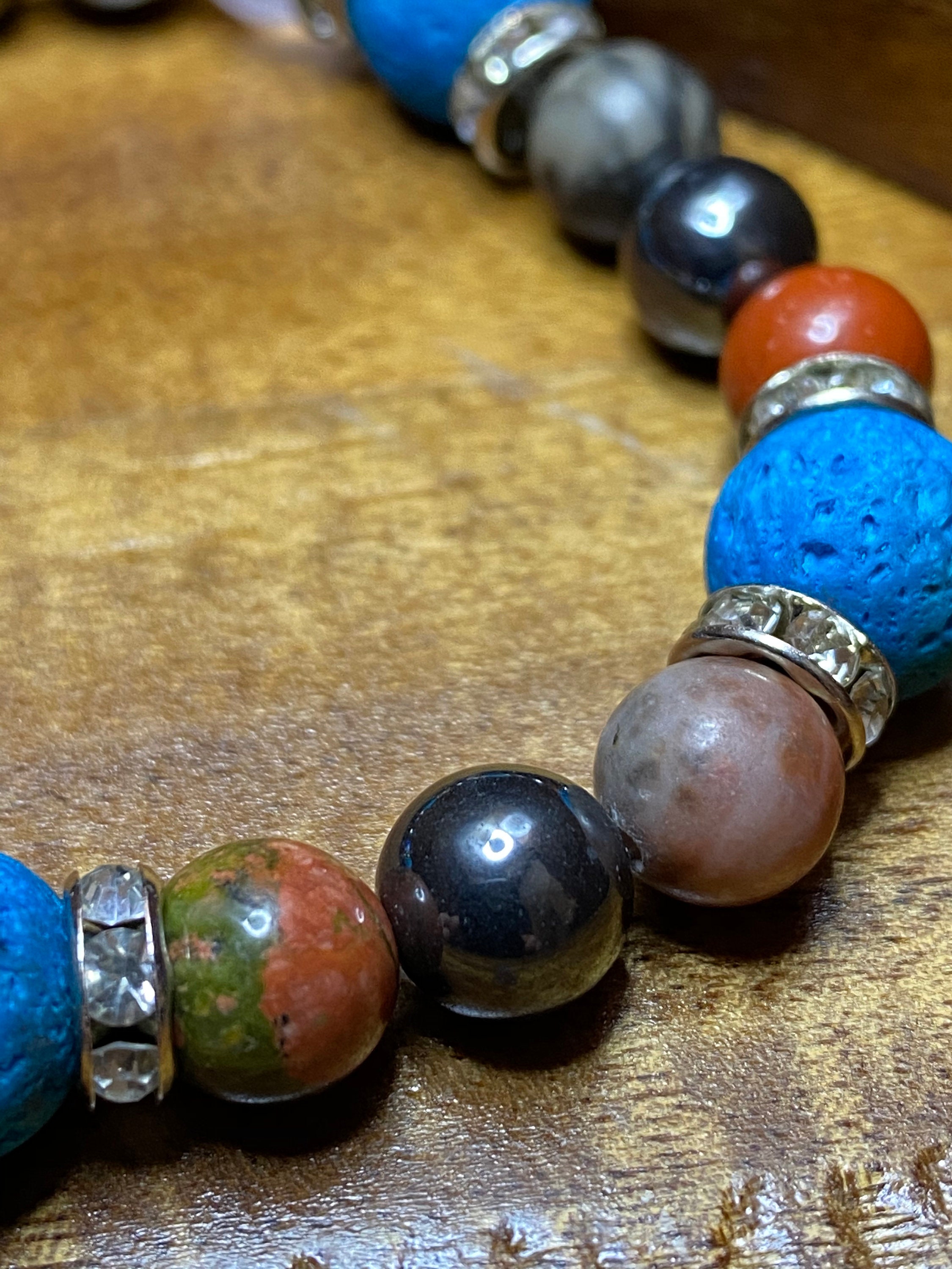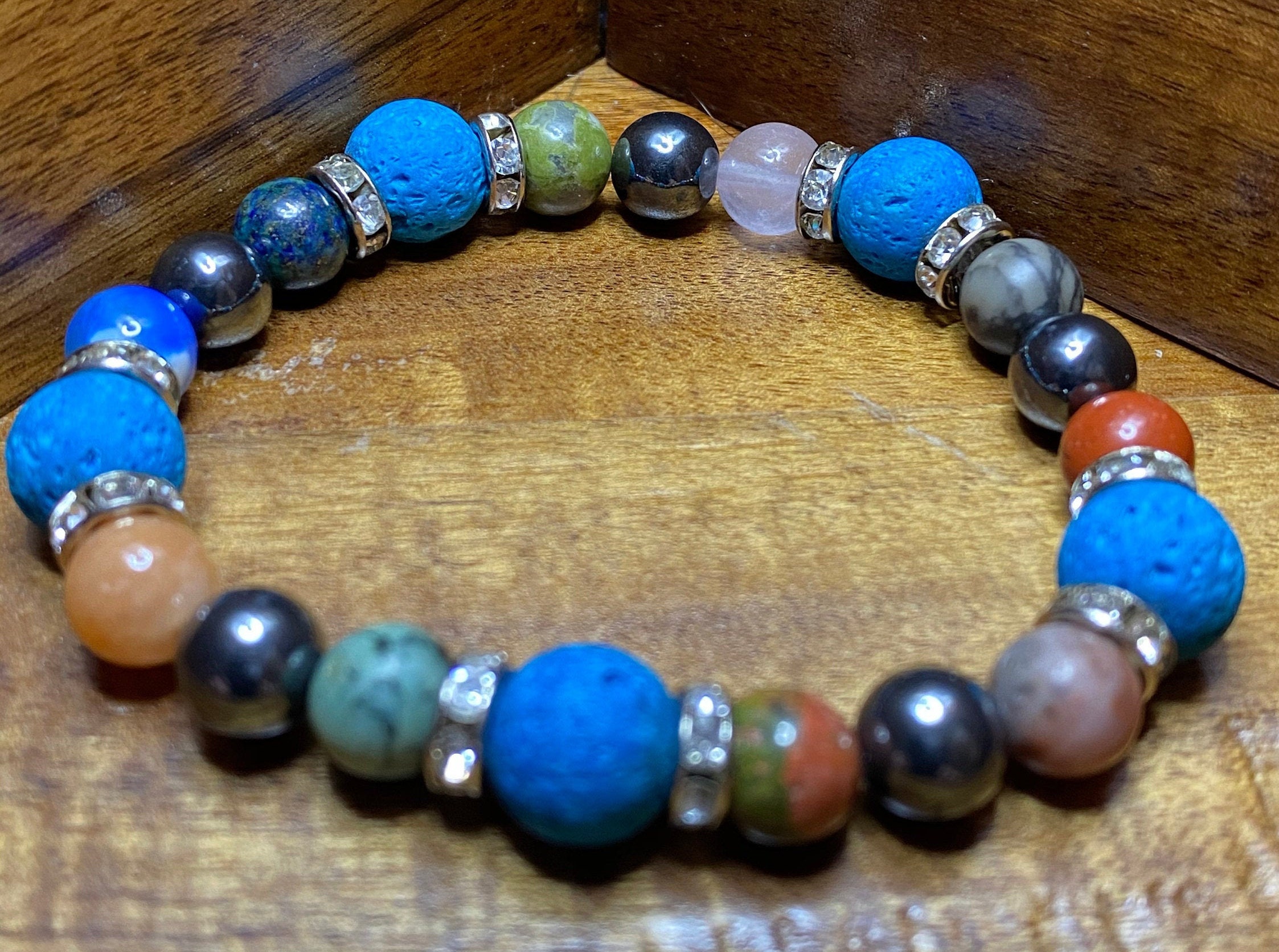 This is a natural stone and gemstone beaded bracelet made in the USA by me.