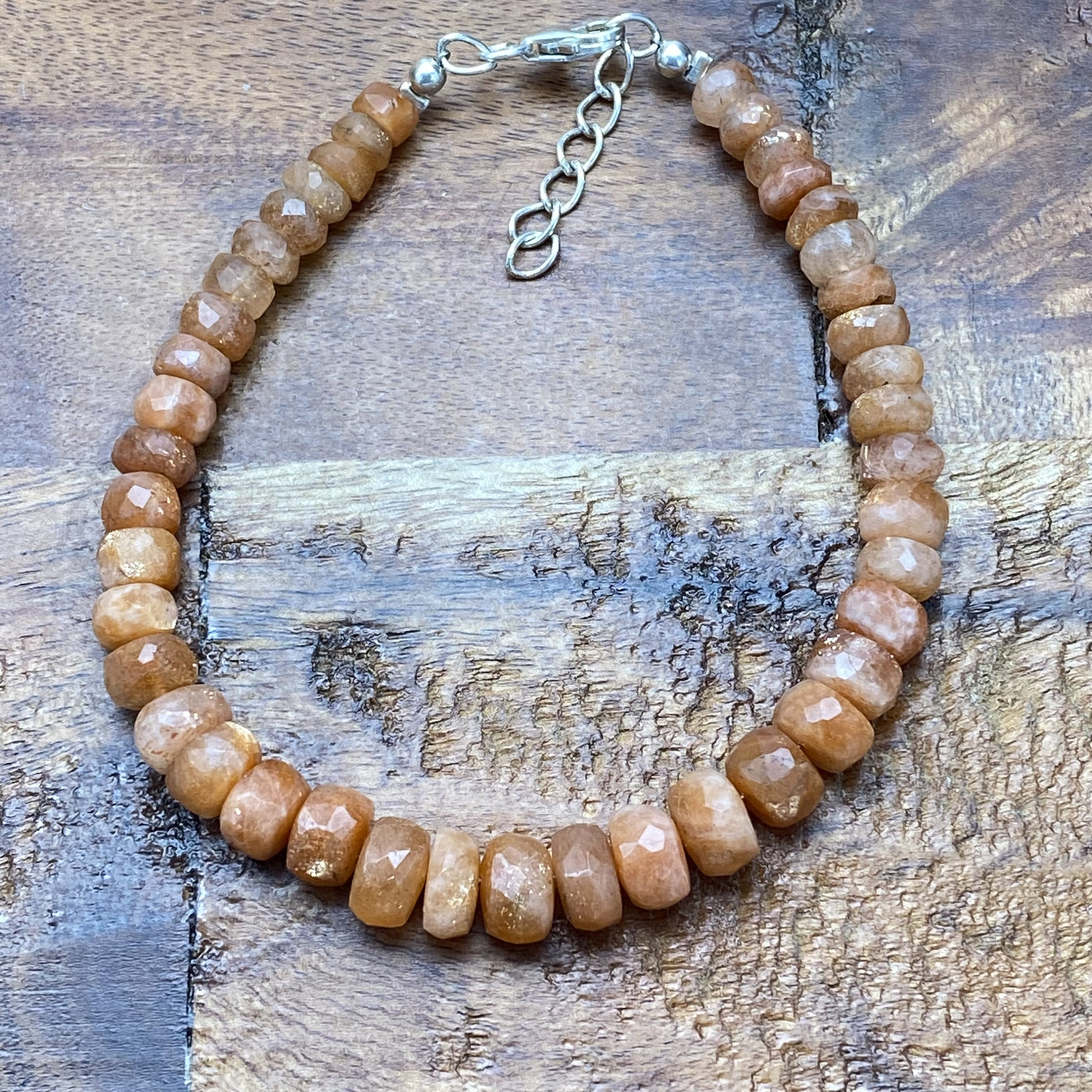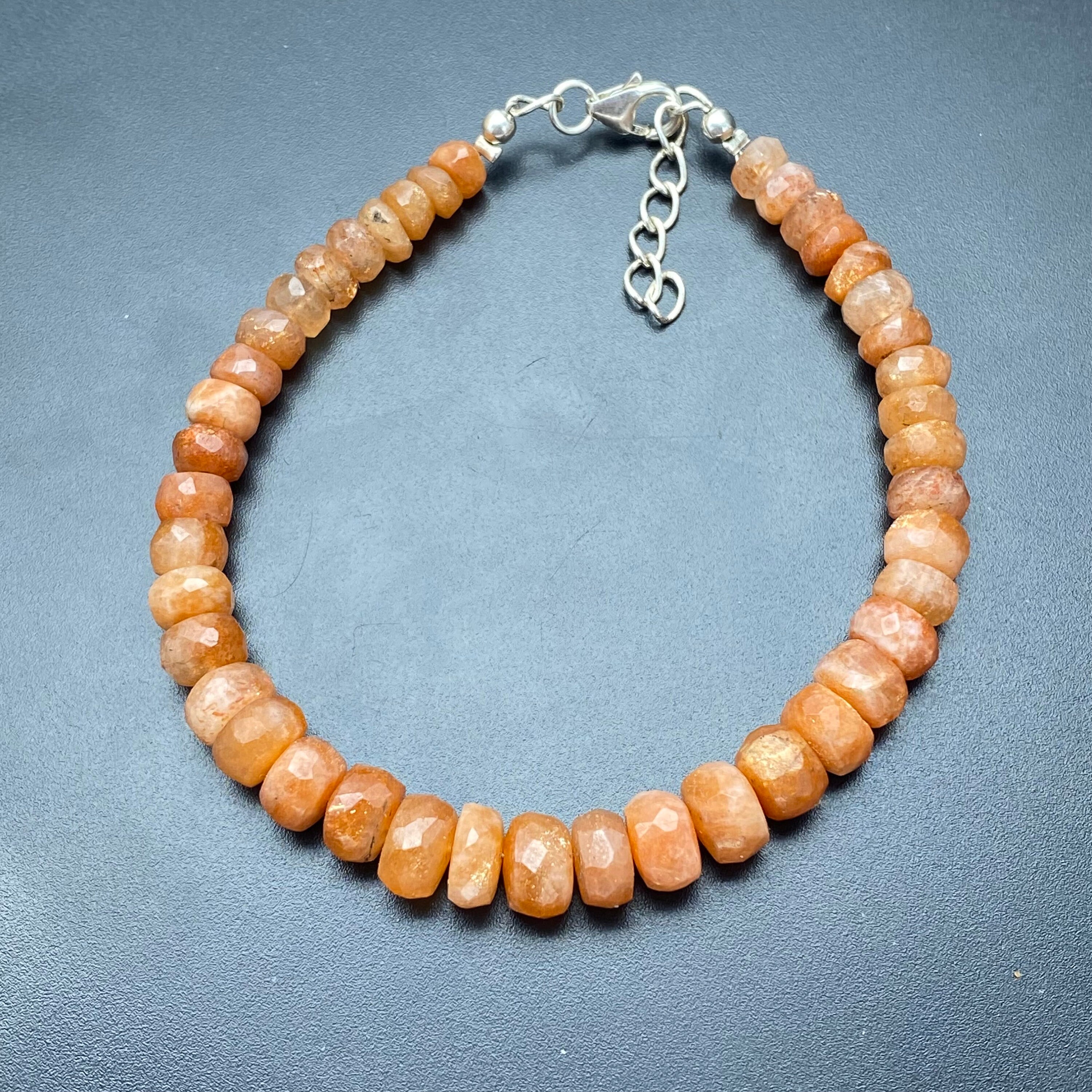 This bracelet is made of high-quality materials. This Indian Sunstone is natural and untreated and the accents and closure are made of solid 925 sterling silver.