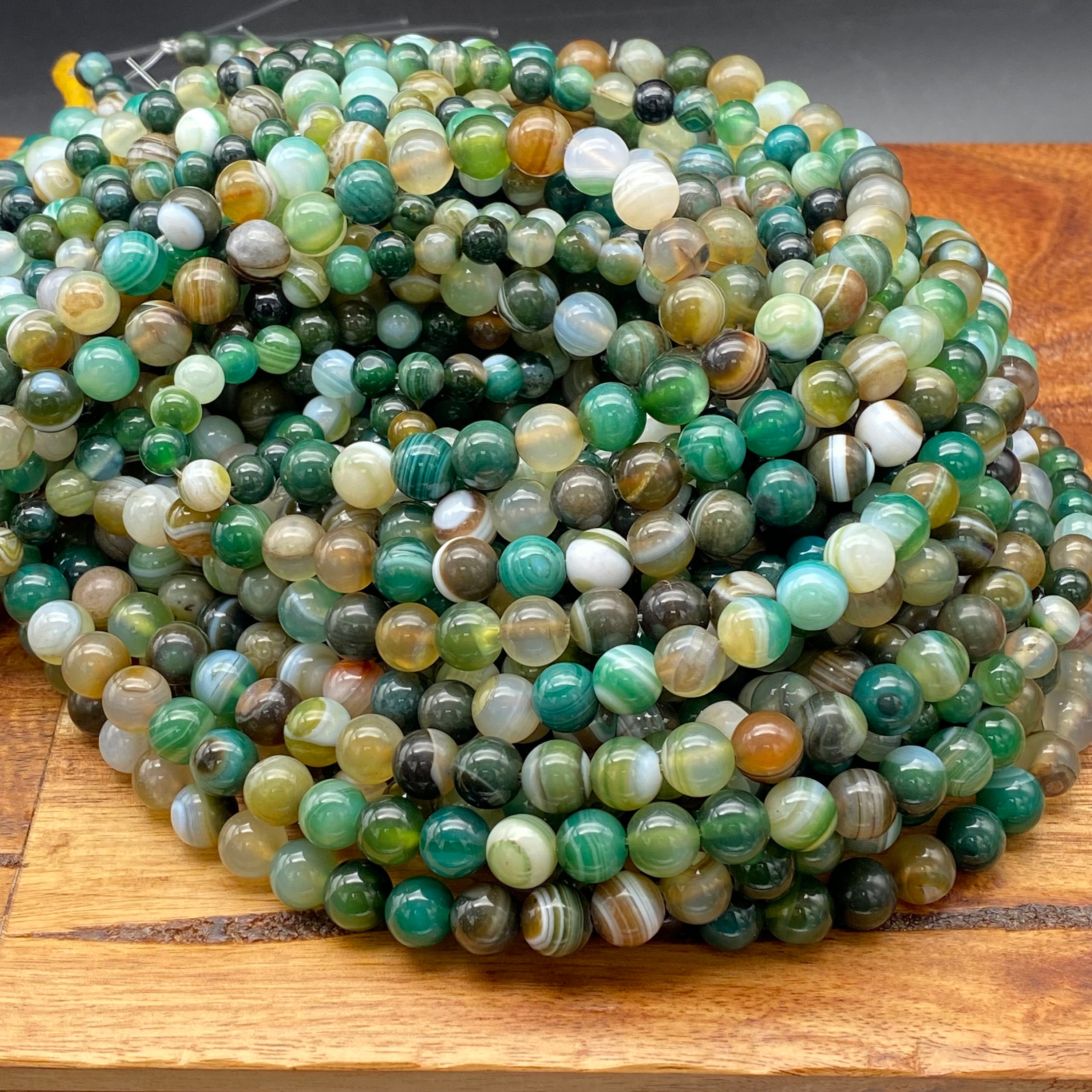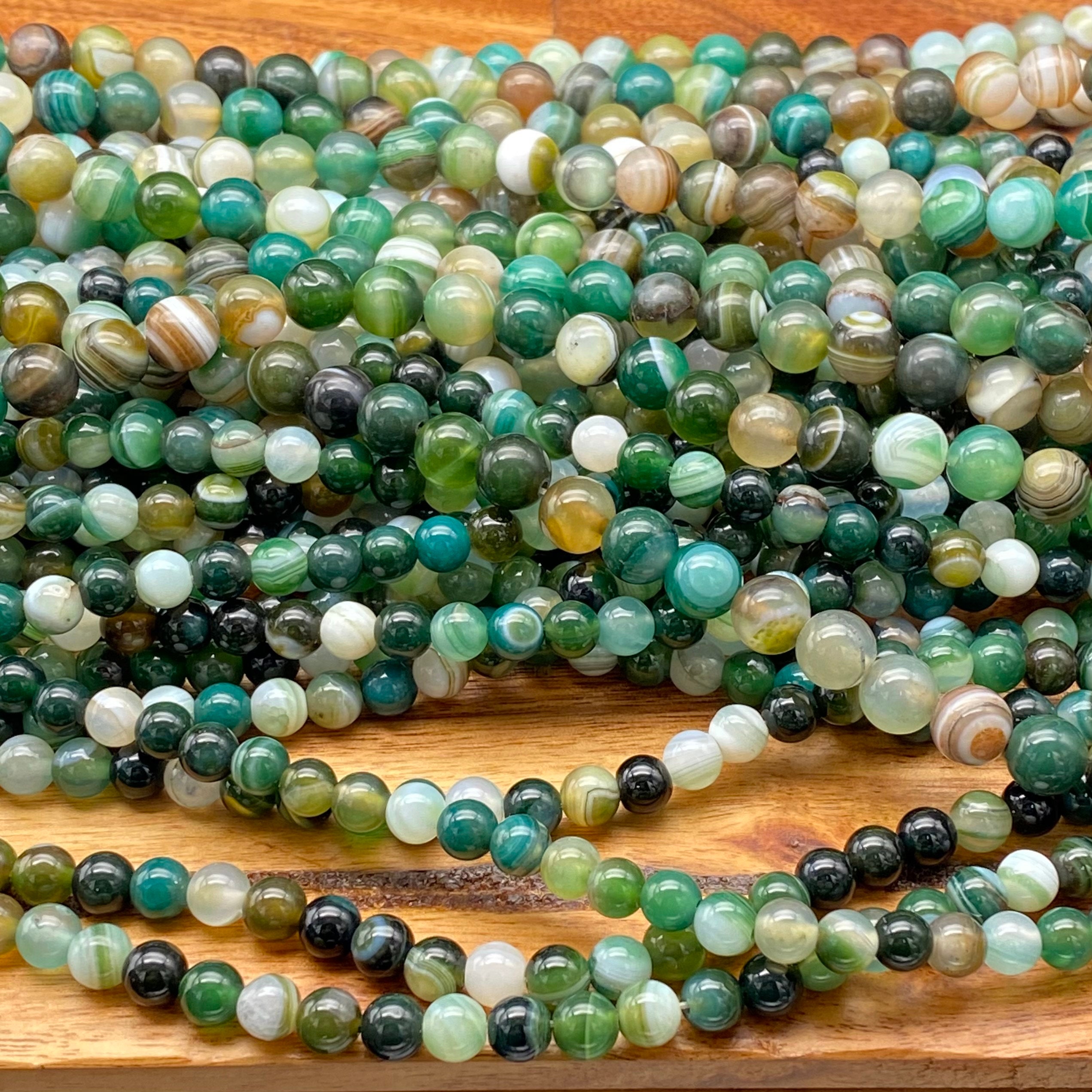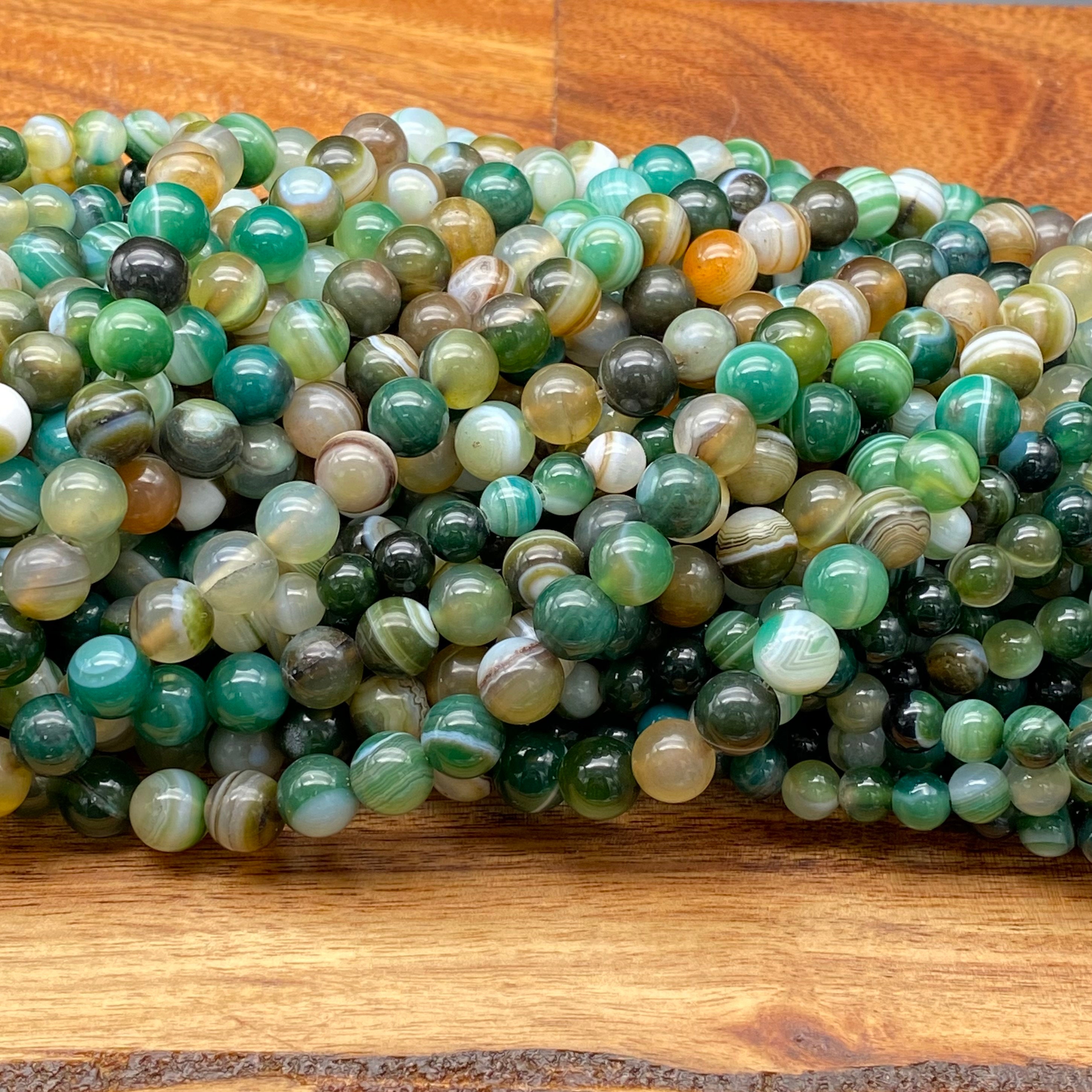 Charming Natural Mixed Colored Green Striped Agate Gemstone Beads for Jewelry/Craft Making, Round: 6mm, 8mm