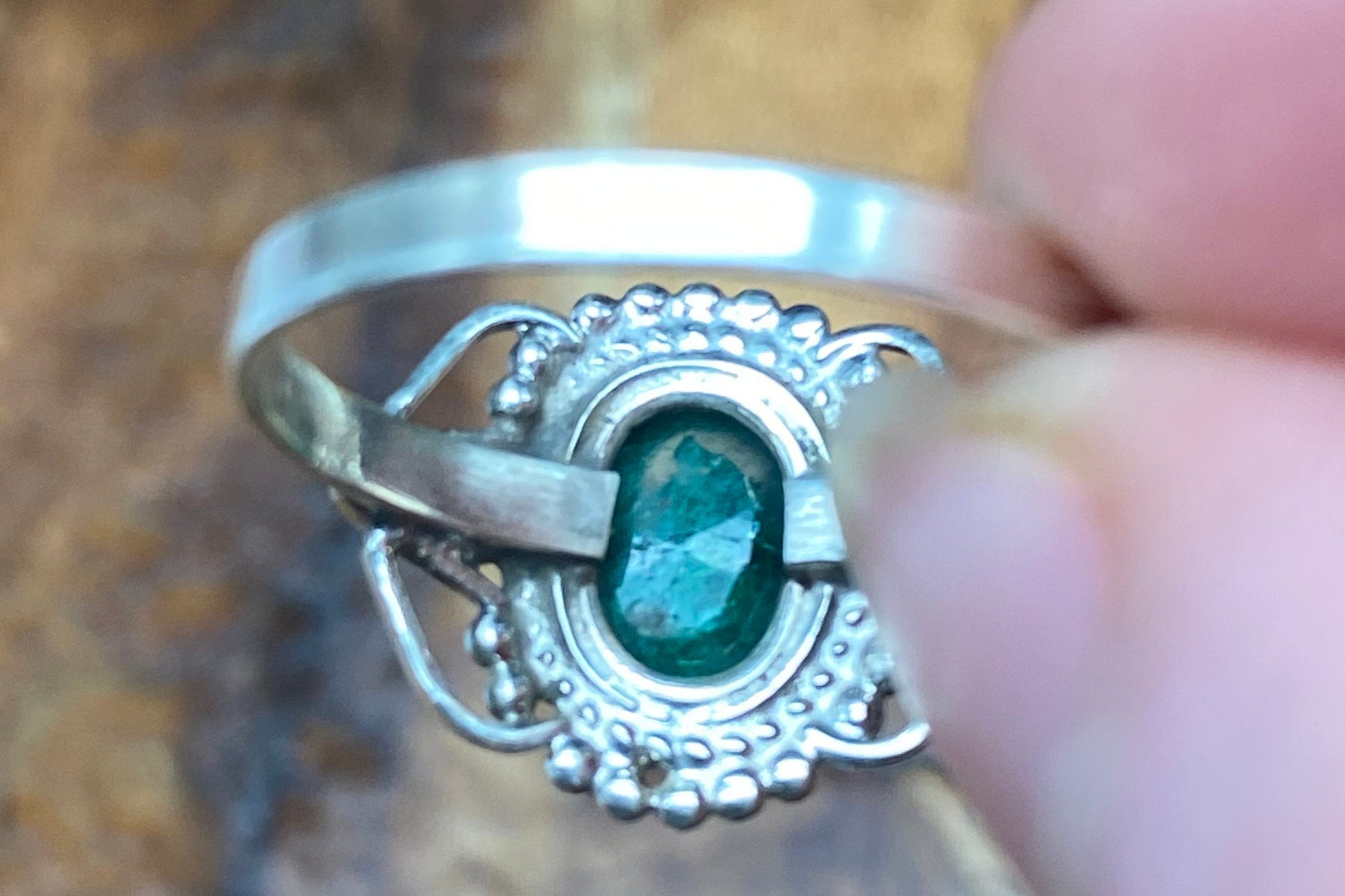This ring is made of high-quality materials. The Emerald is natural and untreated and the setting is made of solid 925 sterling silver.