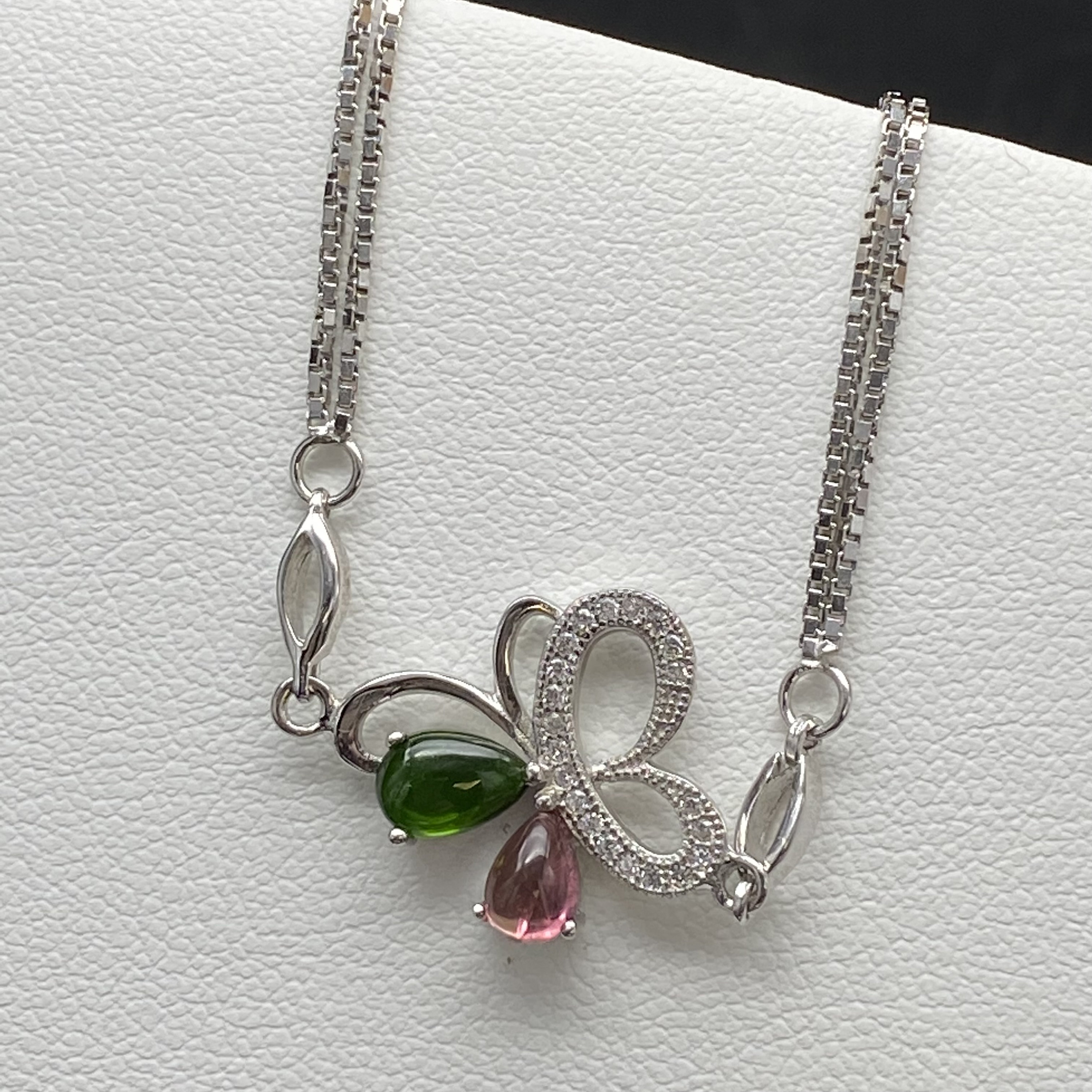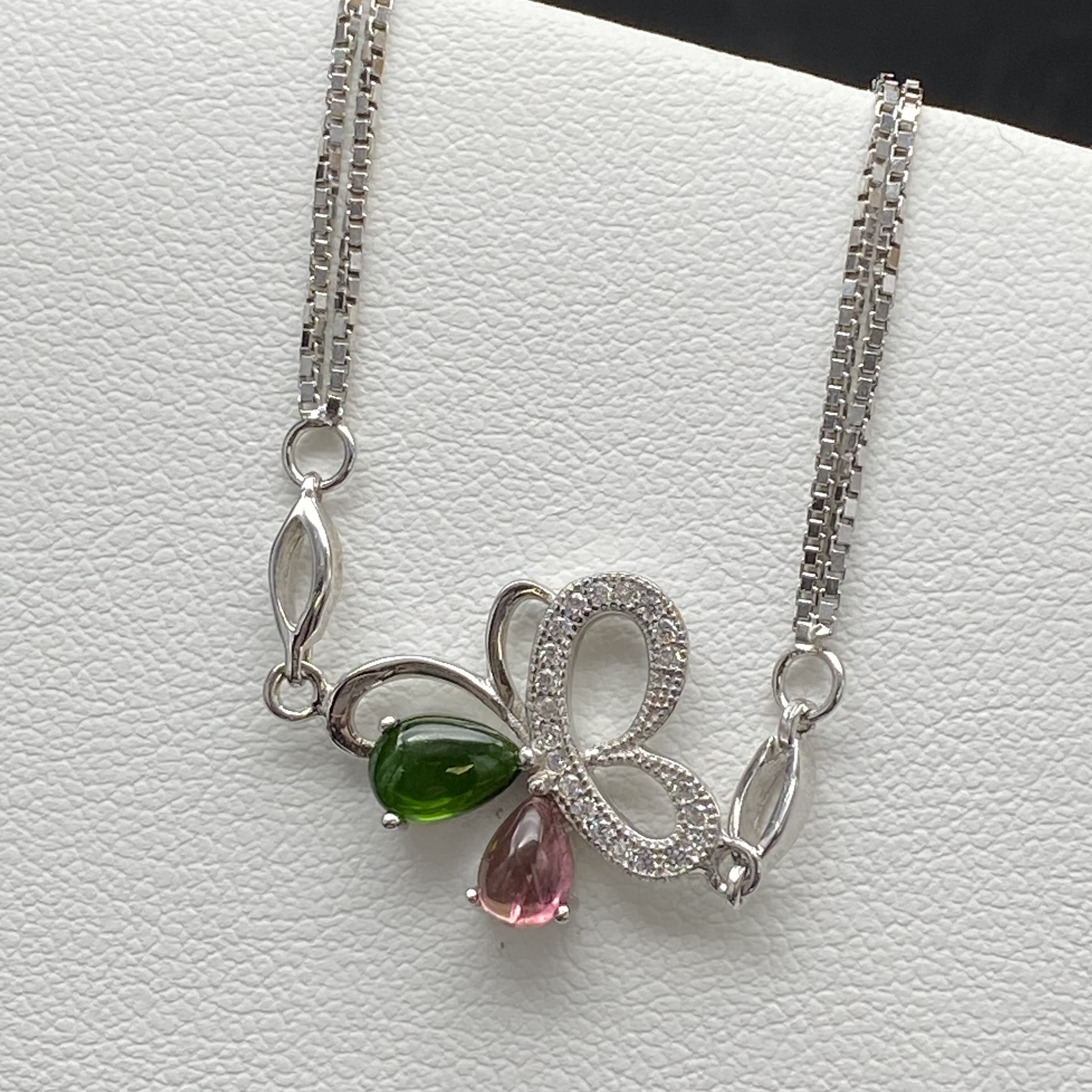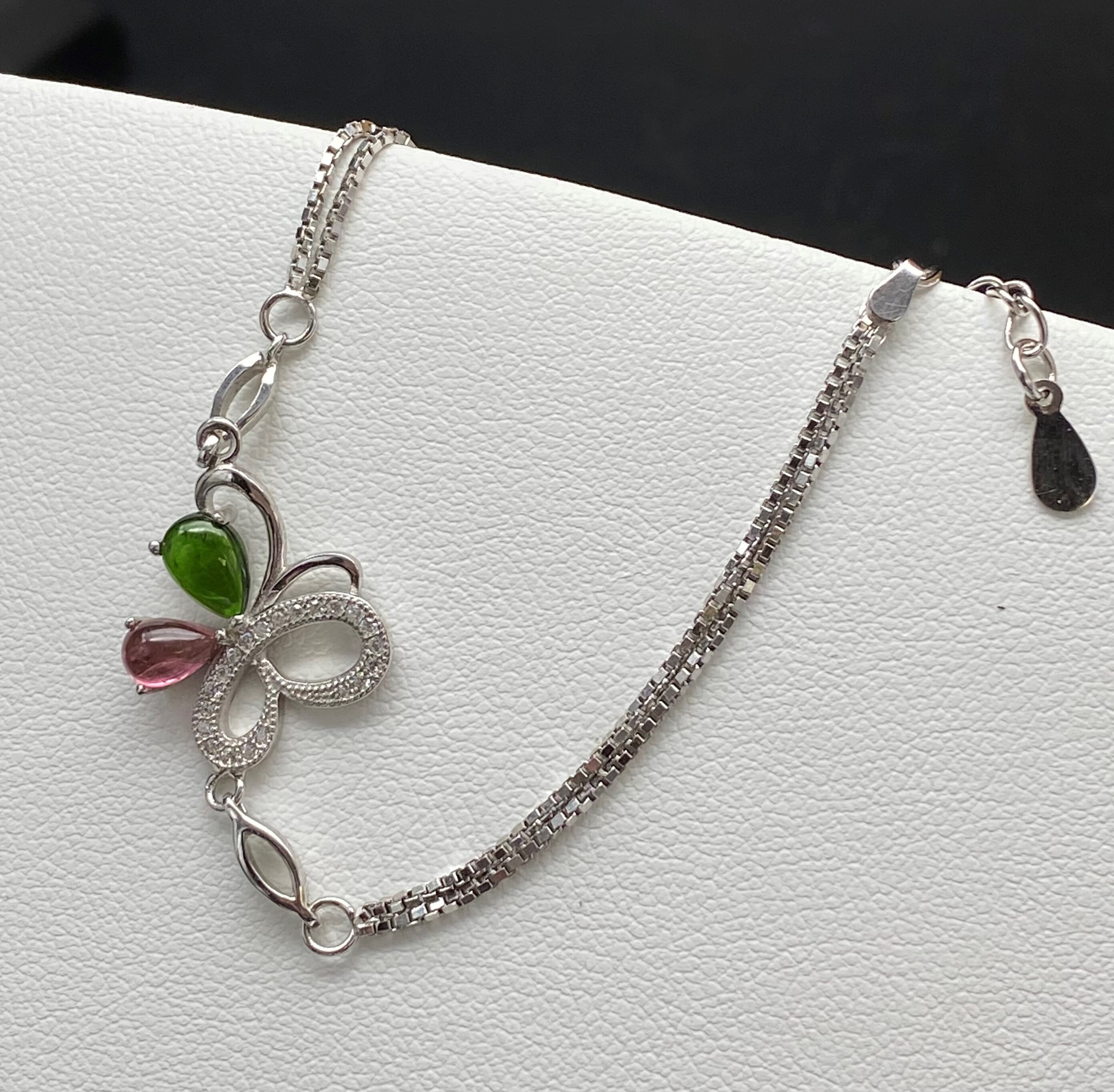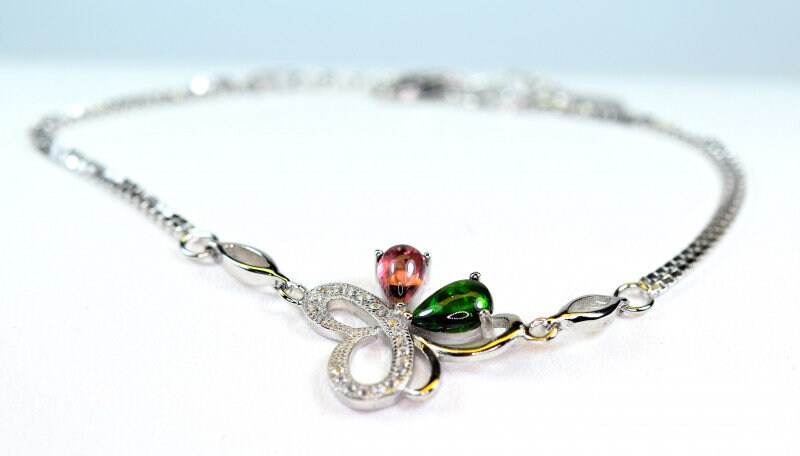 This bracelet is made of high-quality materials. The Chrome Diopside and Pink Tourmaline are natural and untreated and the setting is made of solid 925 sterling silver.