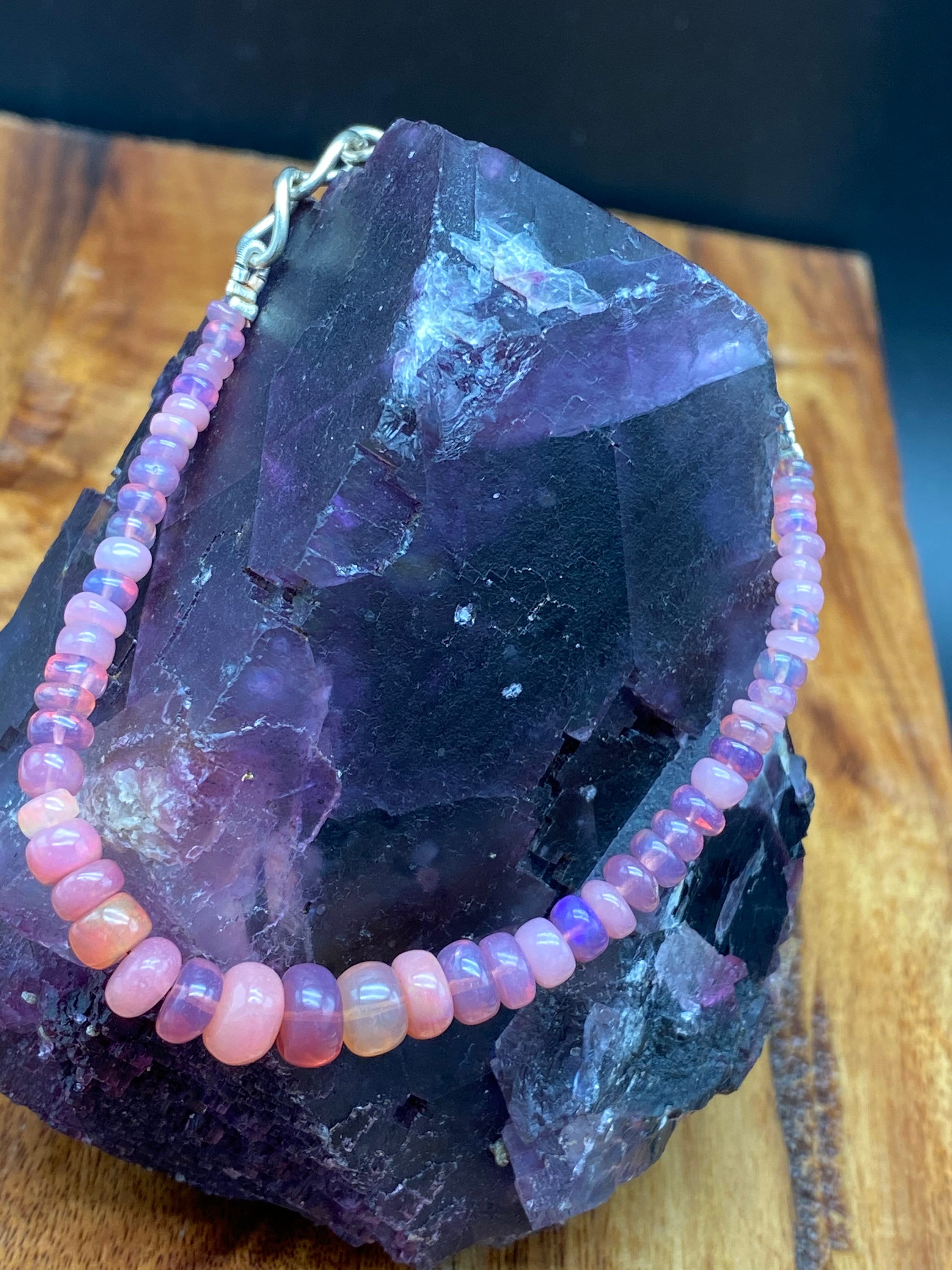 This bracelet is made of high-quality materials. The Ethiopian Welo Opals are natural but are color enhanced. The accents and closure are made of solid 925 sterling silver.