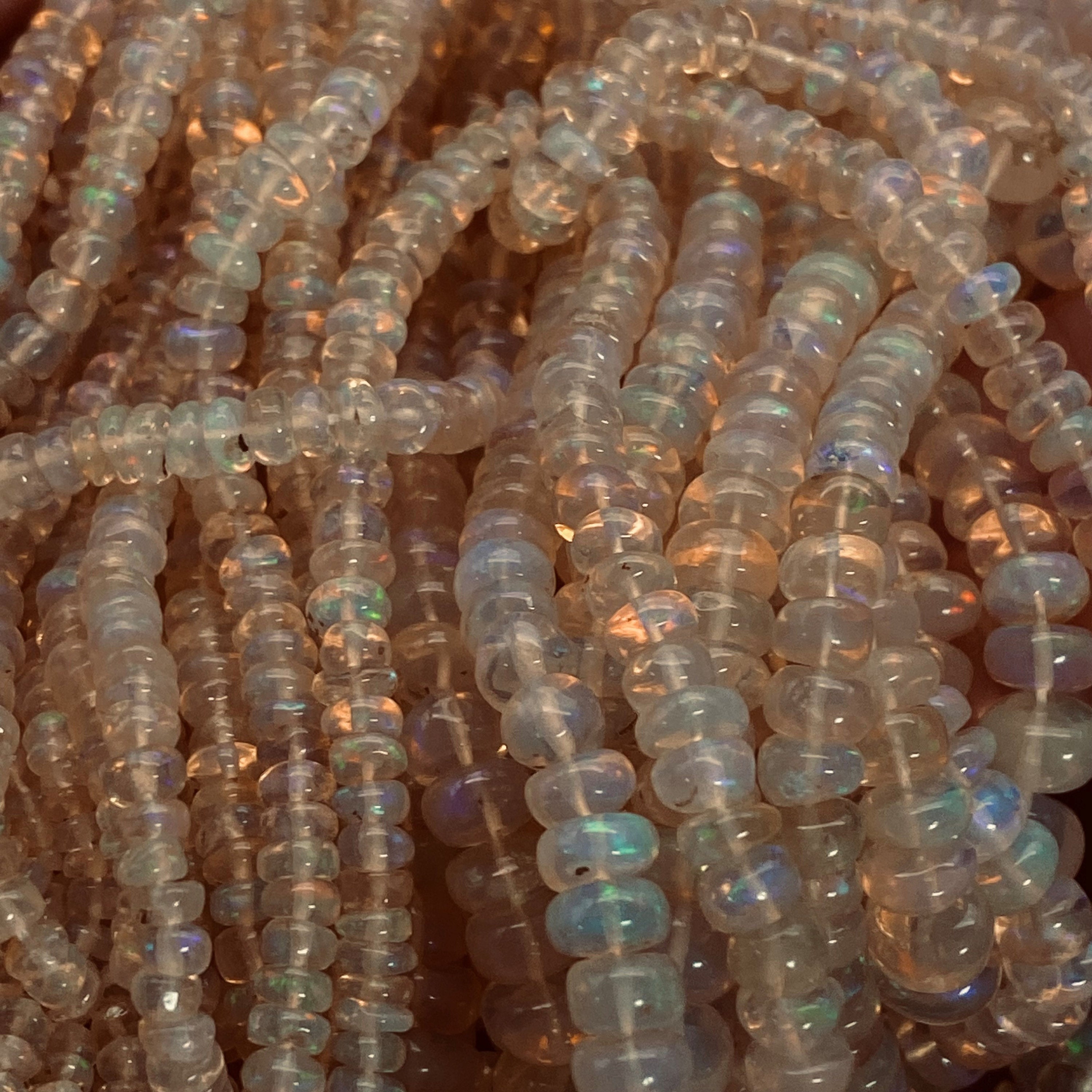Fantastic Top Quality Graduated Natural Precious Ethiopian Welo Opal Rondelle Loose Beads, ~3-6mm Graduation, 15.5-inch Strand