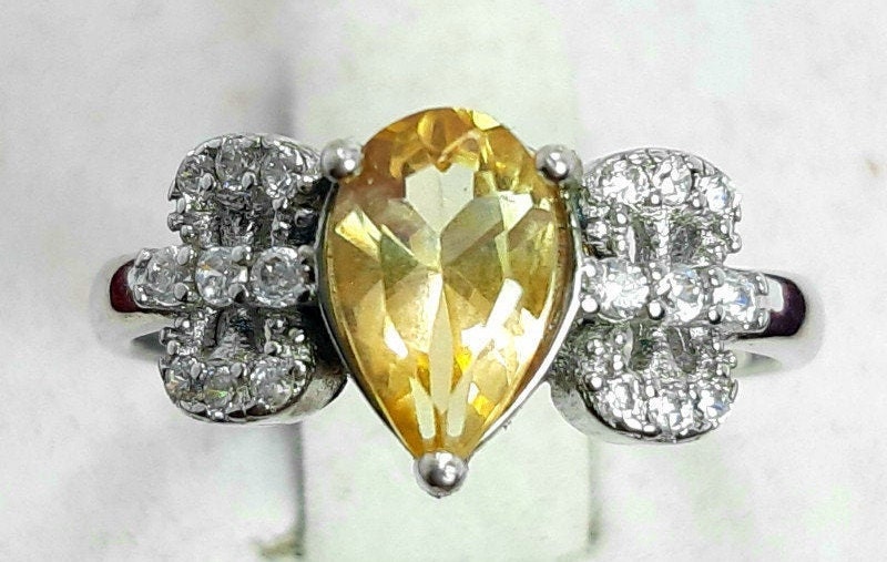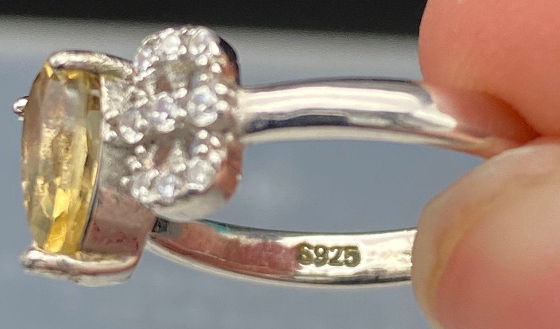 This Citrine and ring are made of high-quality materials. The citrine is natural and untreated and the ring is made of solid 925 sterling silver. The small stones around the main stone are superb cubic zirconia.