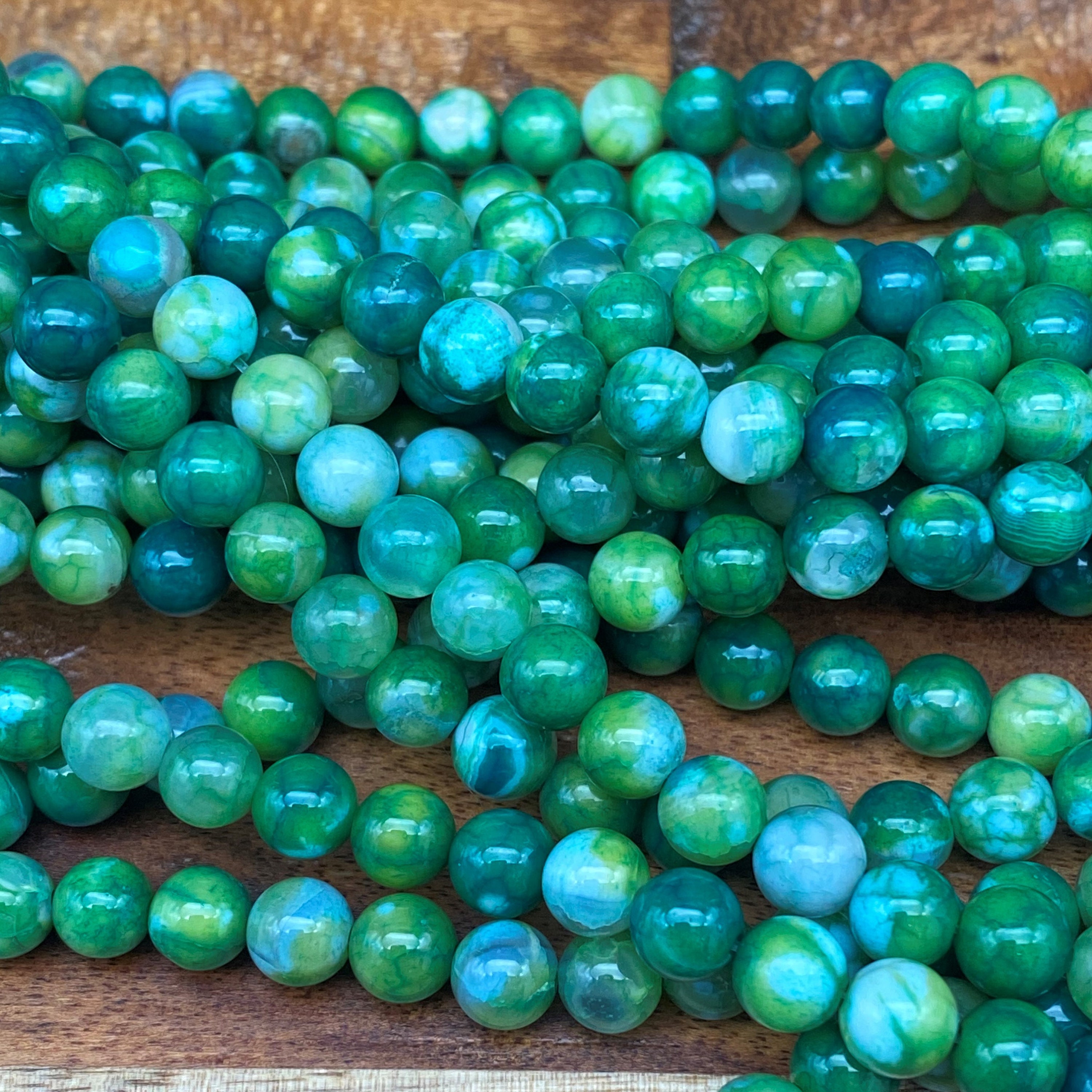 Flashy Apple Green Fire Agate Gemstone for Jewelry/Craft Making, Round: 6mm, 8mm