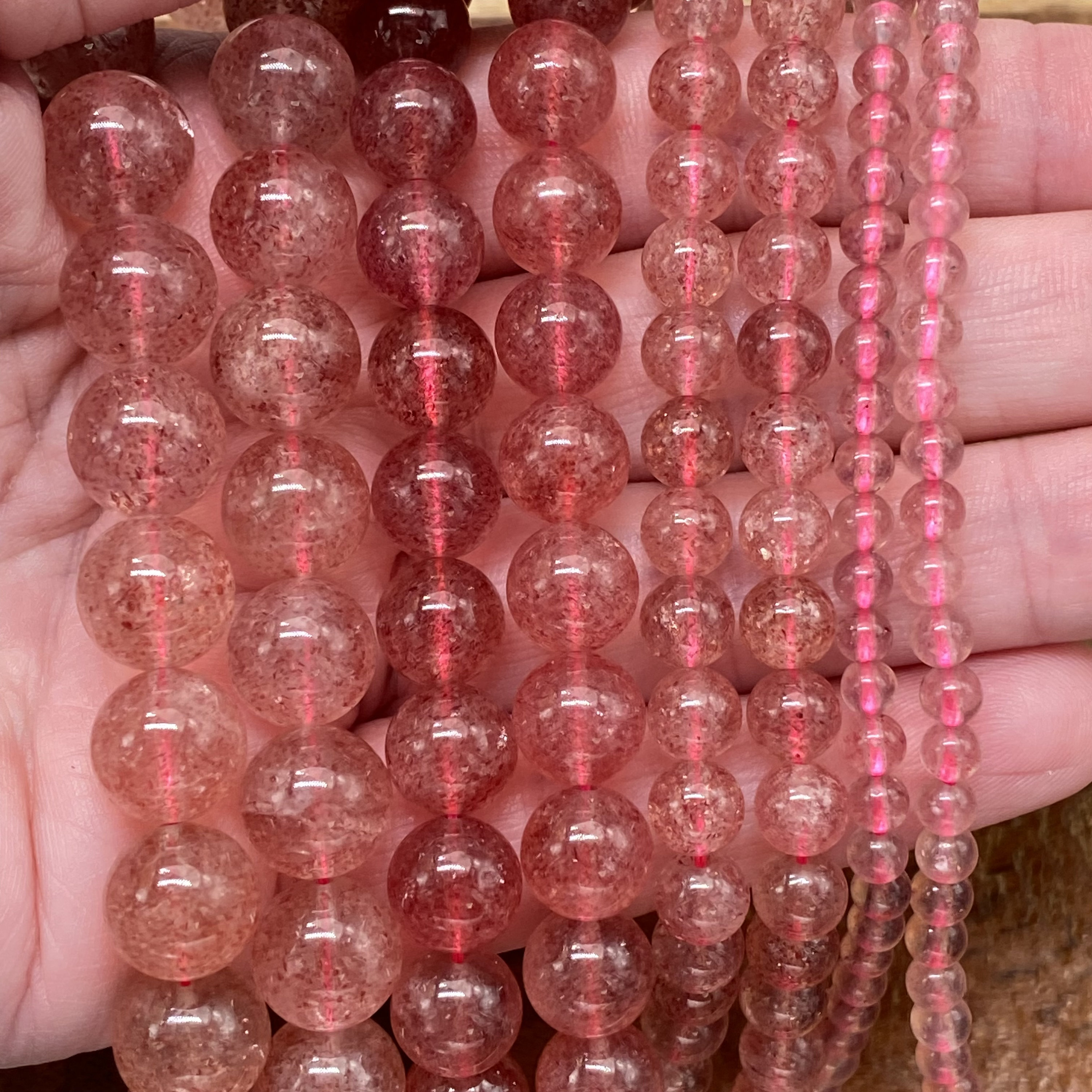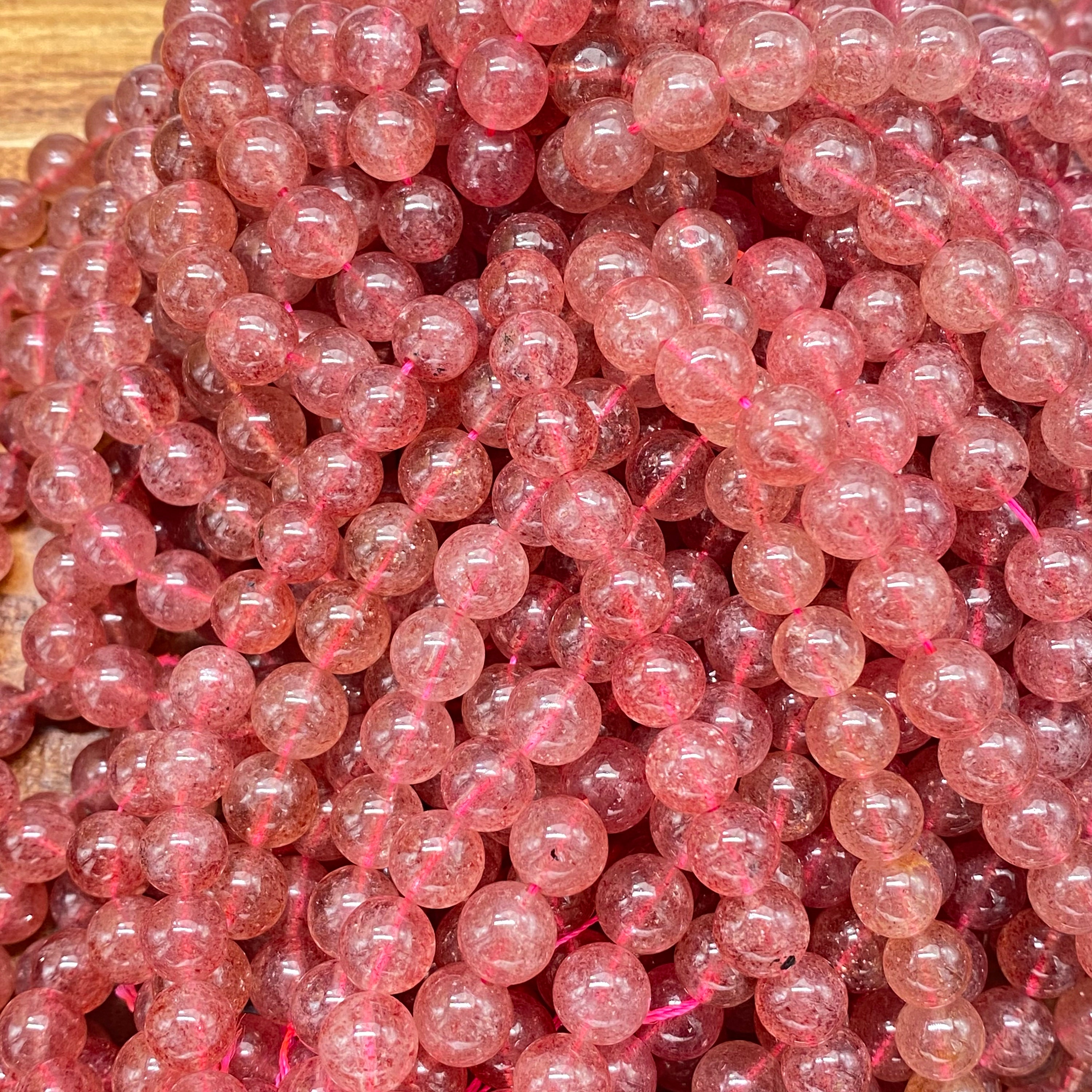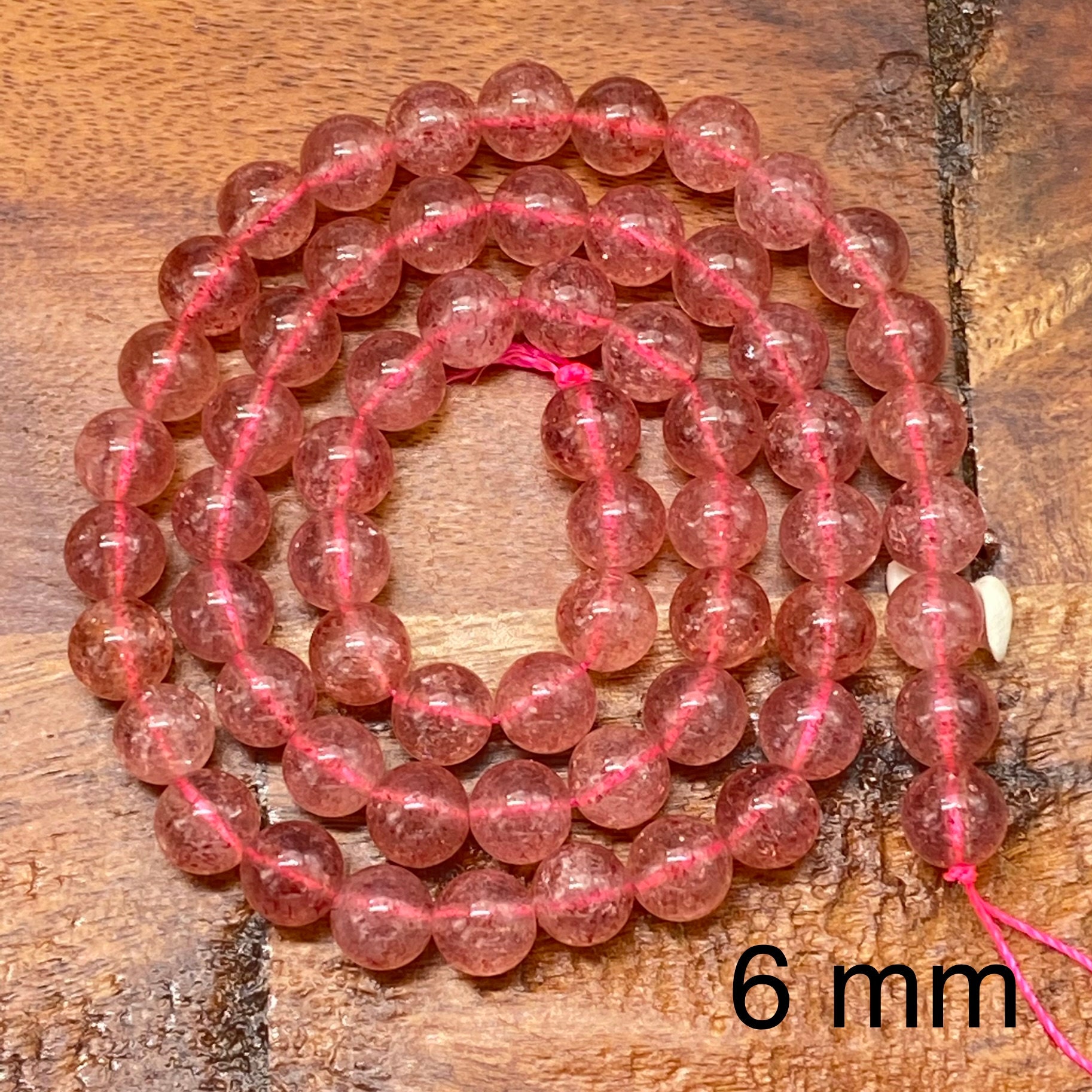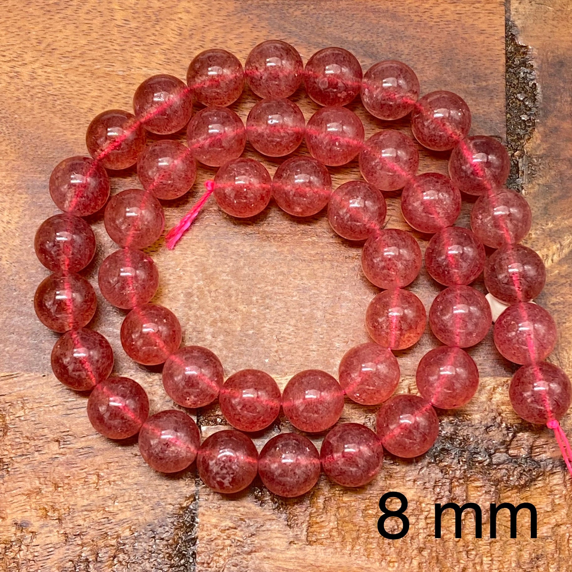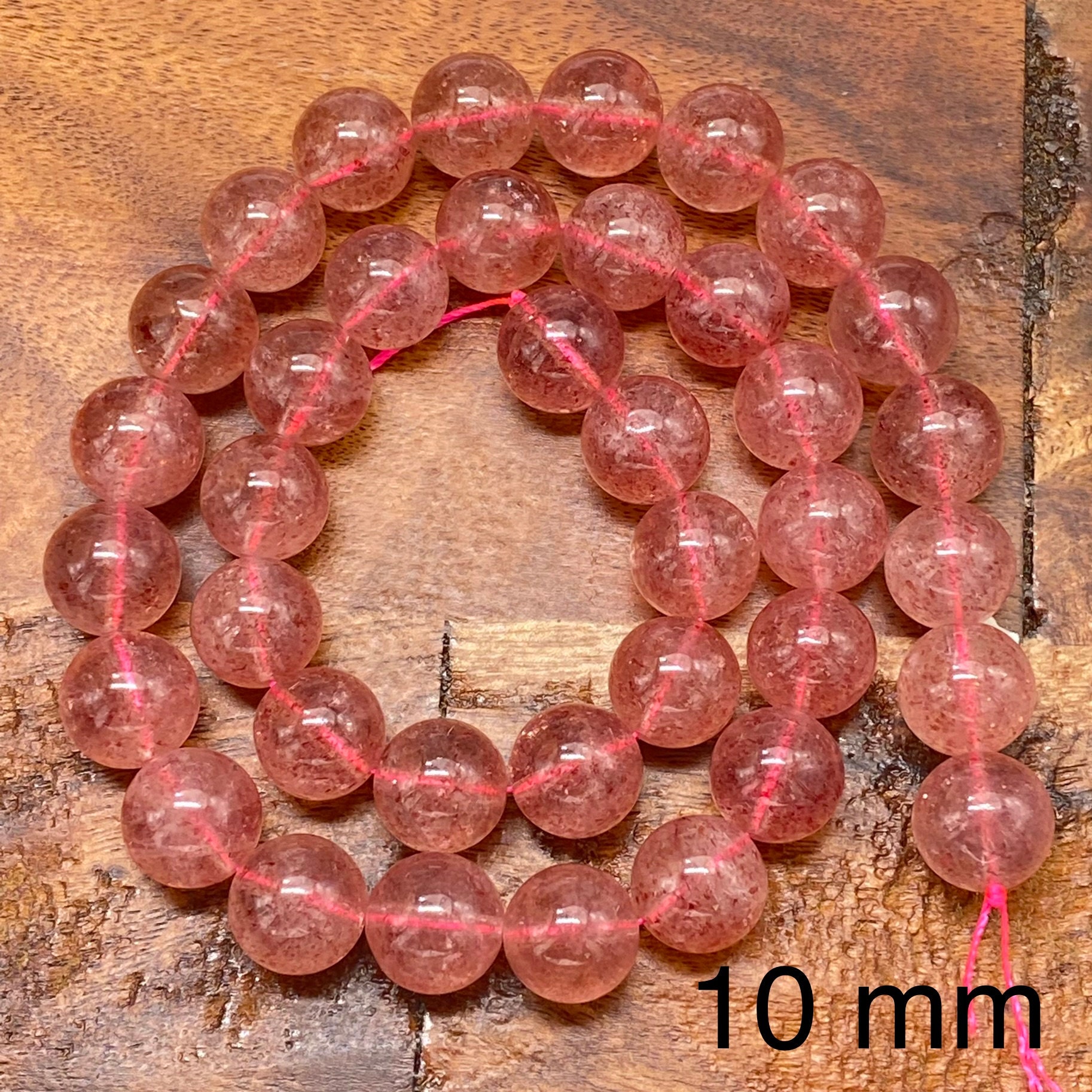 ** 1 Strand = ~ 15 inches **Stone/material: Lepidocrocite/Strawberry Quartz - natural, not dyed, no color enhanced **Bead size: 4mm; hole diameter: ~ 0.8mm (82-88 pieces) **Bead size: 6mm; hole diameter: ~ 1mm (60-66 pieces) **Bead size: 8mm; hole diameter: ~ 1mm (42-48 pieces) **Bead size: 10mm; hole diameter: ~ 1mm (34-40 pieces) **The actual stone may show slight differences to the images in color, pattern, and texture because the natural properties and composition of mined gemstones define the unique beauty of each piece/gem **New photos are taken for each lot of beads received to ensure the photos match the stones you purchase to the best of our abilities. Also check out: https://www.etsy.com/listing/865262683/beautifully-perfect-natural-garnet?ref=shop_home_active_16&crt=1 https://www.etsy.com/listing/937938766/ravishing-red-fire-agate-beads-for?ref=shop_home_active_15&crt=1 https://www.etsy.com/listing/936450951/impressive-natural-plum-blossom-jasper?ref=shop_home_active_81 https://www.etsy.com/listing/819333317/cheerful-natural-purple-aventurine?ref=shop_home_active_96
