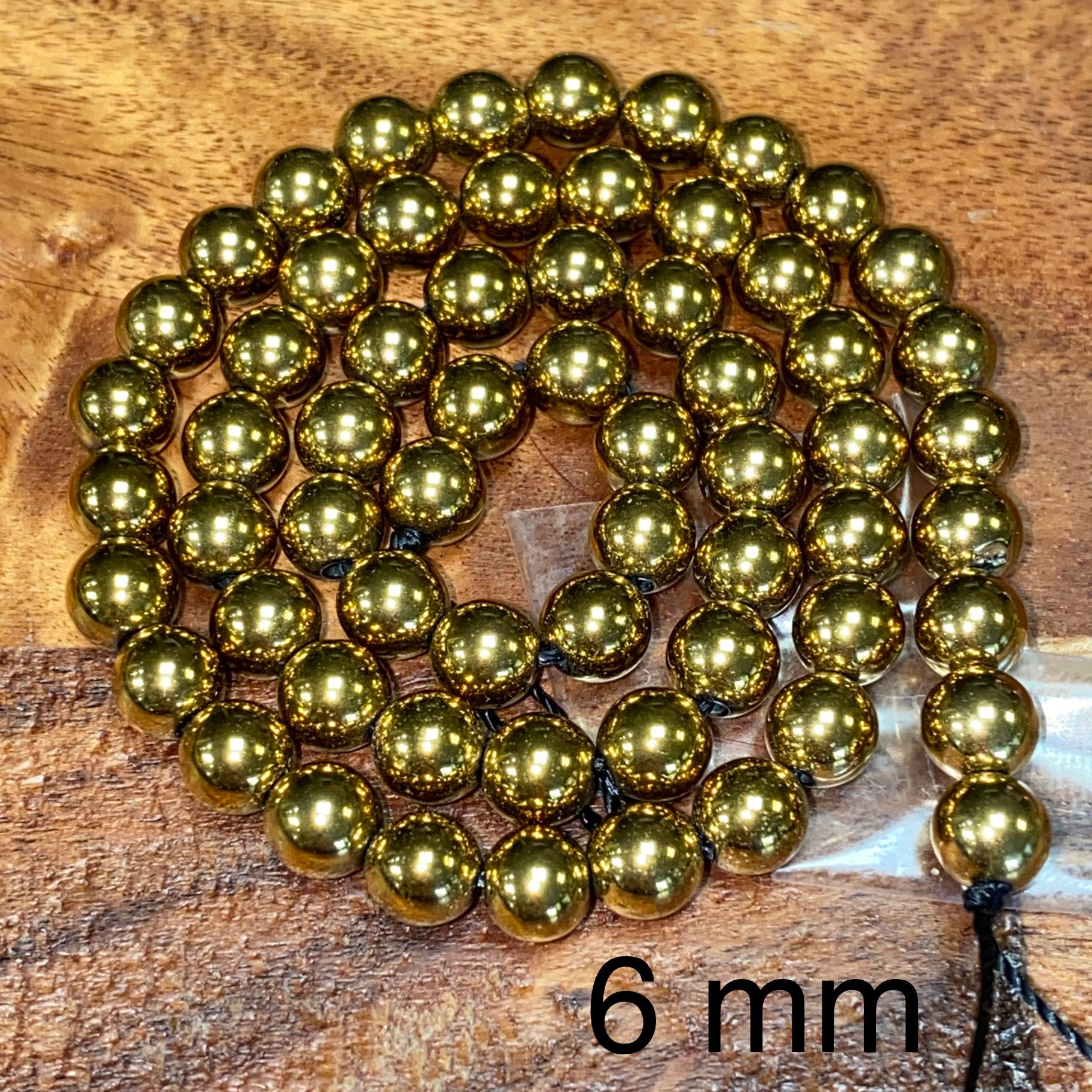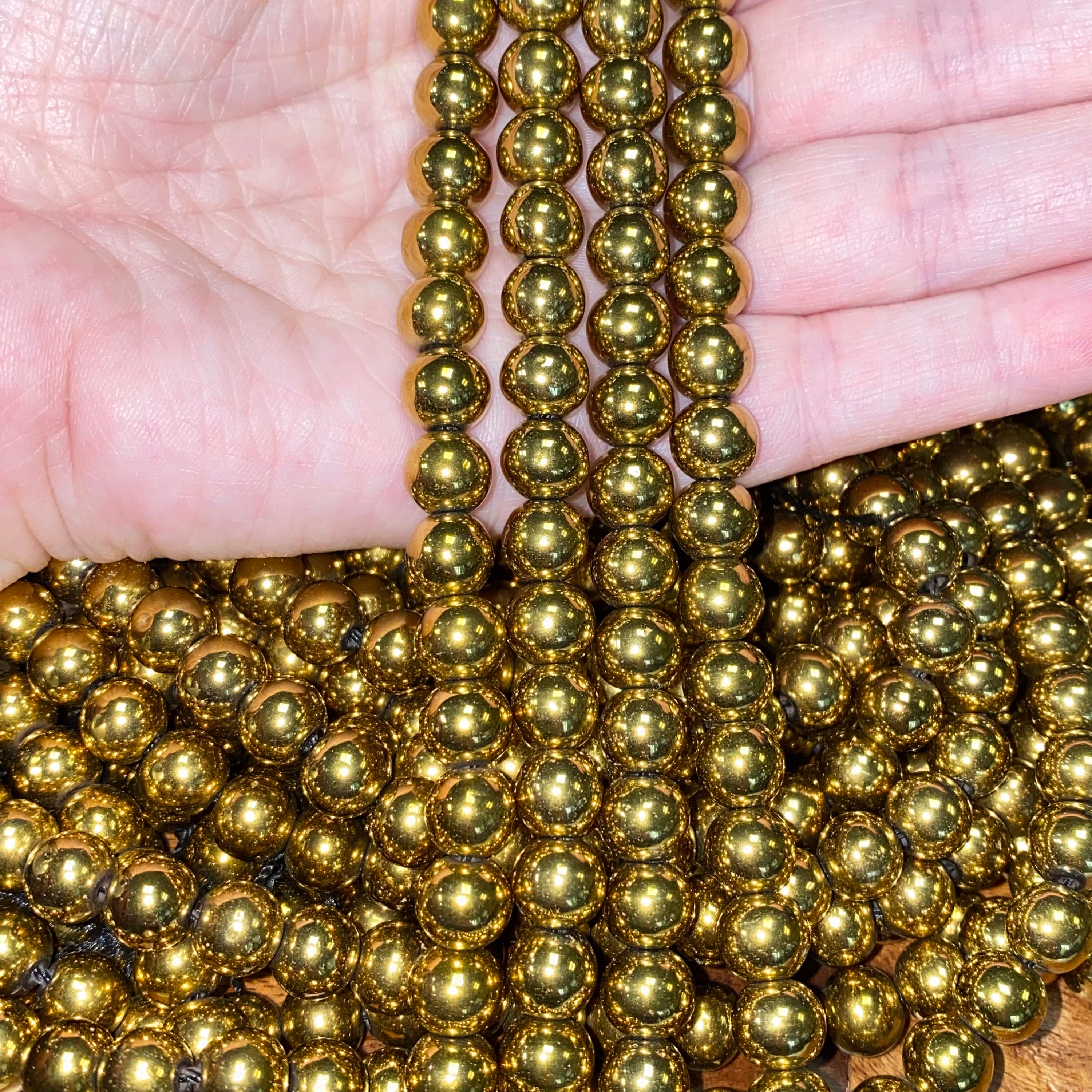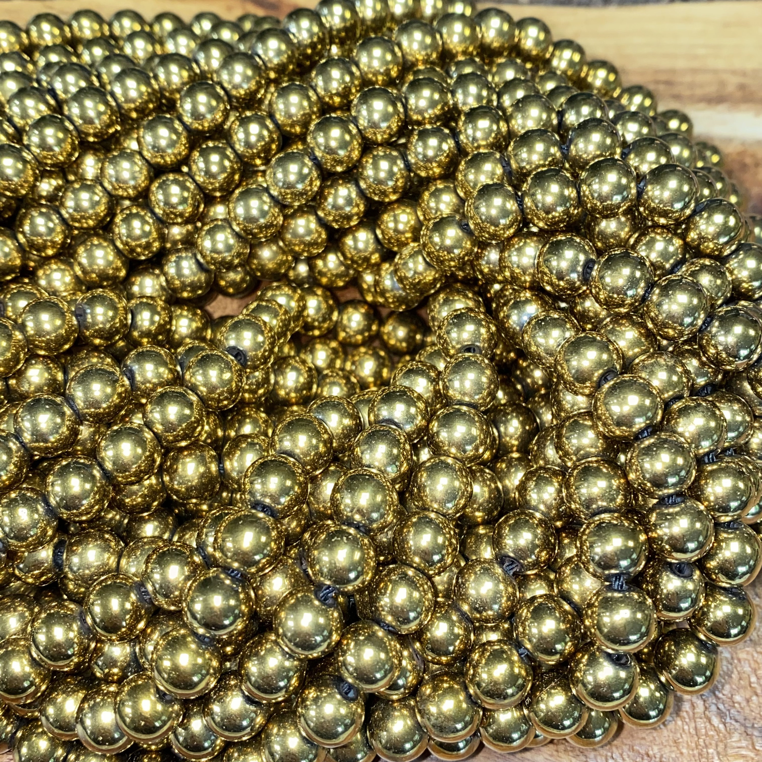 Heavenly Natural Gold Tone Hematite Beads for Jewelry/Craft Making, Round: 6mm, 8mm