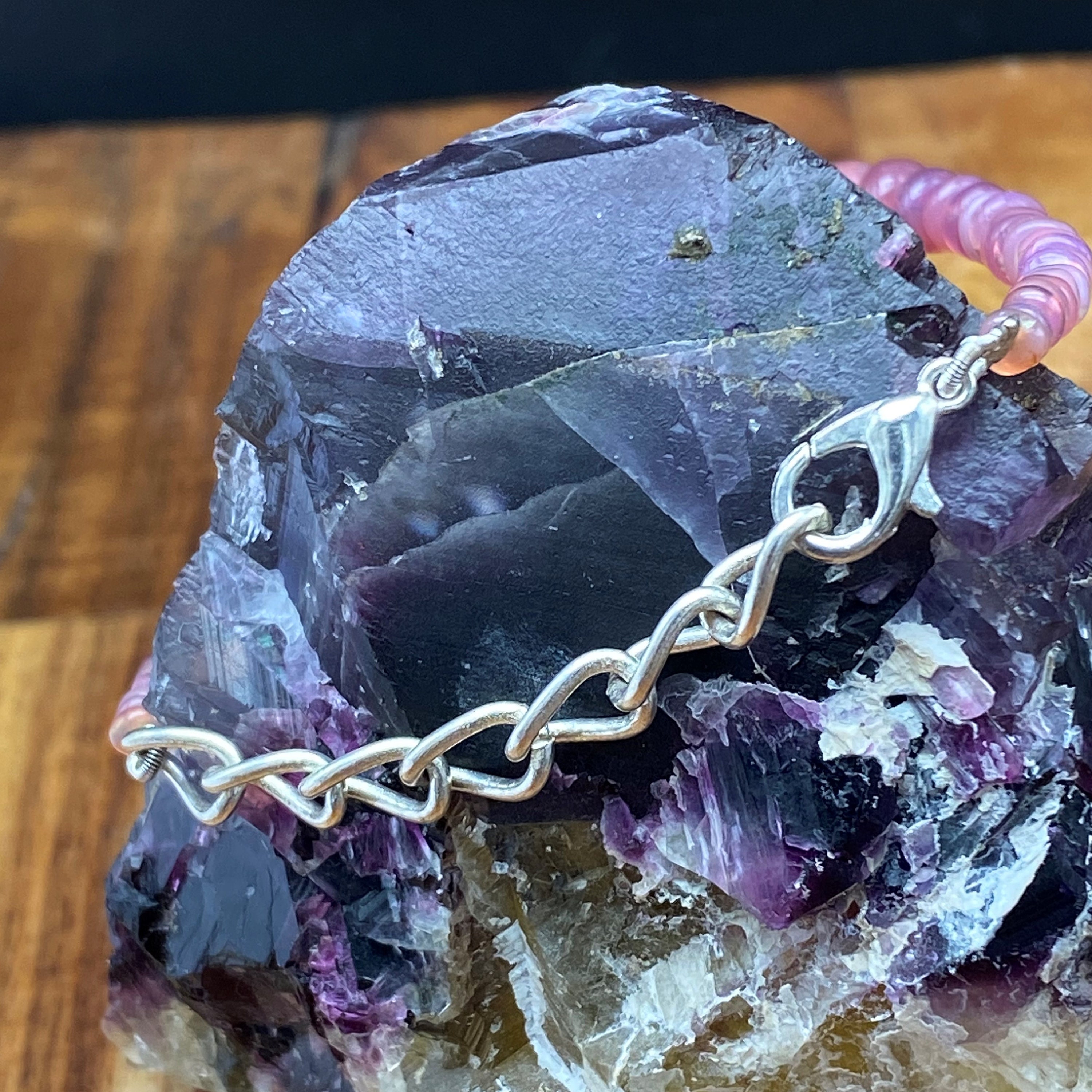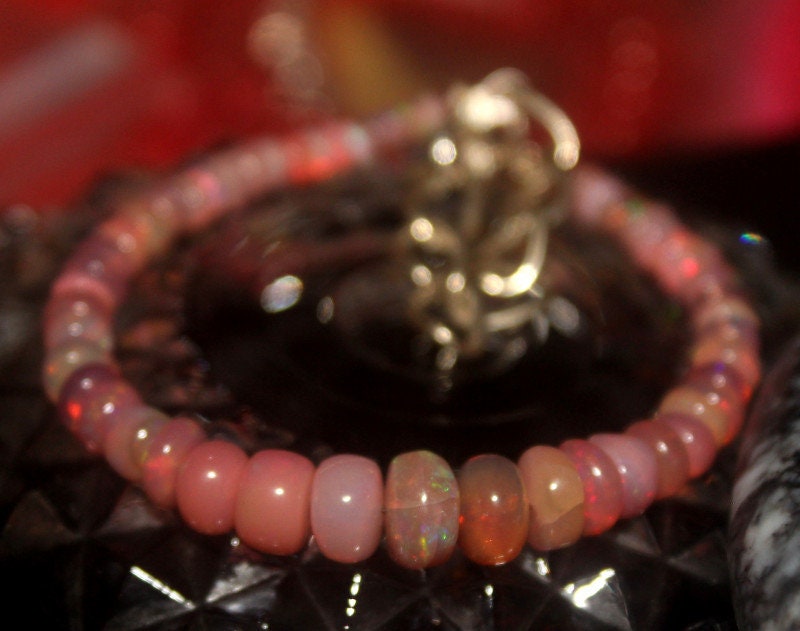 This bracelet is made of high-quality materials. The Ethiopian Welo Opals are natural but are color enhanced to achieve the beautiful soft pink color. The accents and closure are made of solid 925 sterling silver.