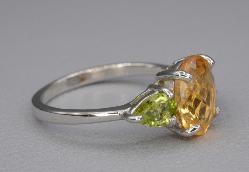 This ring is made of high-quality materials. The Citrine and Peridot are natural and untreated while the setting is made of solid 925 sterling silver.
