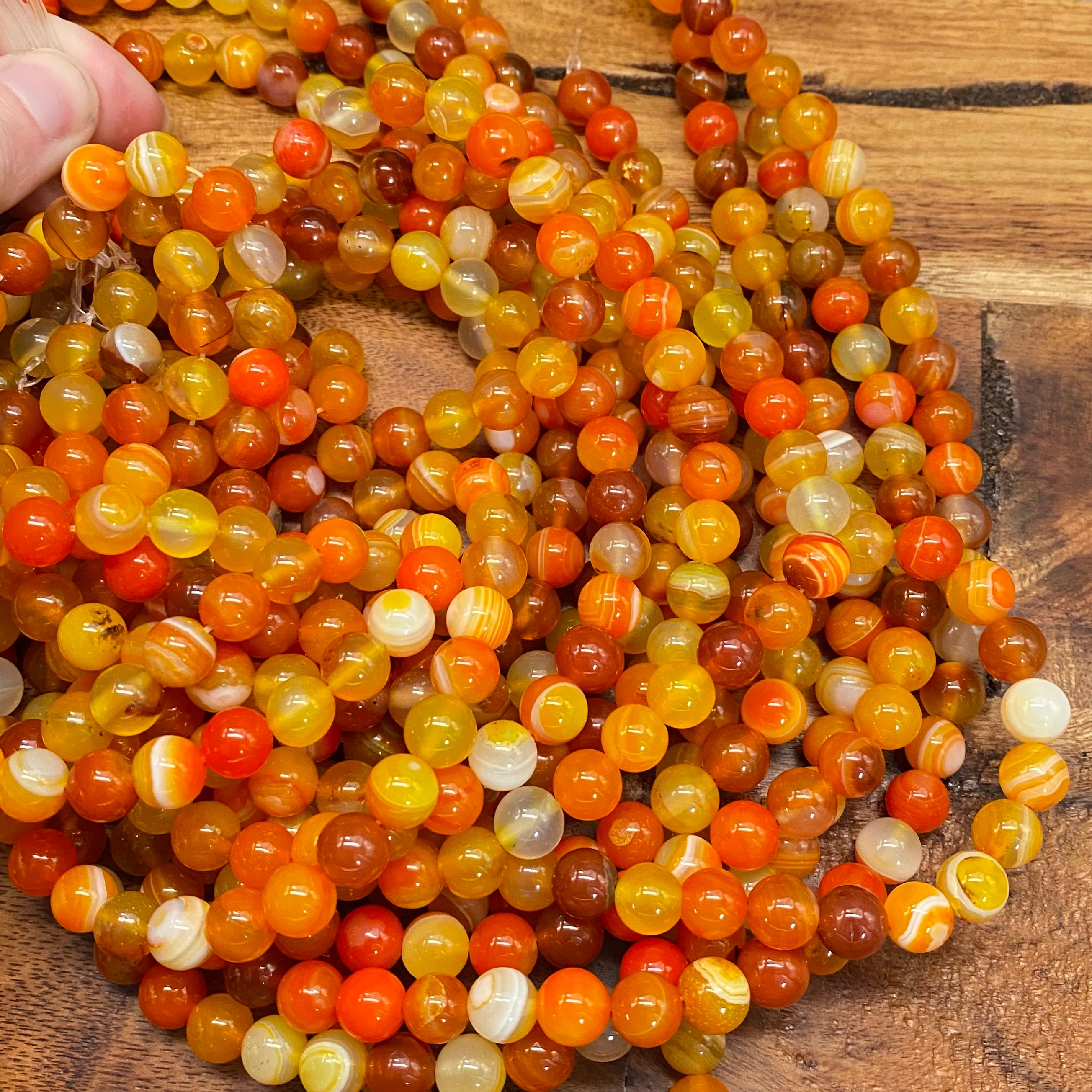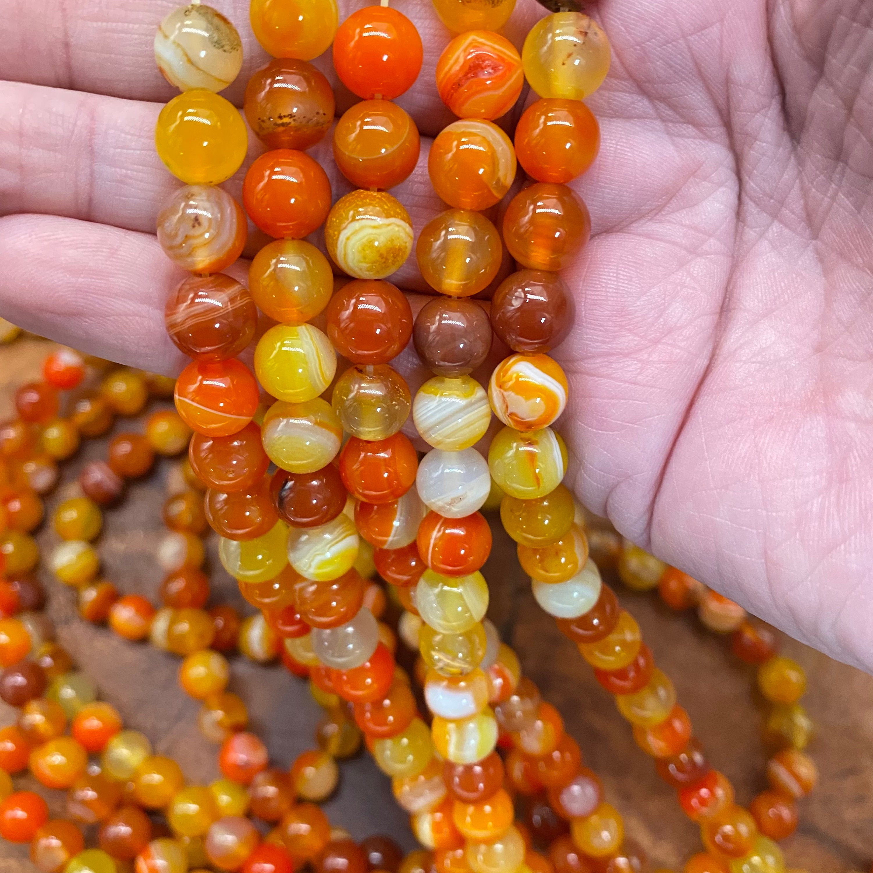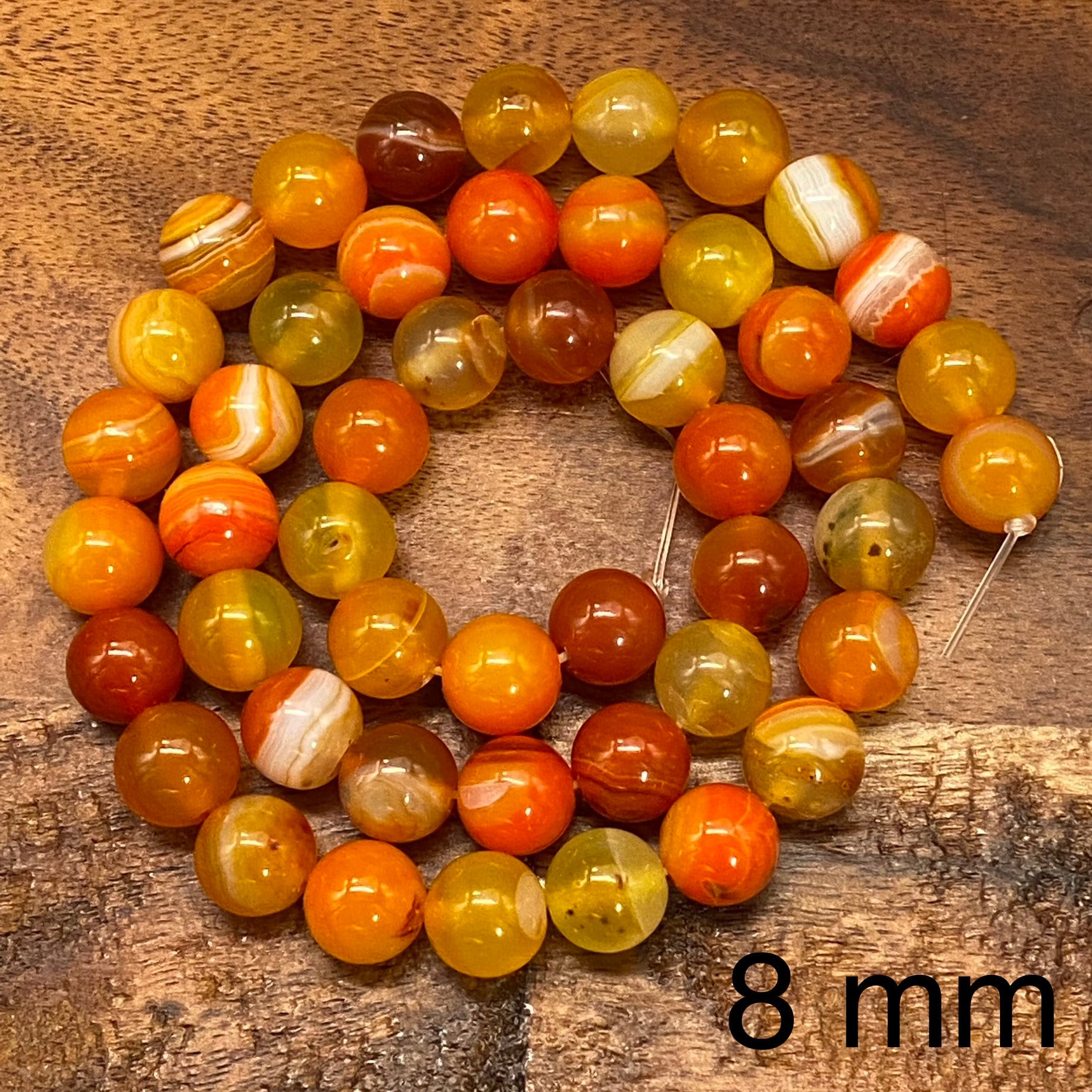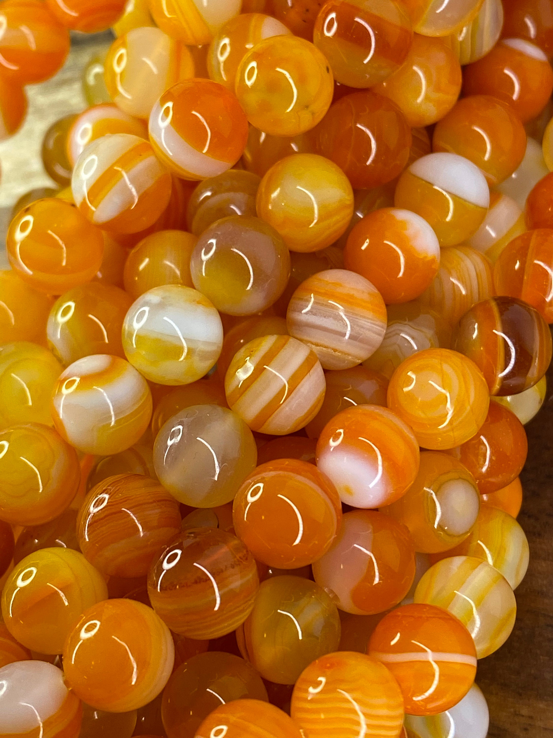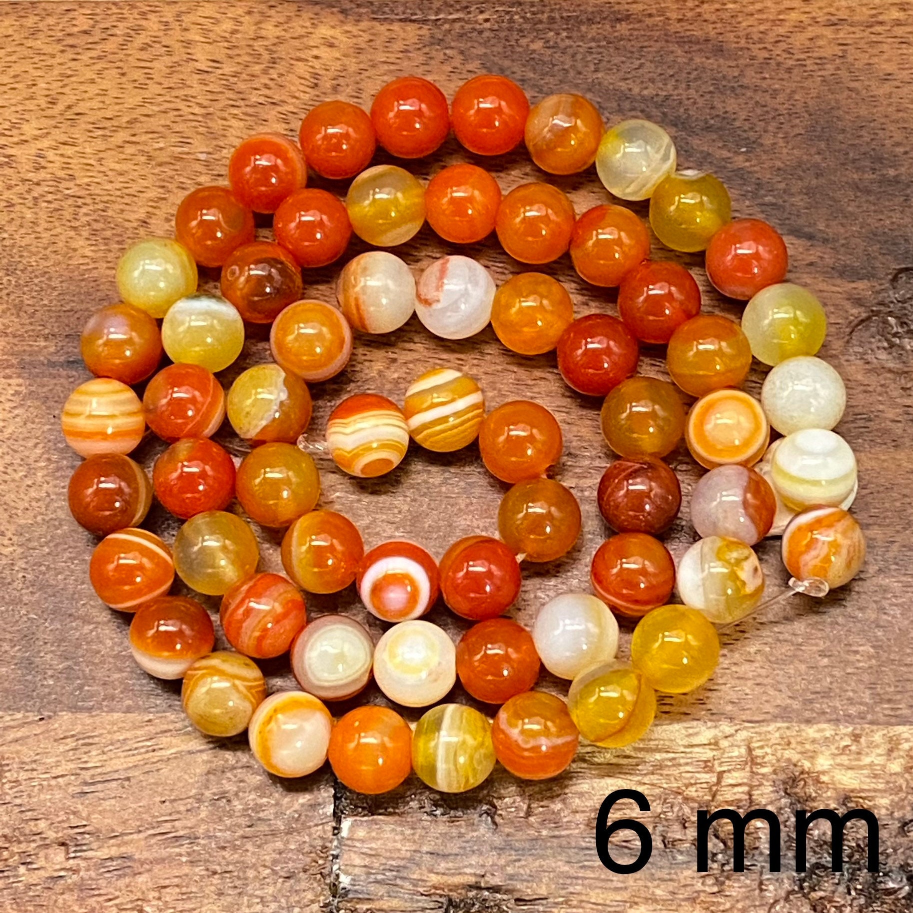 Joyful Orange Striped 2 for Jewelry/Craft Making, Round, 4mm, 6mm, 8mm, 10mm