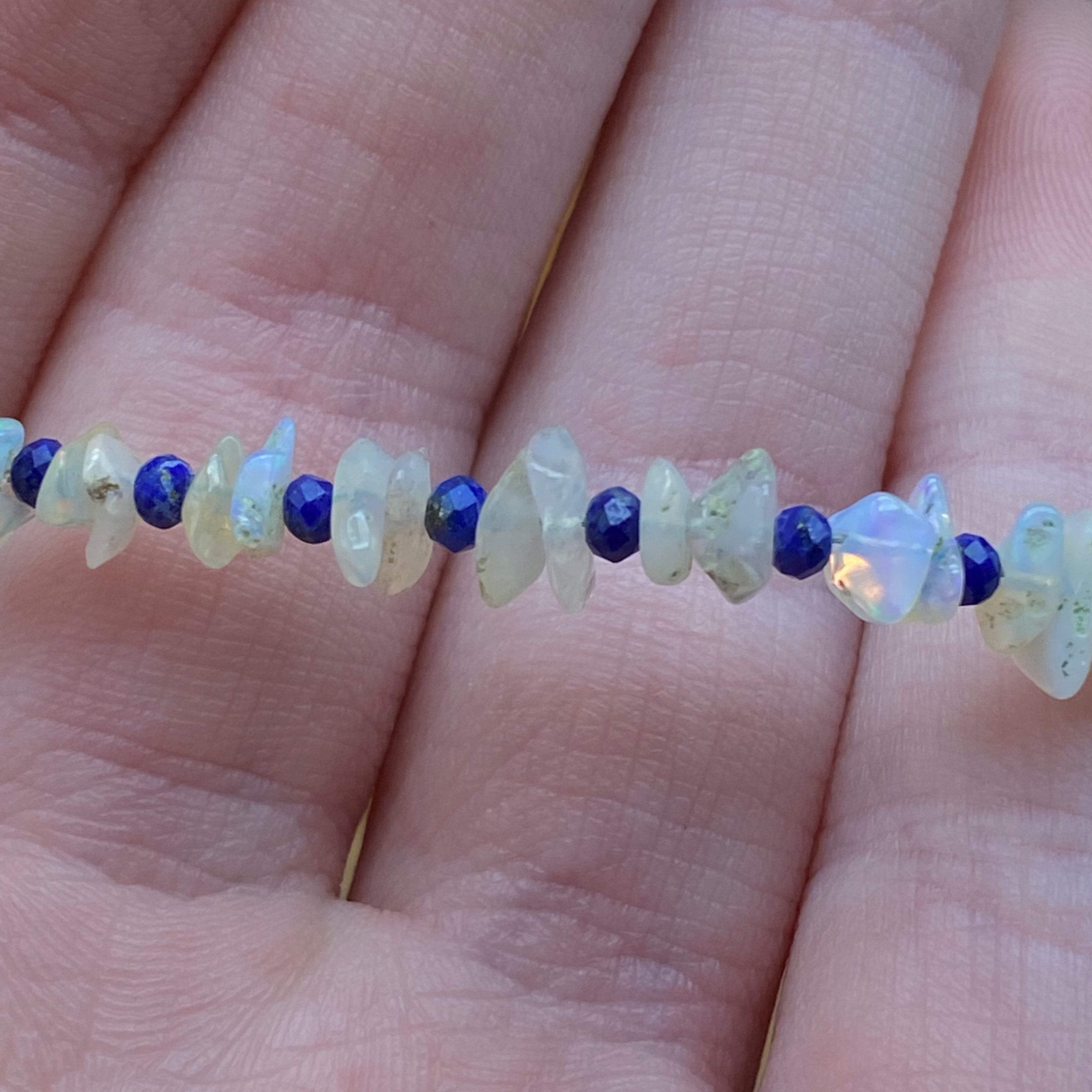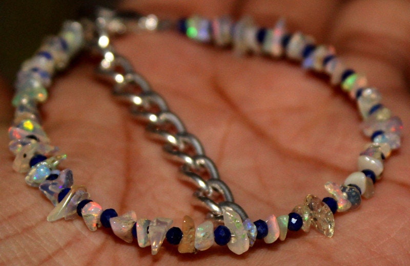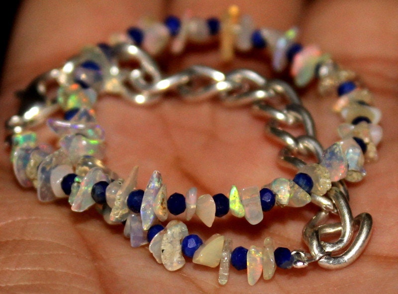 This bracelet is made of high-quality materials. The Ethiopian Welo Opal and Lapis Lazuli are natural and untreated and the accents and closure are made of solid 925 sterling silver.