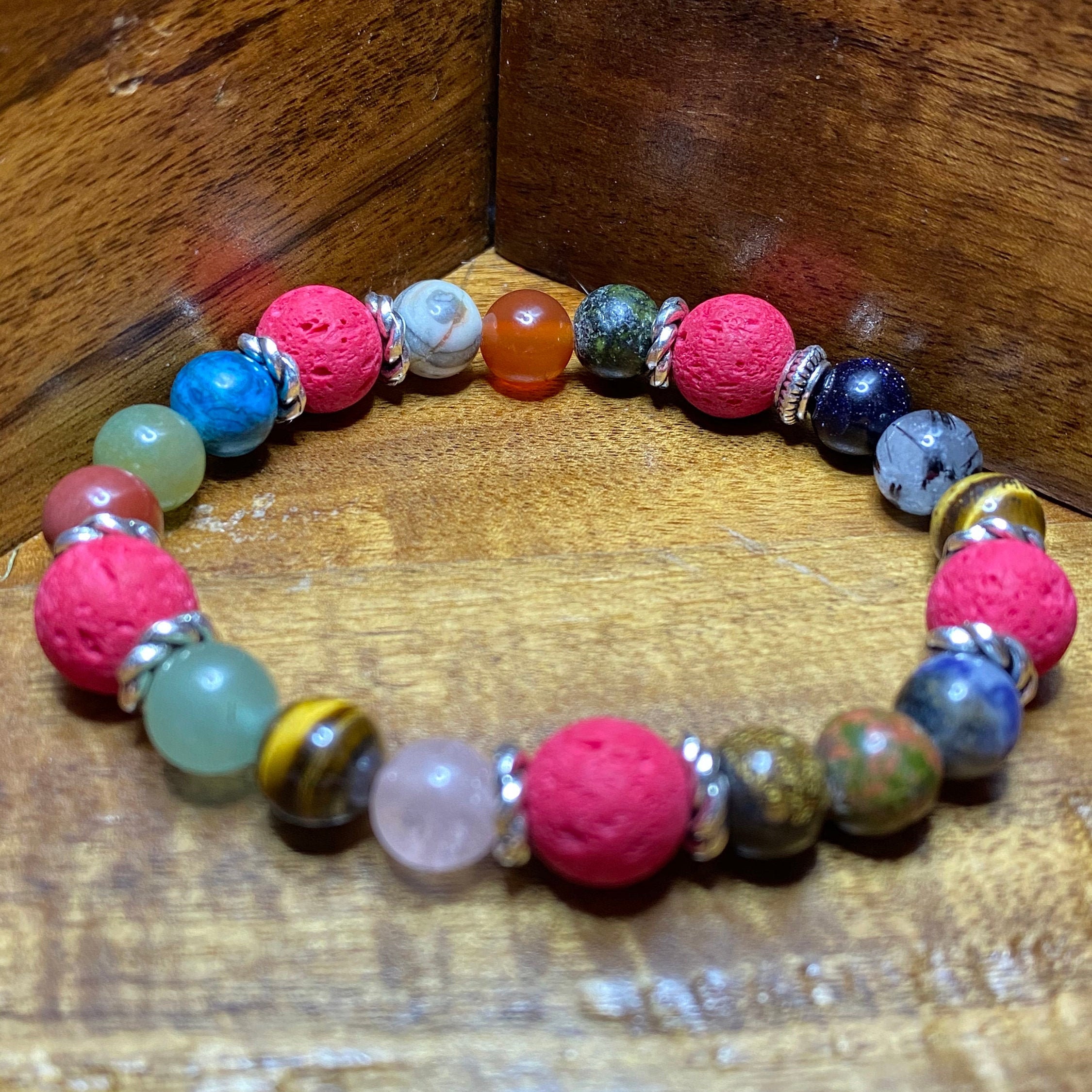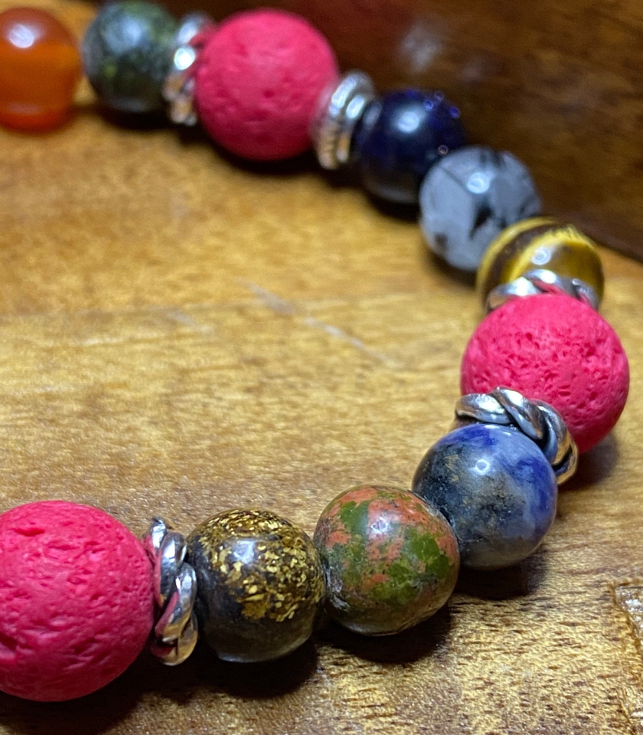 This beautiful multicolored natural stone bracelet has brilliance, elegance and a lot of color. I choose to use both 8mm and 10mm size beads for this bracelet for the perfect mix for style and comfort.