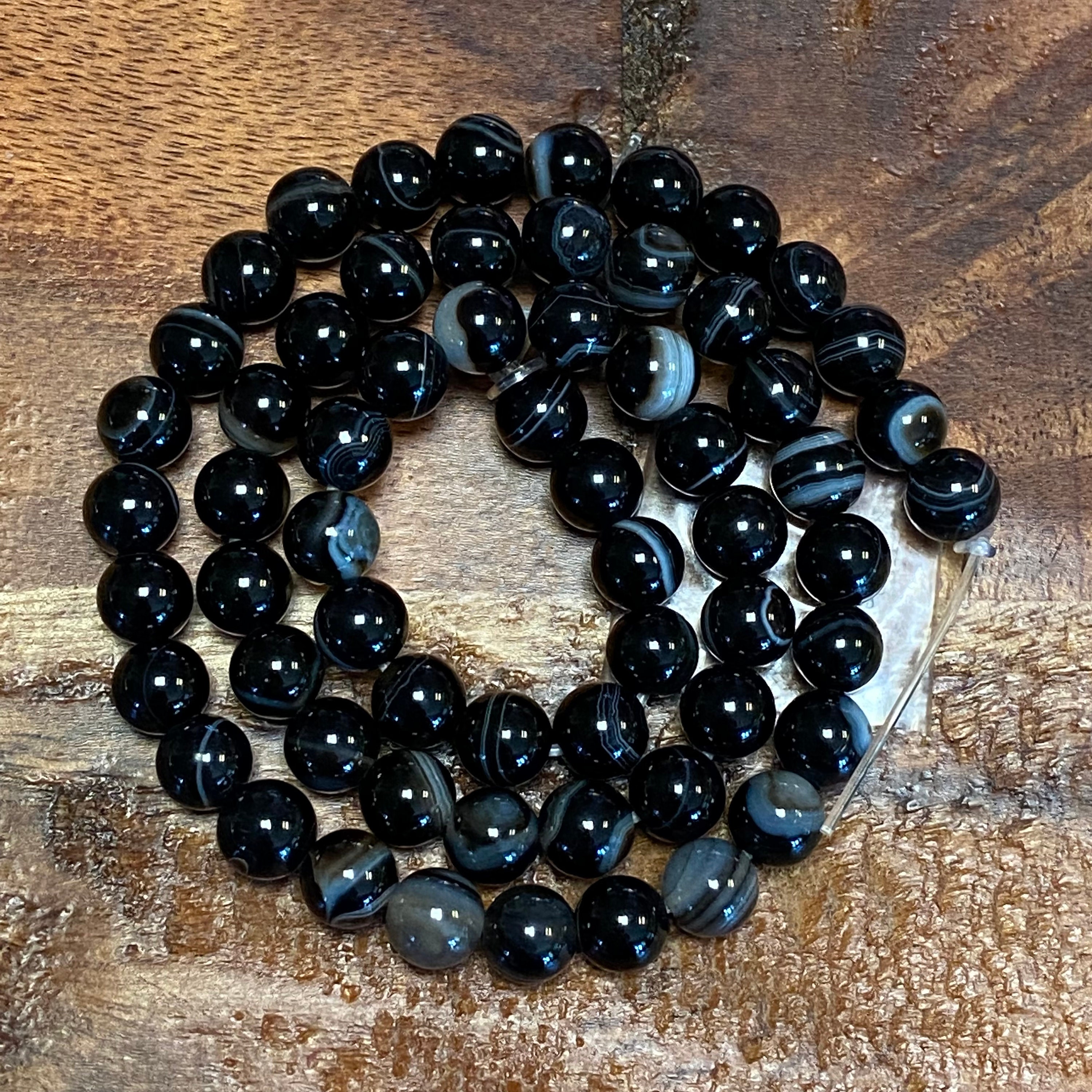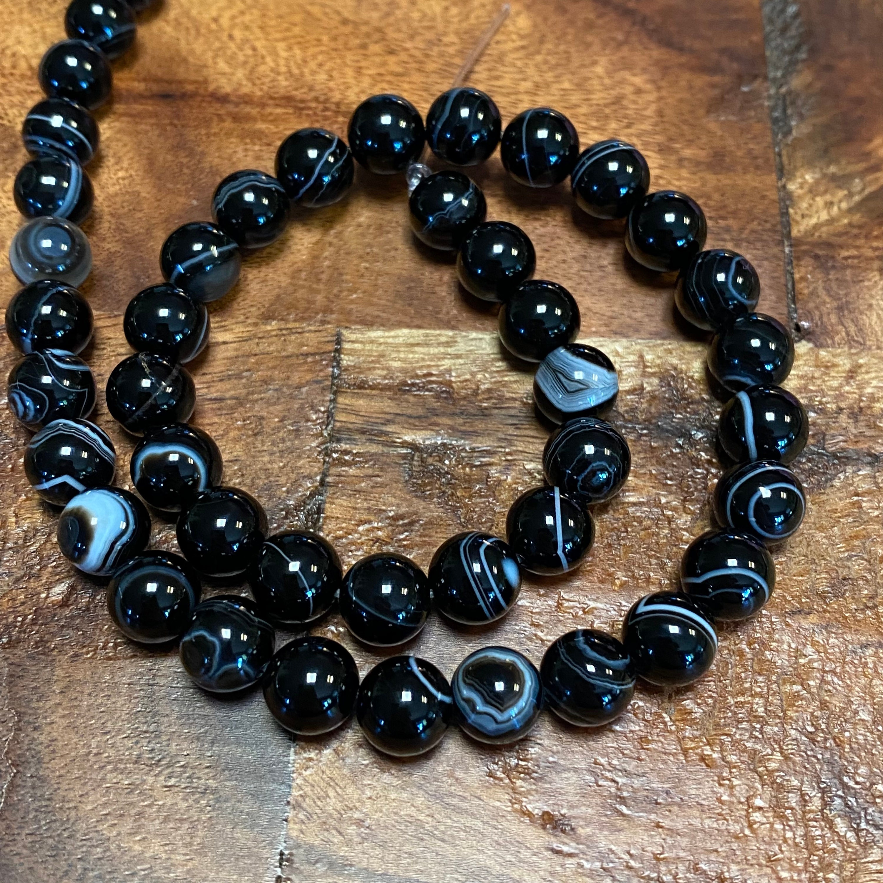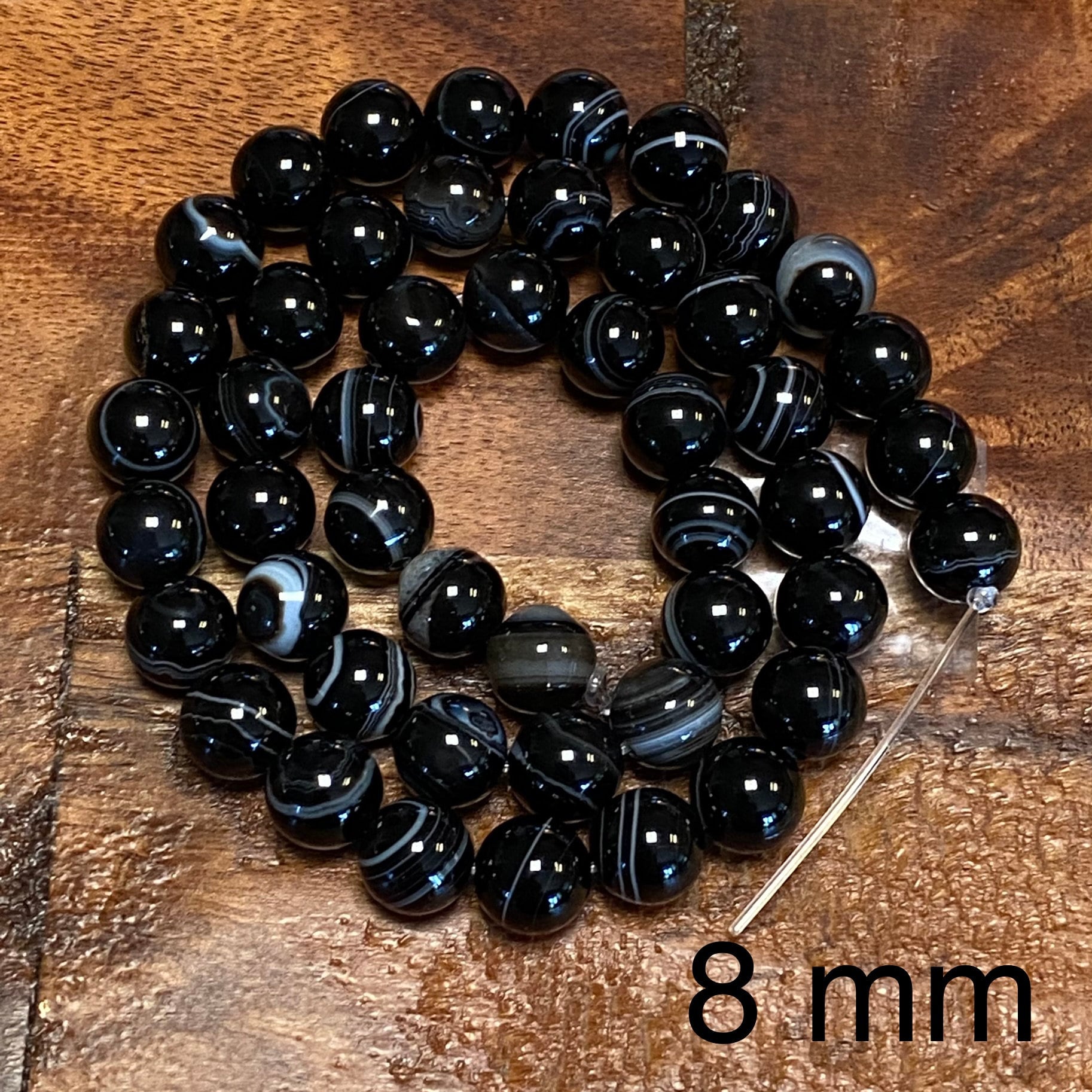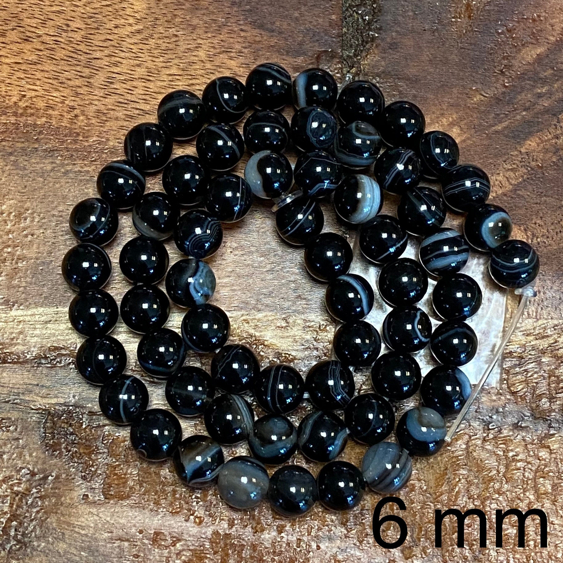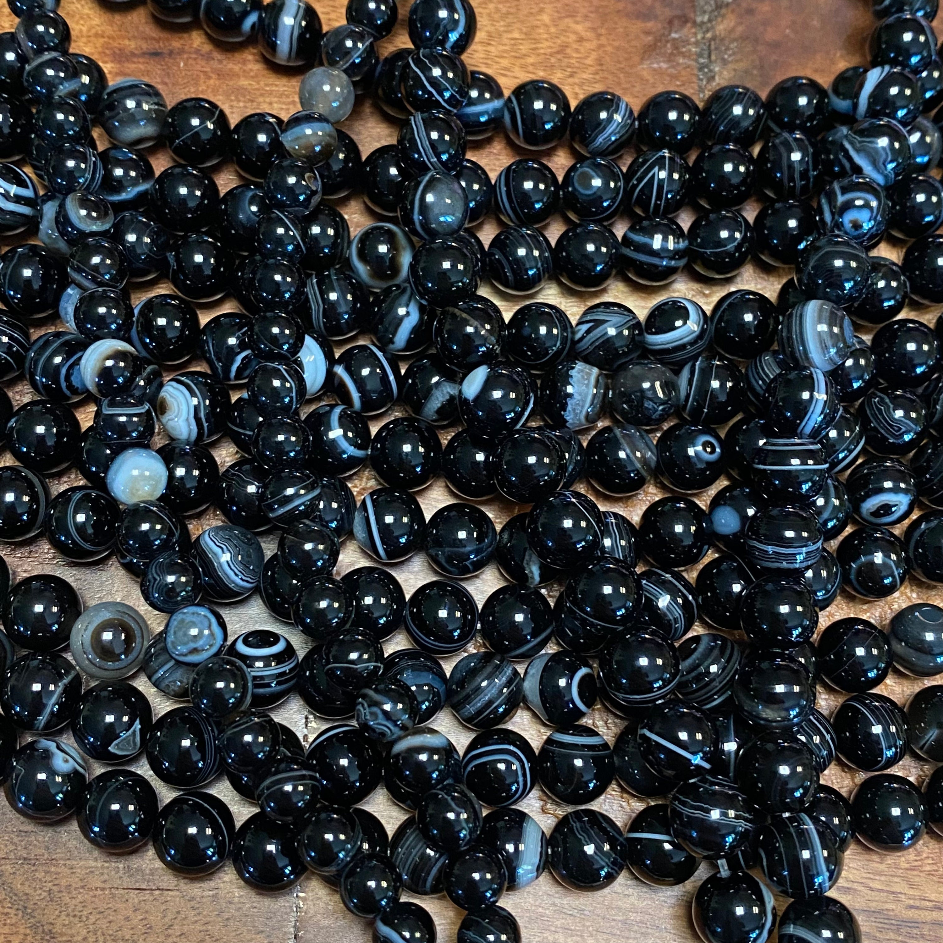 Lovely Natural Black Striped 2 for Jewelry/C'raft Making, Round: 6mm, 8mm