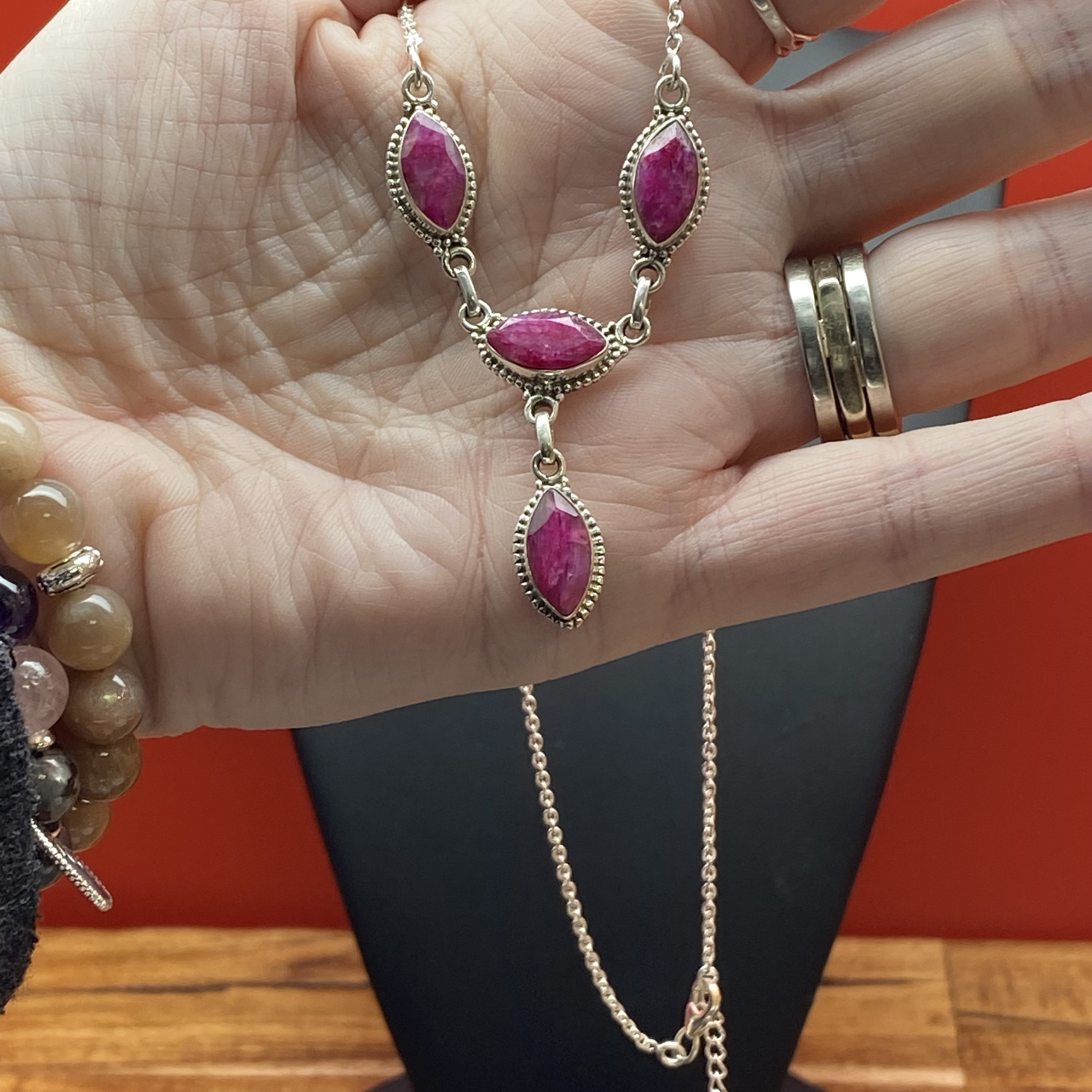 This necklace and pendant are made of high-quality materials. The Ruby is natural and untreated and the chain and settings are made of solid 925 sterling silver.