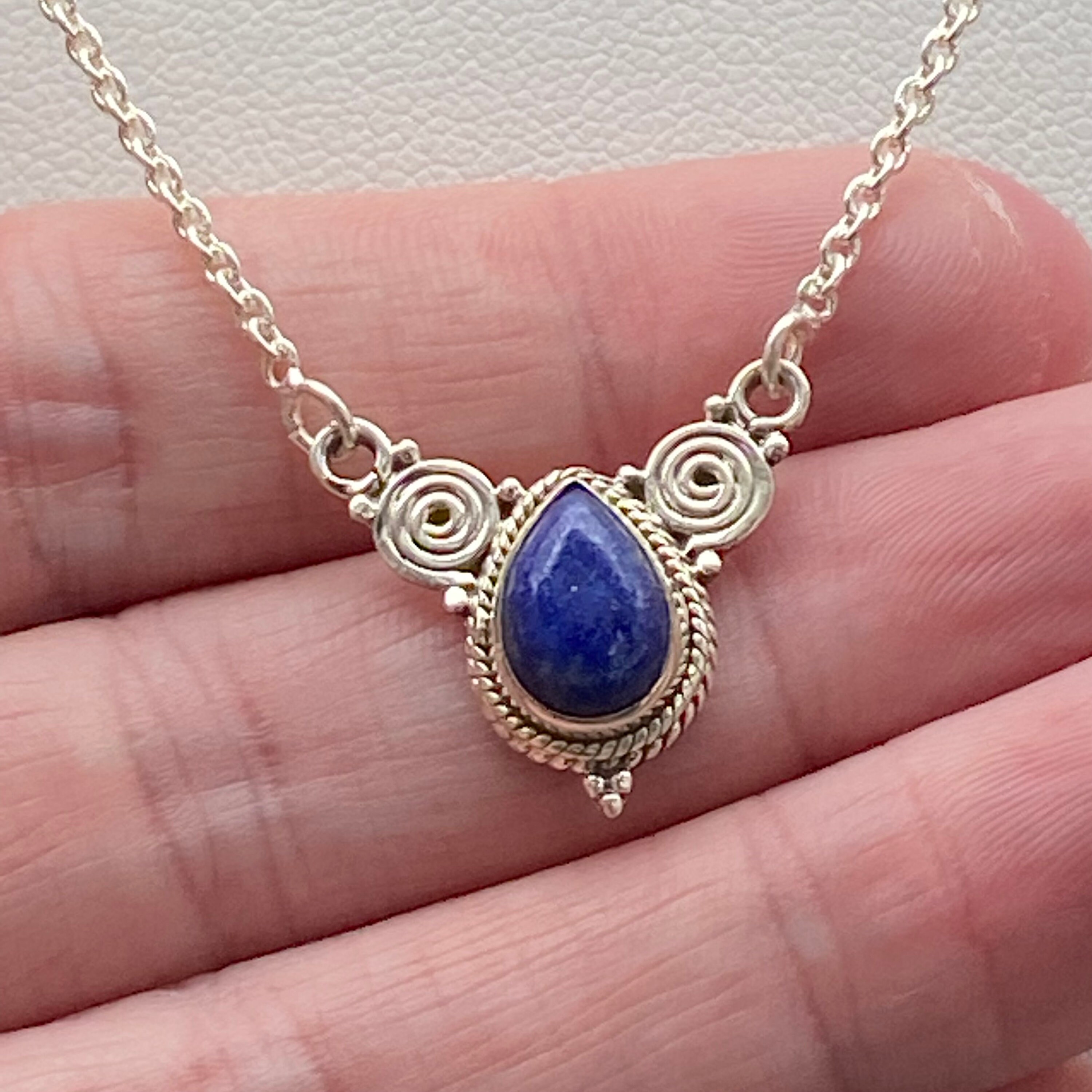 This necklace and pendant are made of high-quality materials. The Lapis Lazuli is natural and untreated and the chain and pendant are made of solid 925 sterling silver.