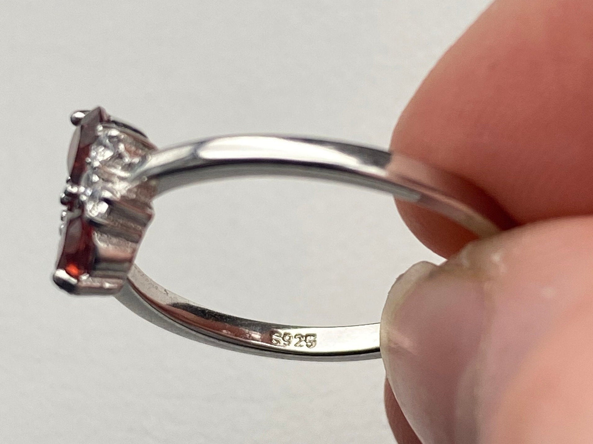 This ring is made of high-quality materials. The Rhodolite Garnets are natural and untreated and the ring is made of solid 925 sterling silver. The small stones around the main stone are high quality cubic zirconia.