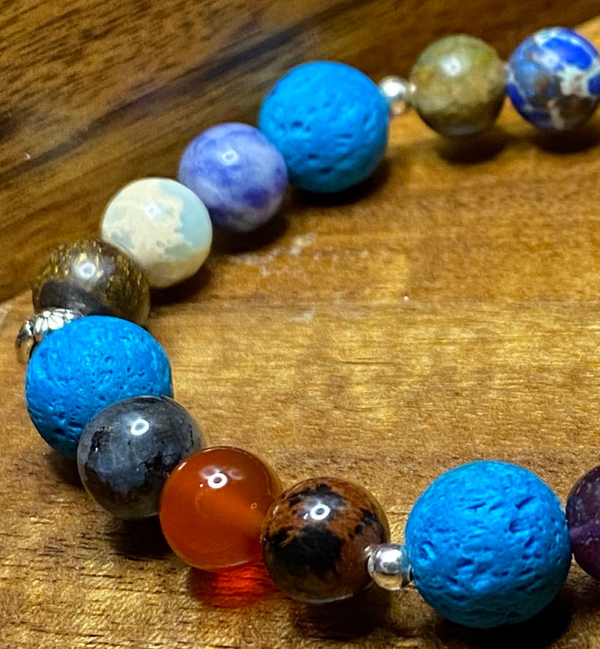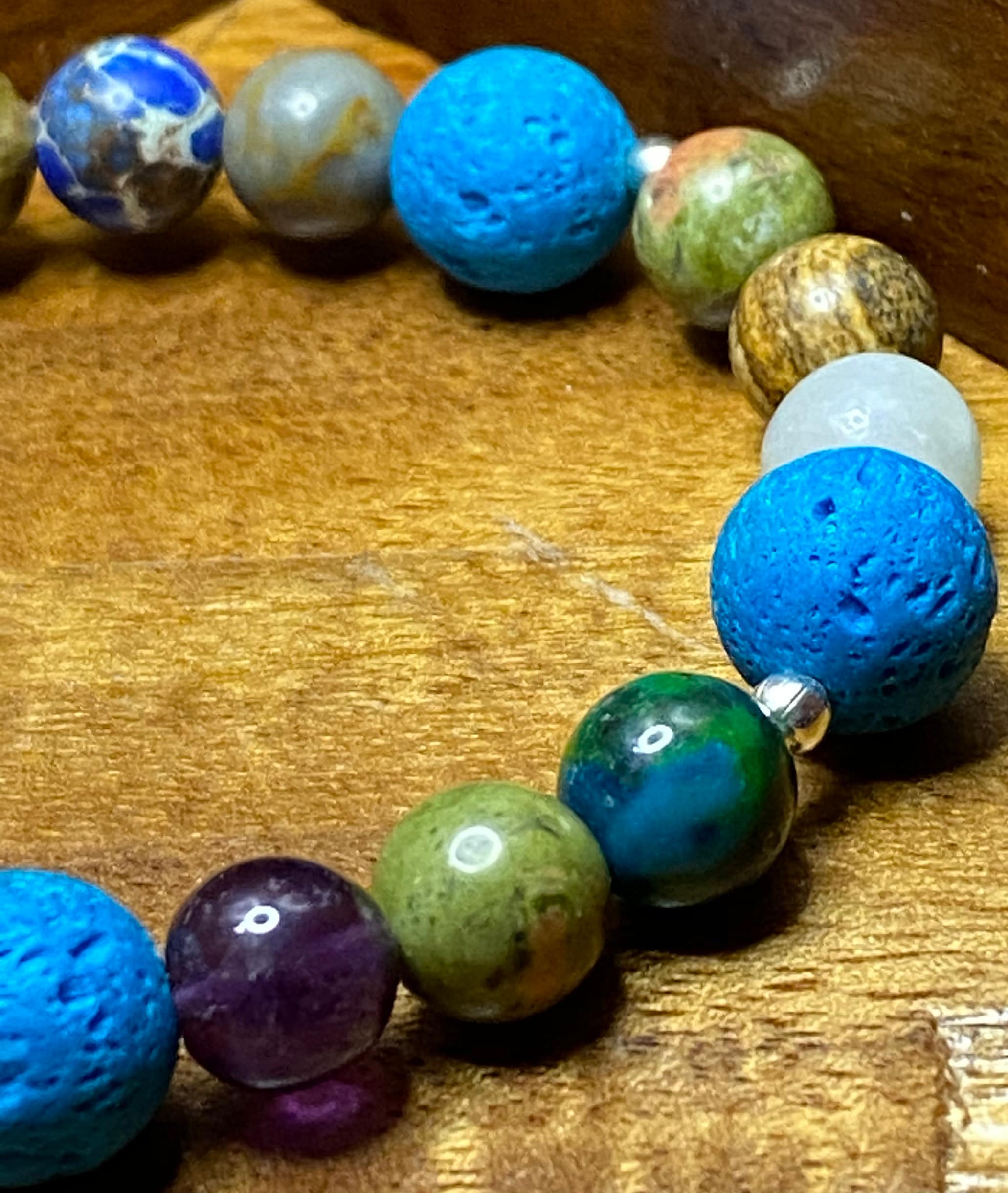 This beautiful multicolored natural stone bracelet has brilliance, elegance and a lot of color. I choose to use both 8mm and 10mm size beads for this bracelet for the perfect mix for style and comfort.
