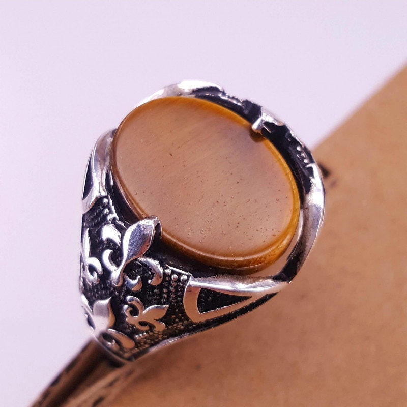 This ring is made of high-quality materials. The Tiger Eye is natural and untreated and the setting is made of solid 925 sterling silver.