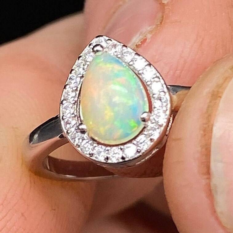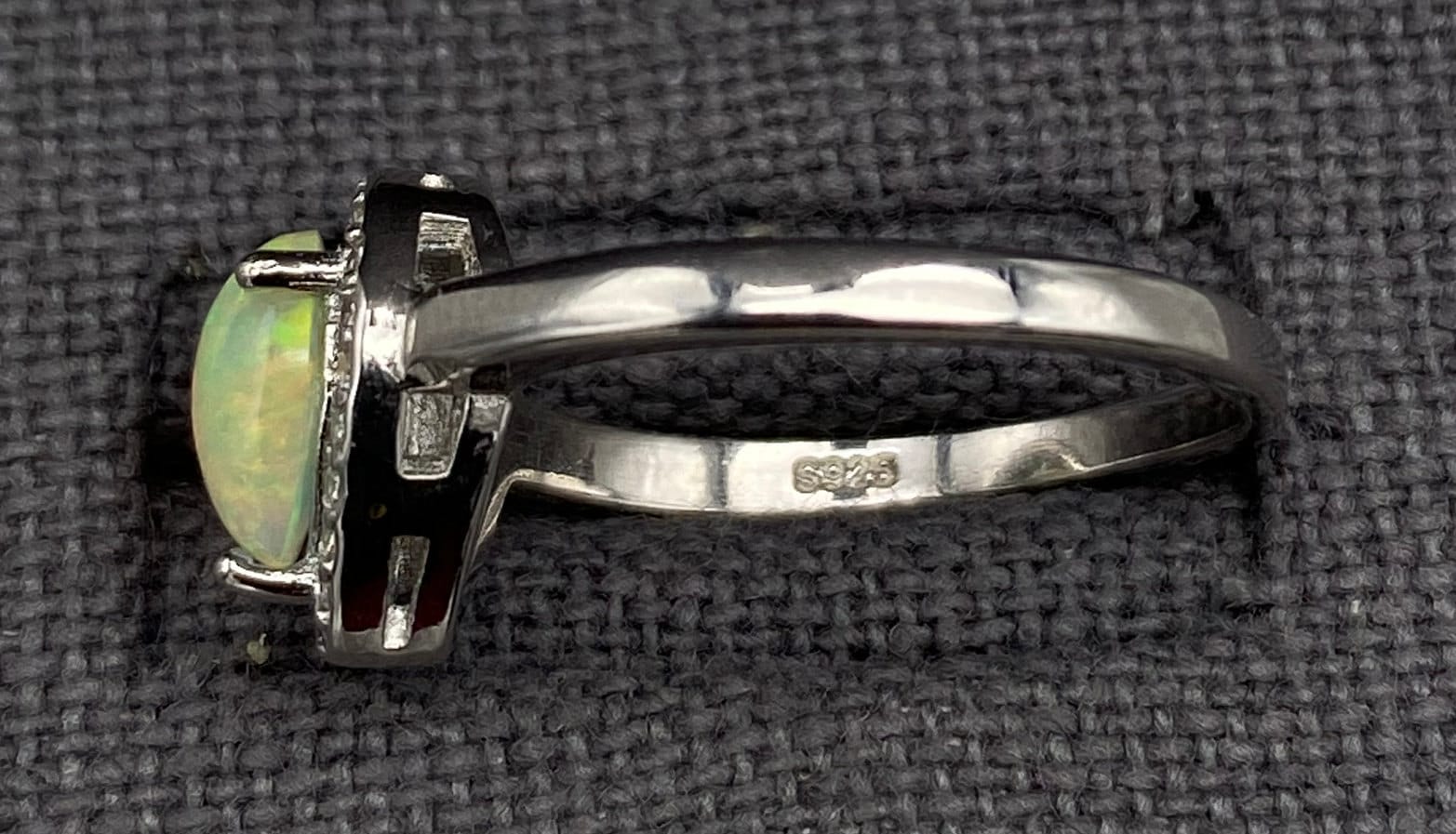This Welo Opal made of high-quality materials. The opal is natural and untreated and the ring is made of solid 925 sterling silver. The small stones around the main stone are superb cubic zirconia.
