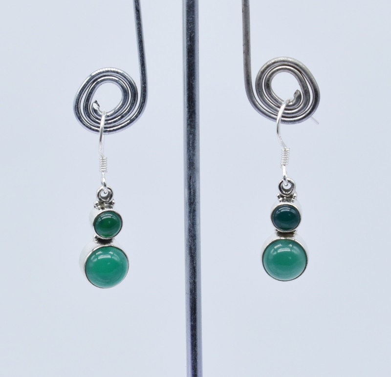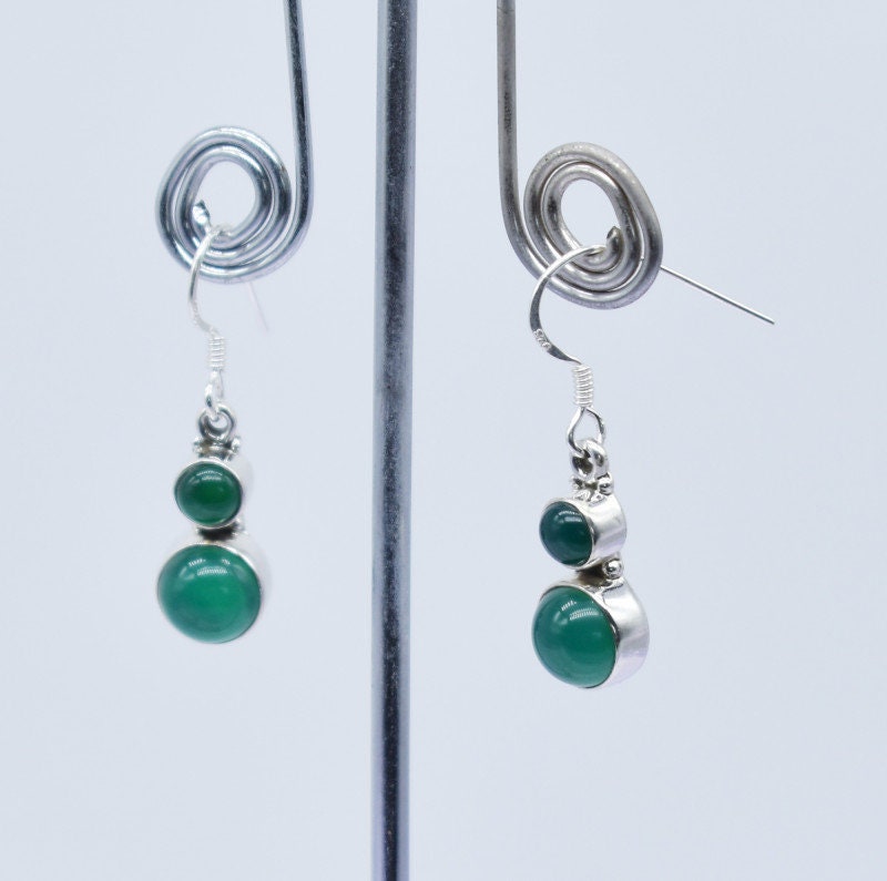 These earrings are made of high-quality materials. The Green Onyx is natural and untreated and the setting is made of solid 925 sterling silver.