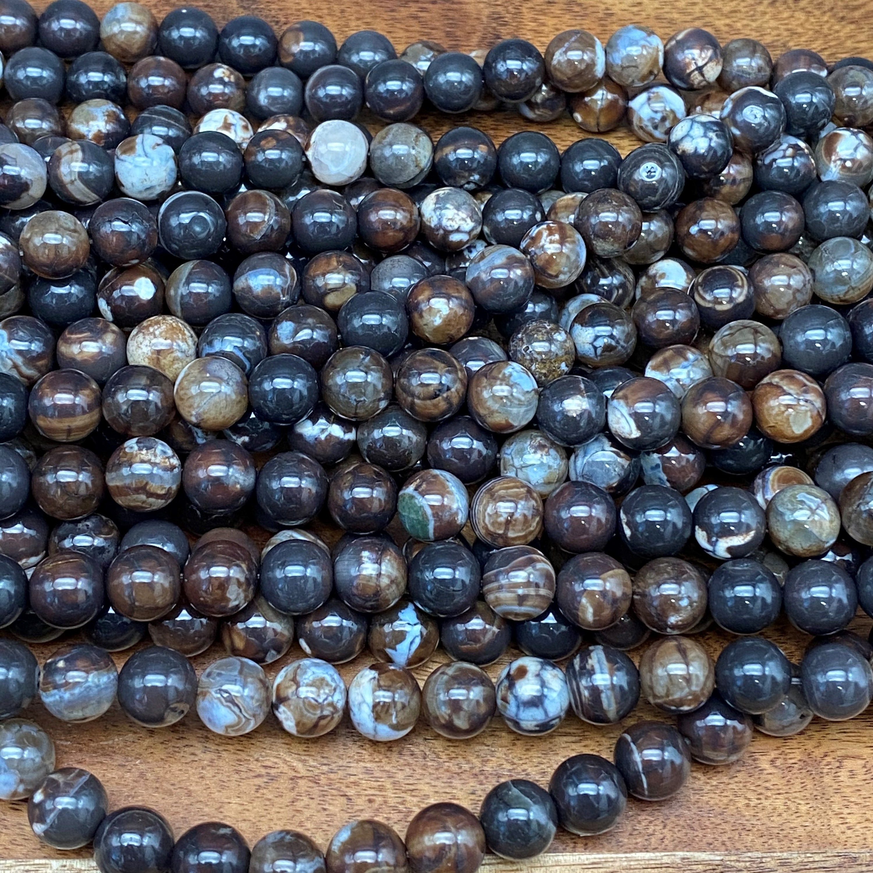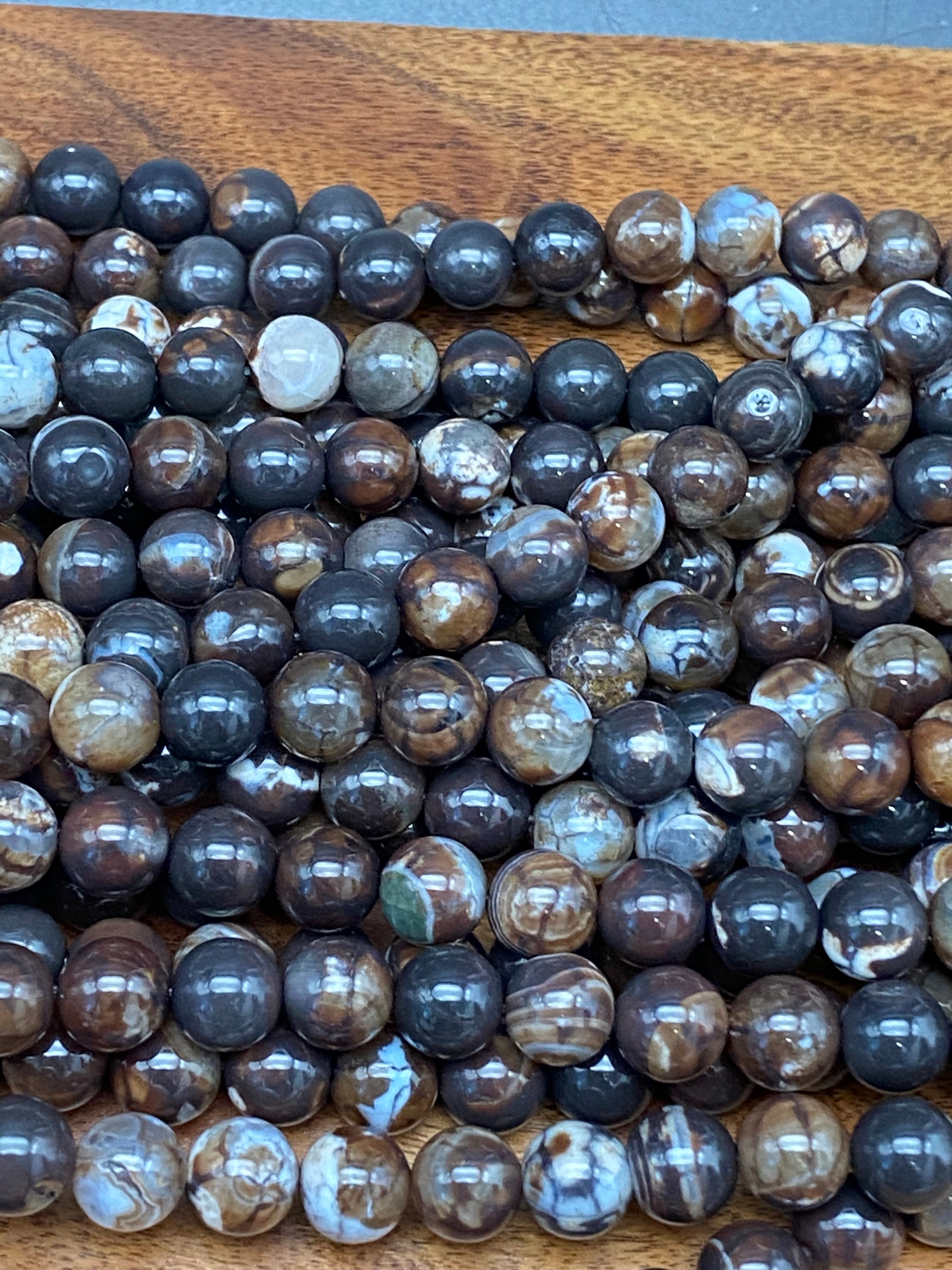 Phenomenal Natural Coffee Brown Fire 2 for Jewelry/Craft Making, Round 8mm (44-48 pieces)