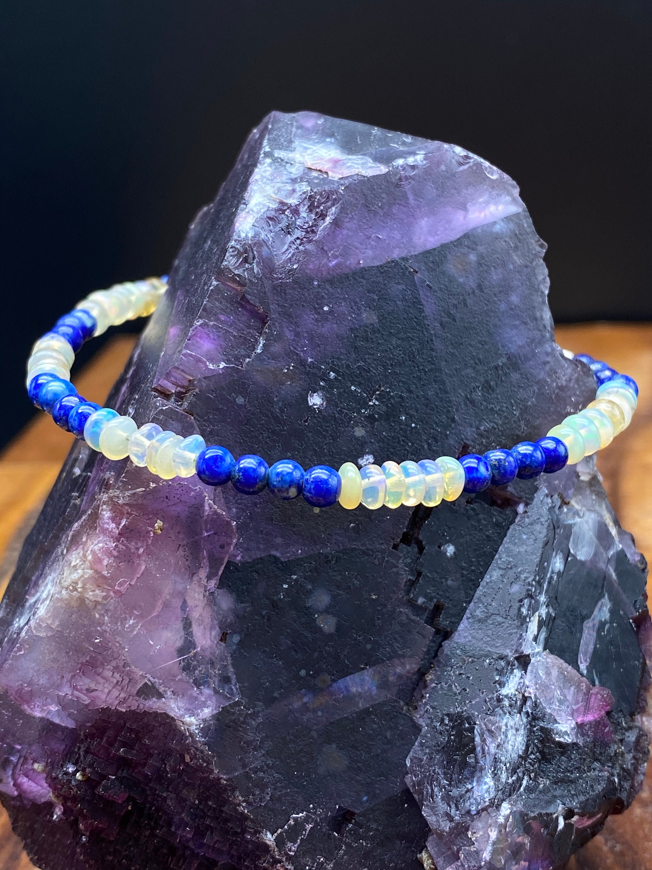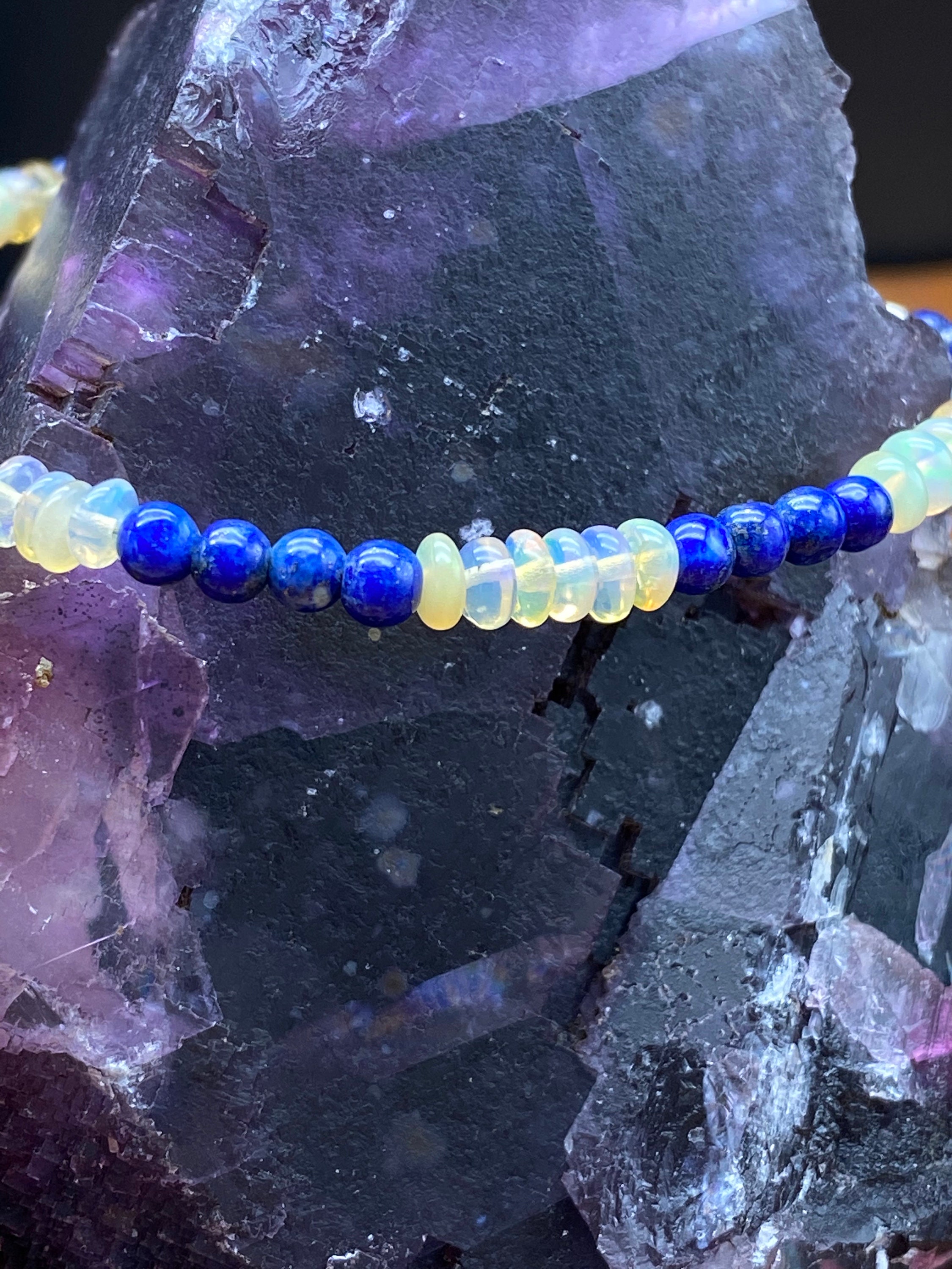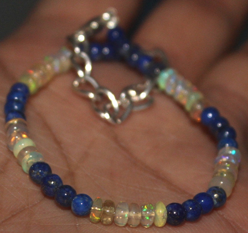 This bracelet is made of high-quality materials. The Ethiopian Welo Broad flash/Pinfire Opal & Lapis Lazuli are natural and untreated and the extra links and clasp are made of solid 925 sterling silver.