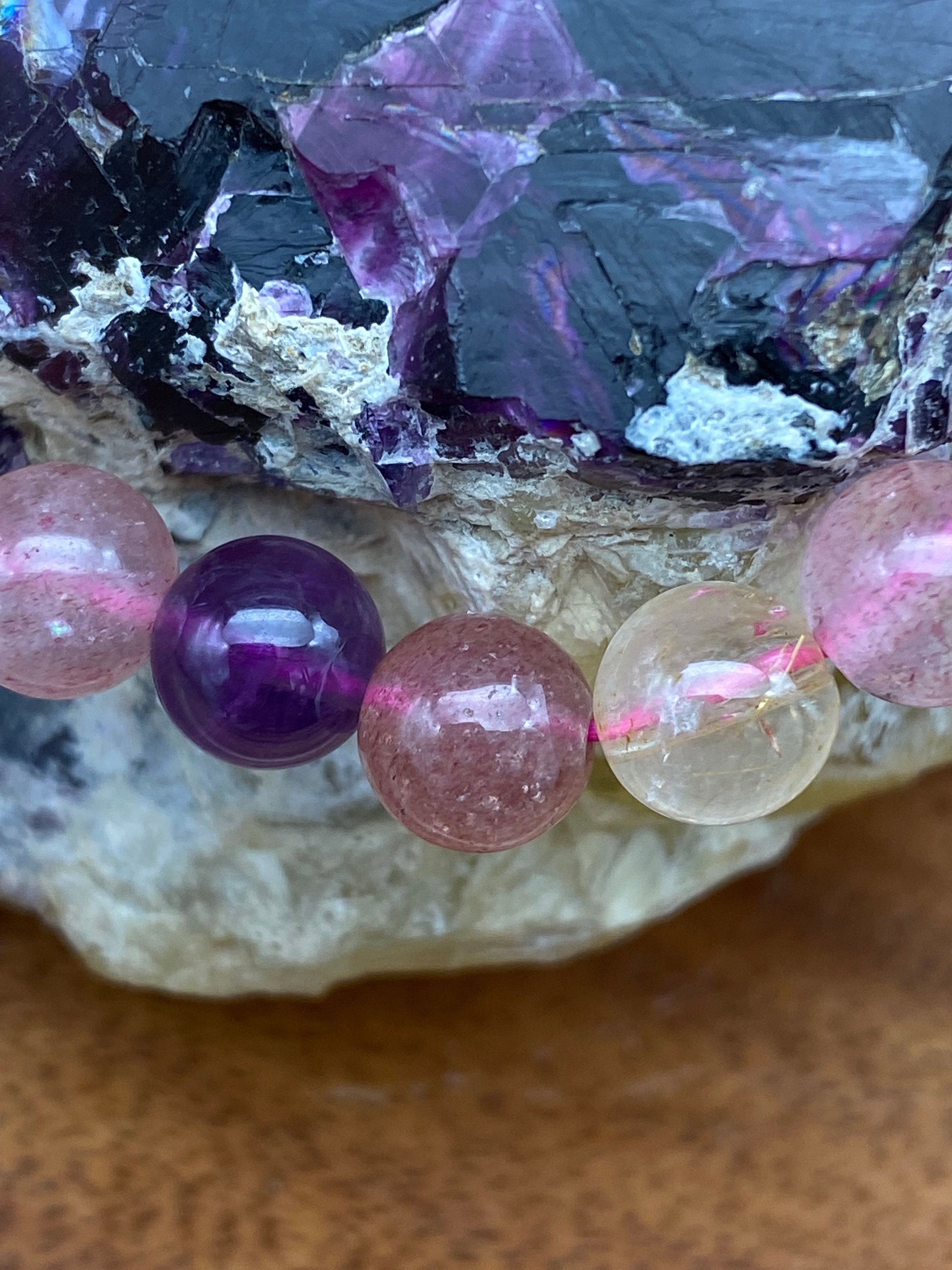 This bracelet is made of high-quality materials. The Super Seven Crystal Quartz are natural untreated.