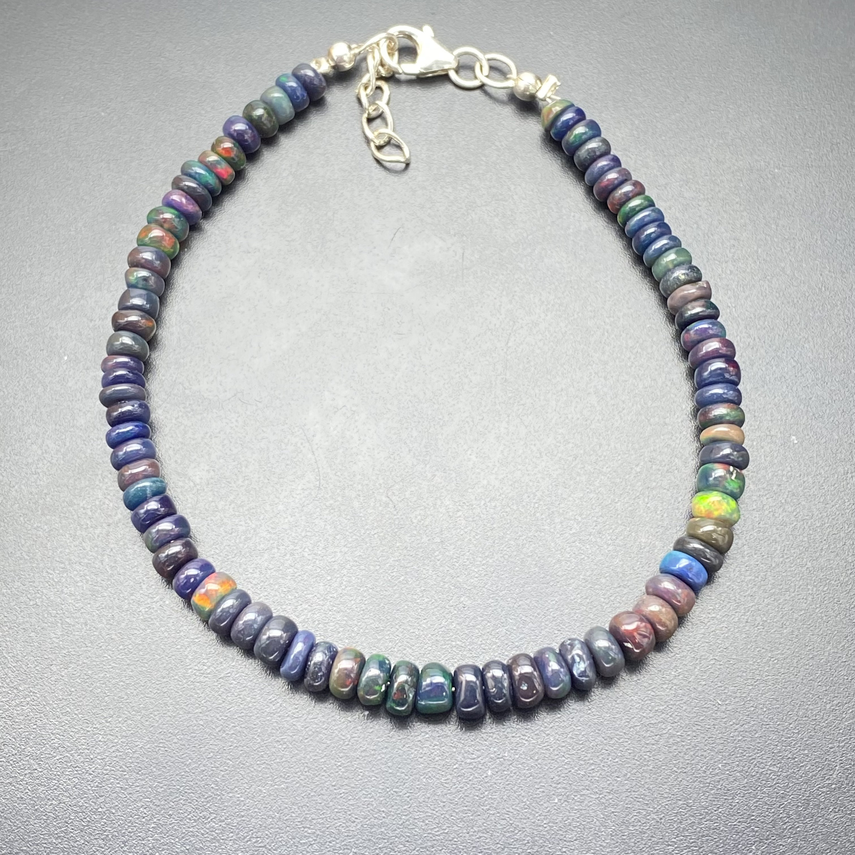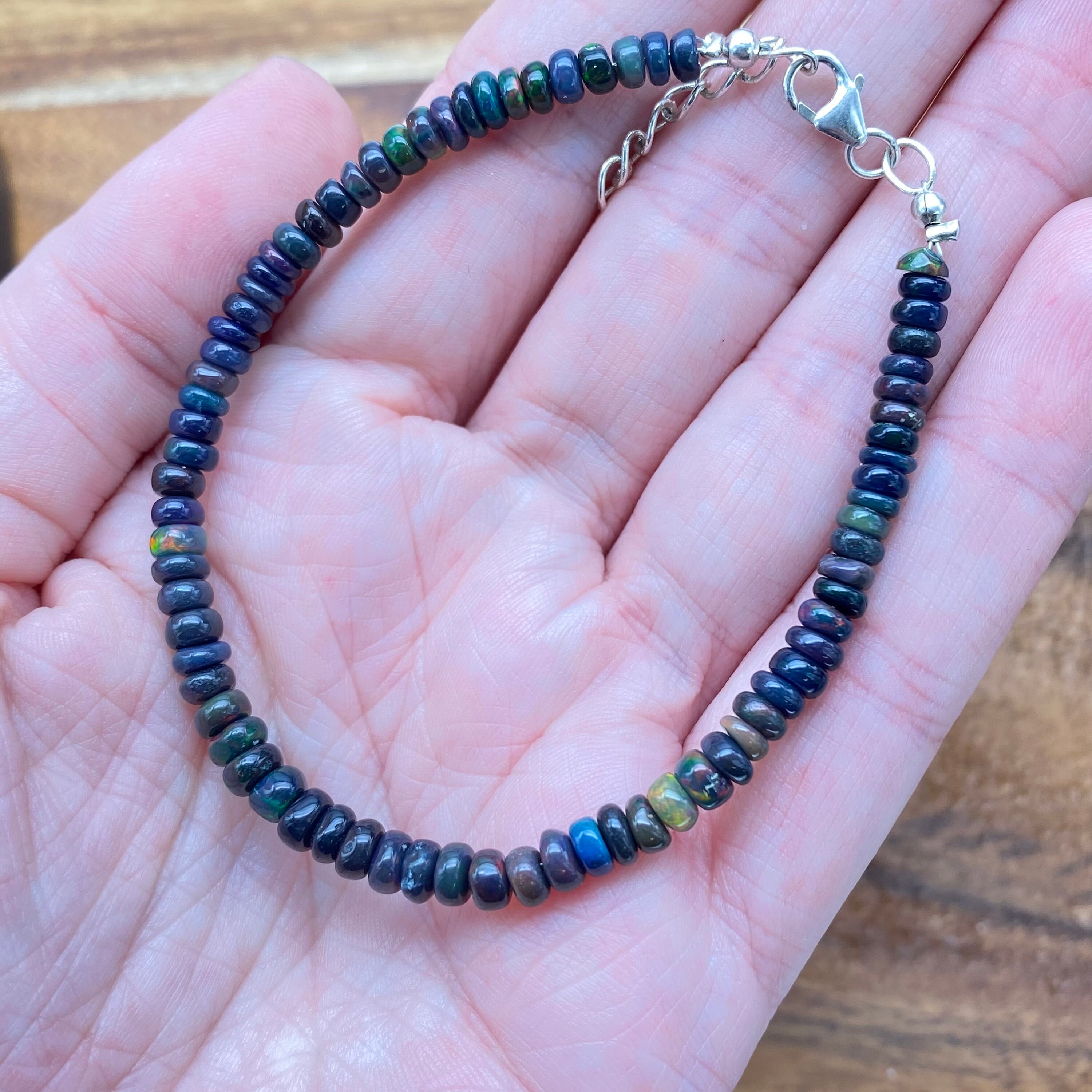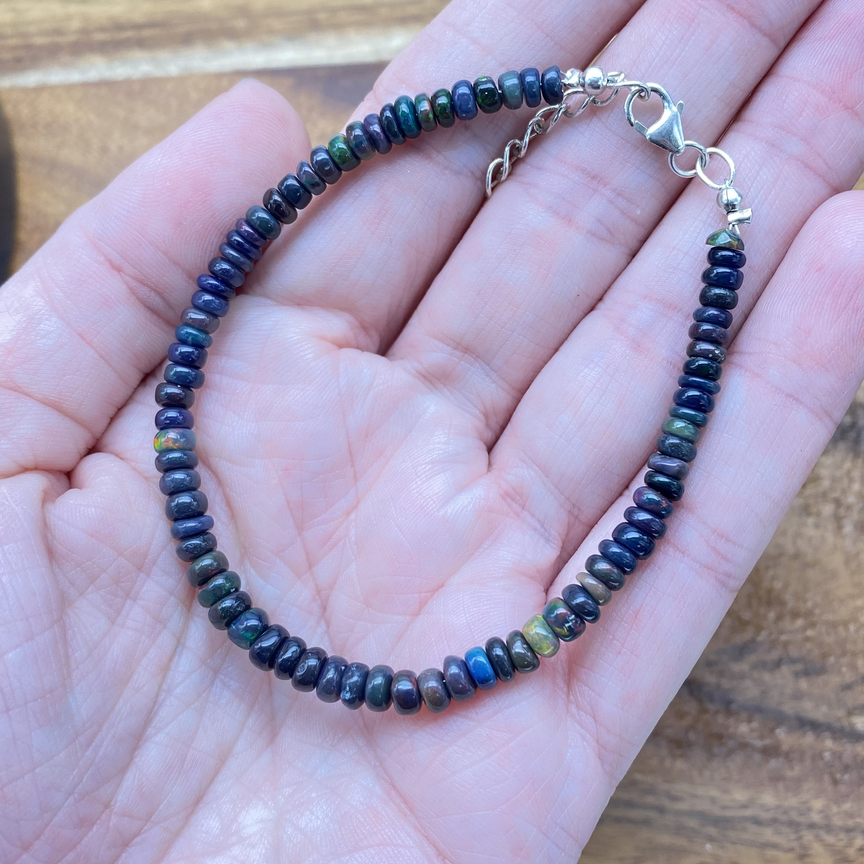 This bracelet is made of high-quality materials. The smoked black Ethiopian Welo Opals are natural and untreated (besides the opals being smoked) and the accents and closure are made of solid 925 sterling silver.