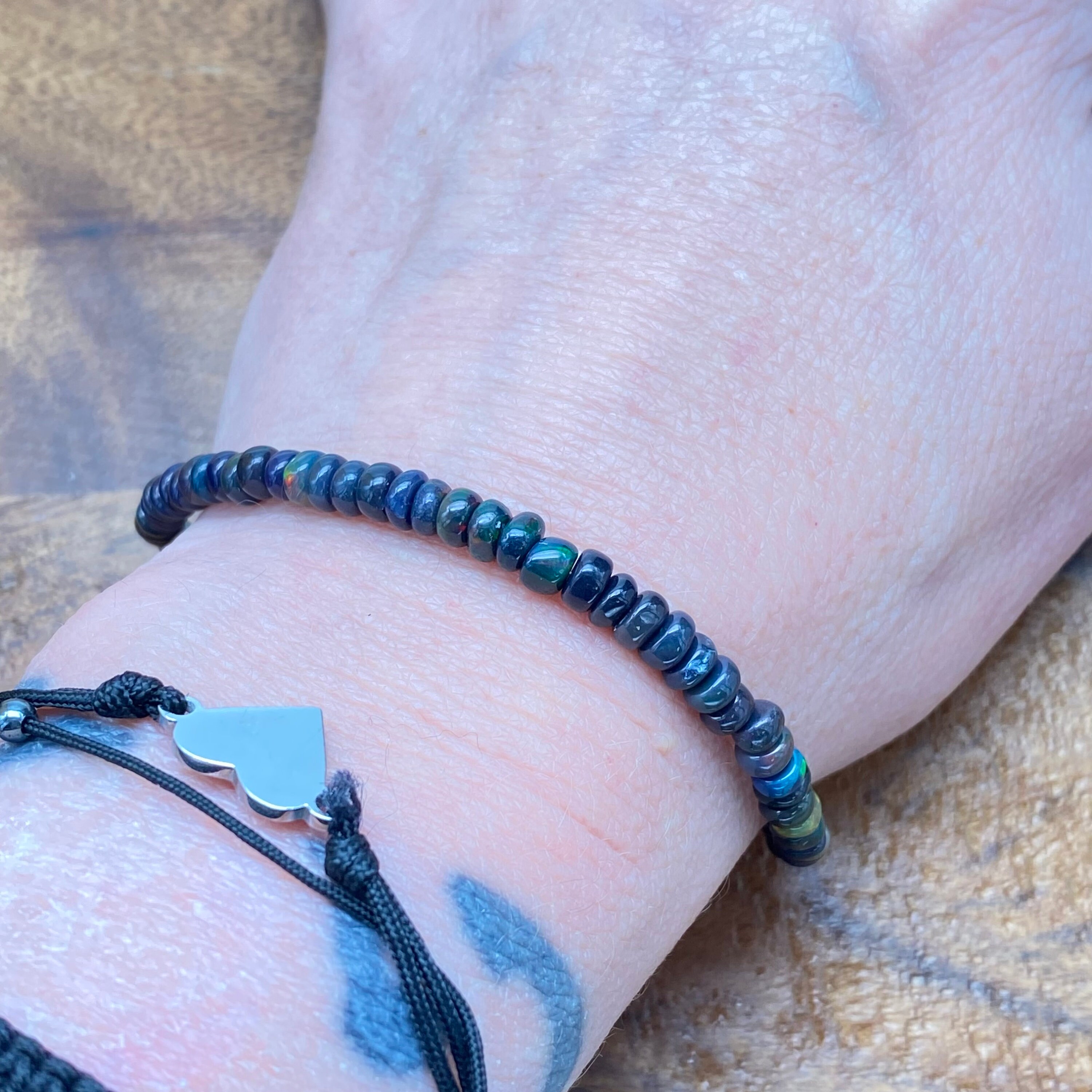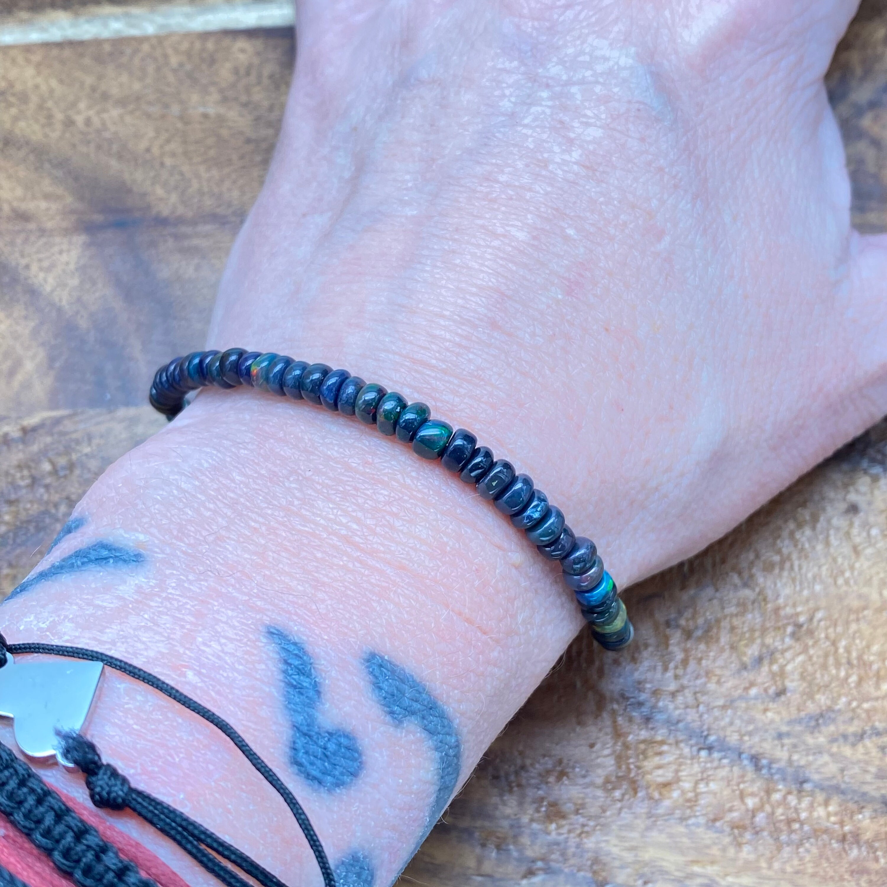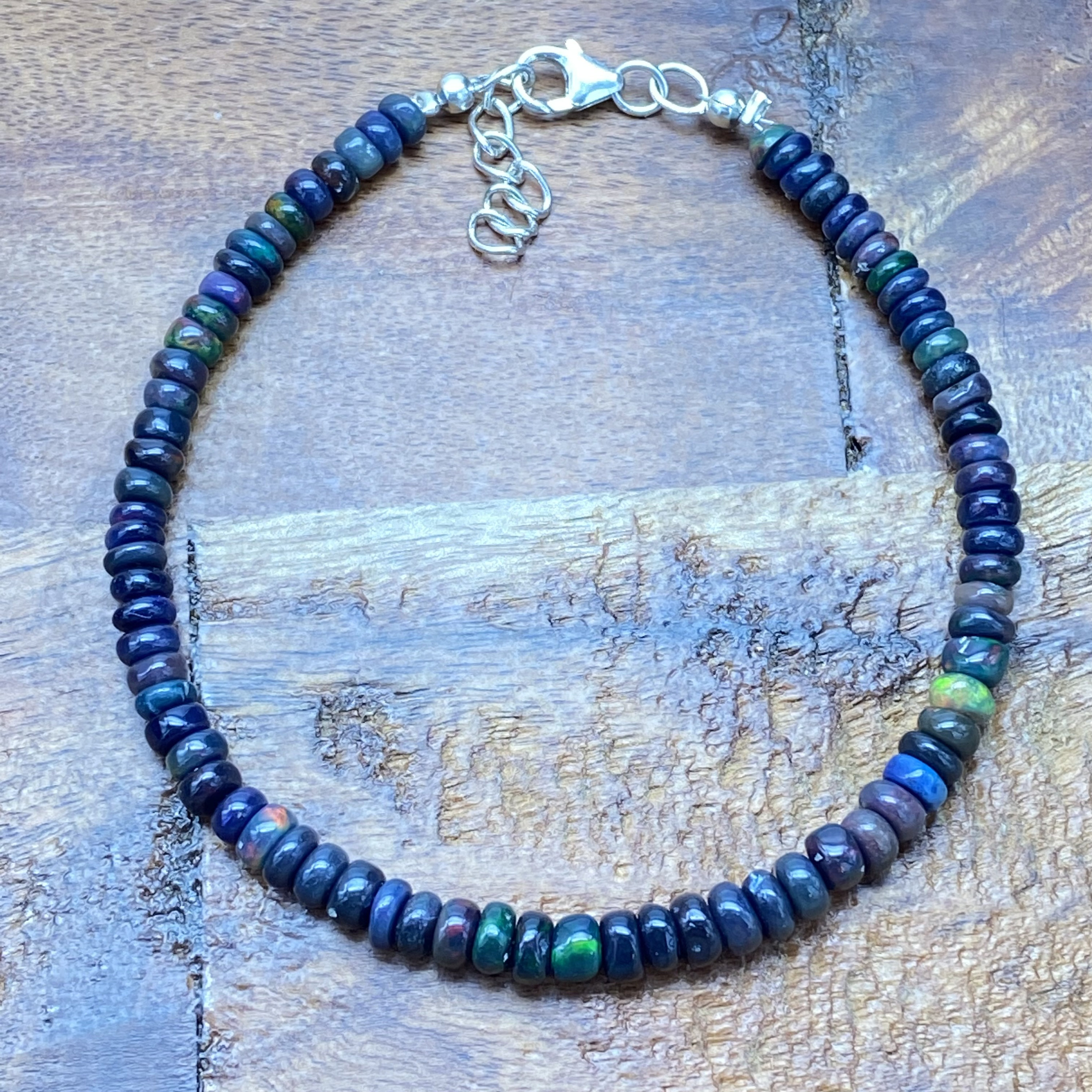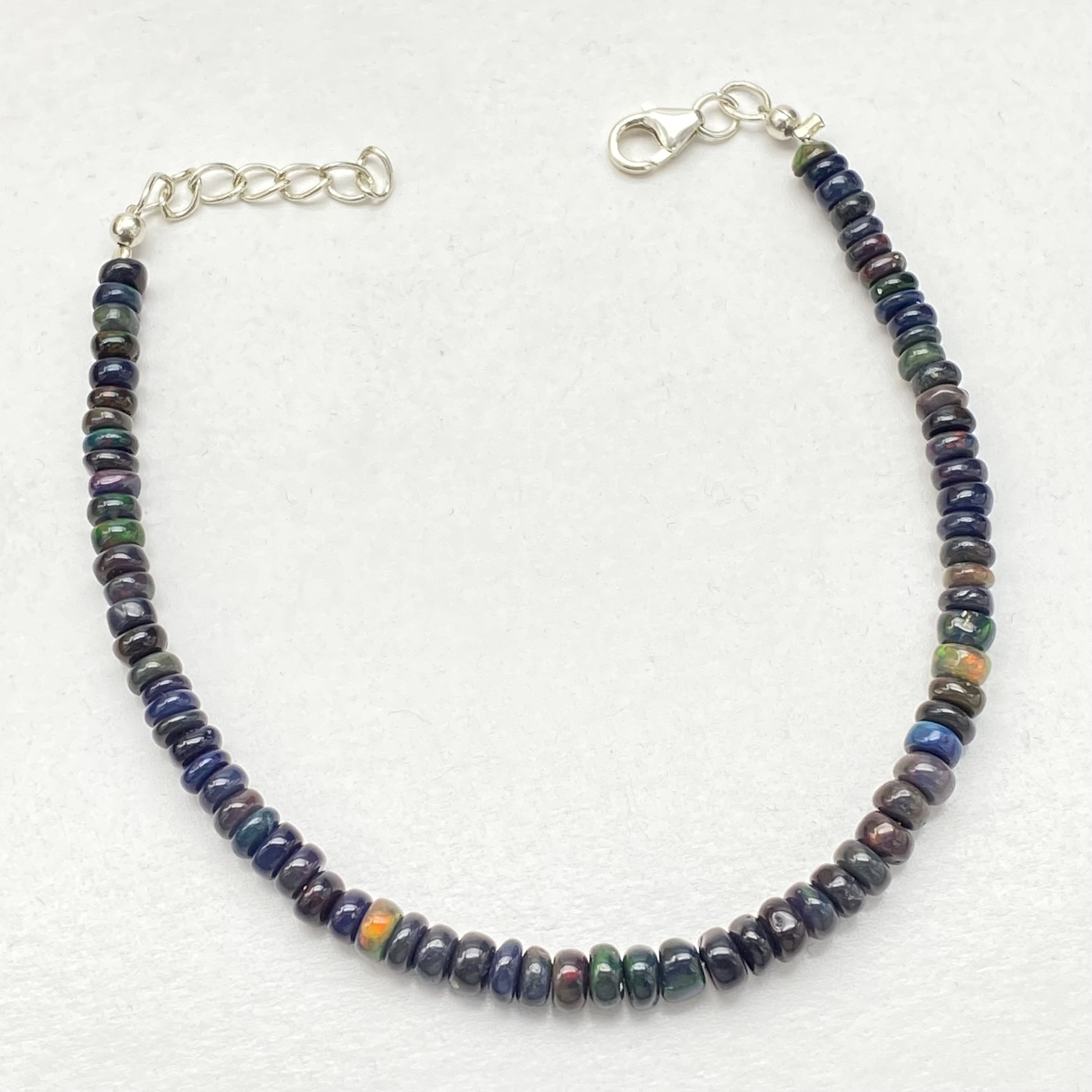 This bracelet is made of high-quality materials. The smoked black Ethiopian Welo Opals are natural and untreated (besides the opals being smoked) and the accents and closure are made of solid 925 sterling silver.