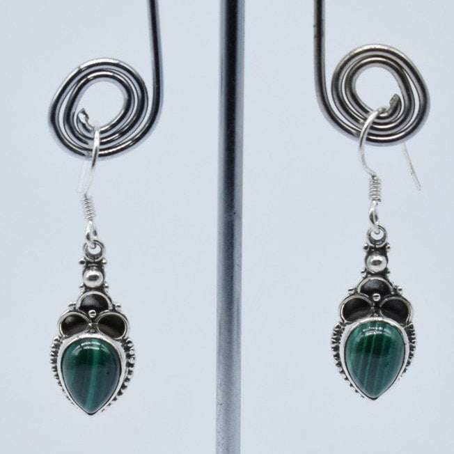 These earrings are made of high-quality materials. The Malachite is natural and untreated and the setting is made of solid 925 sterling silver.