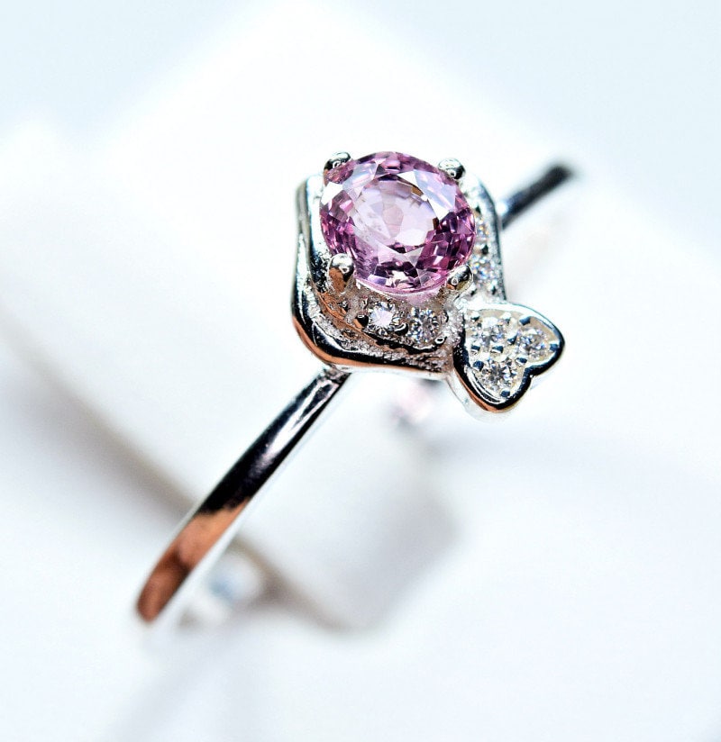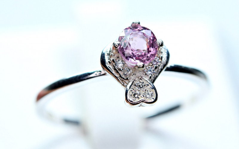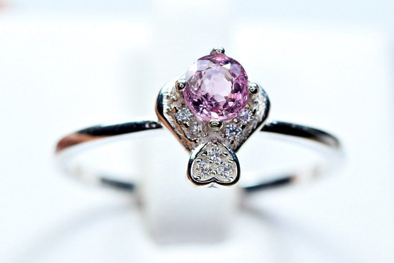 This ring is made of high-quality materials. The Purple/Pink Burmese Spinel is natural and untreated and the setting is made of solid 925 sterling silver. The small stones around the main stone are high quality cubic zirconia.