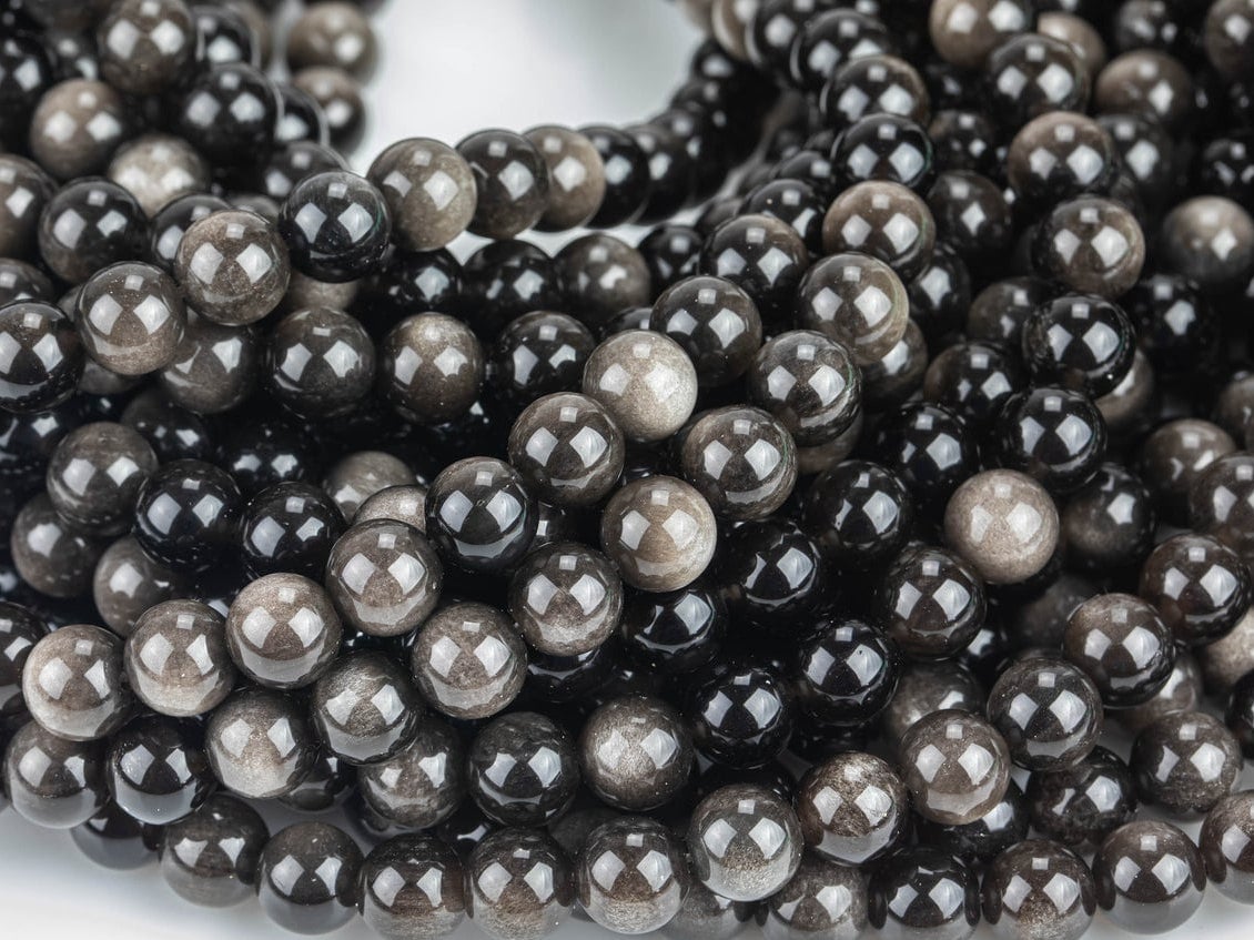 Premium Quality Natural Silver Obsidian Gemstone Beads for Jewelry/Craft Making, Round: 6mm, 8mm
