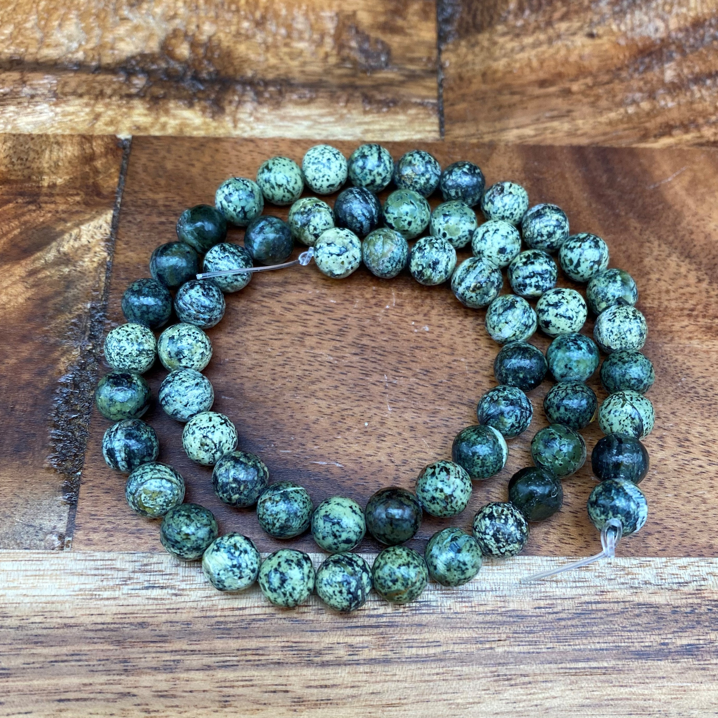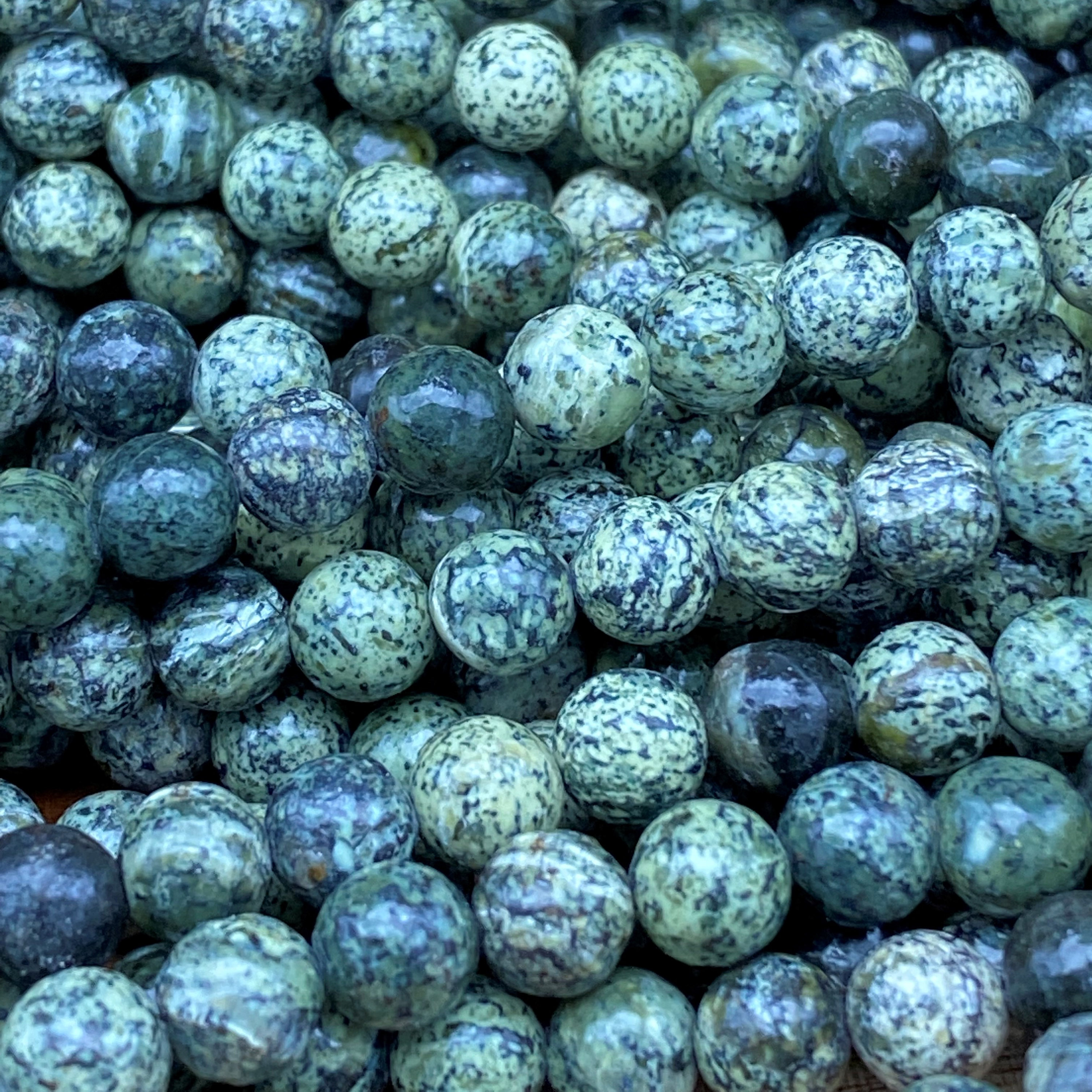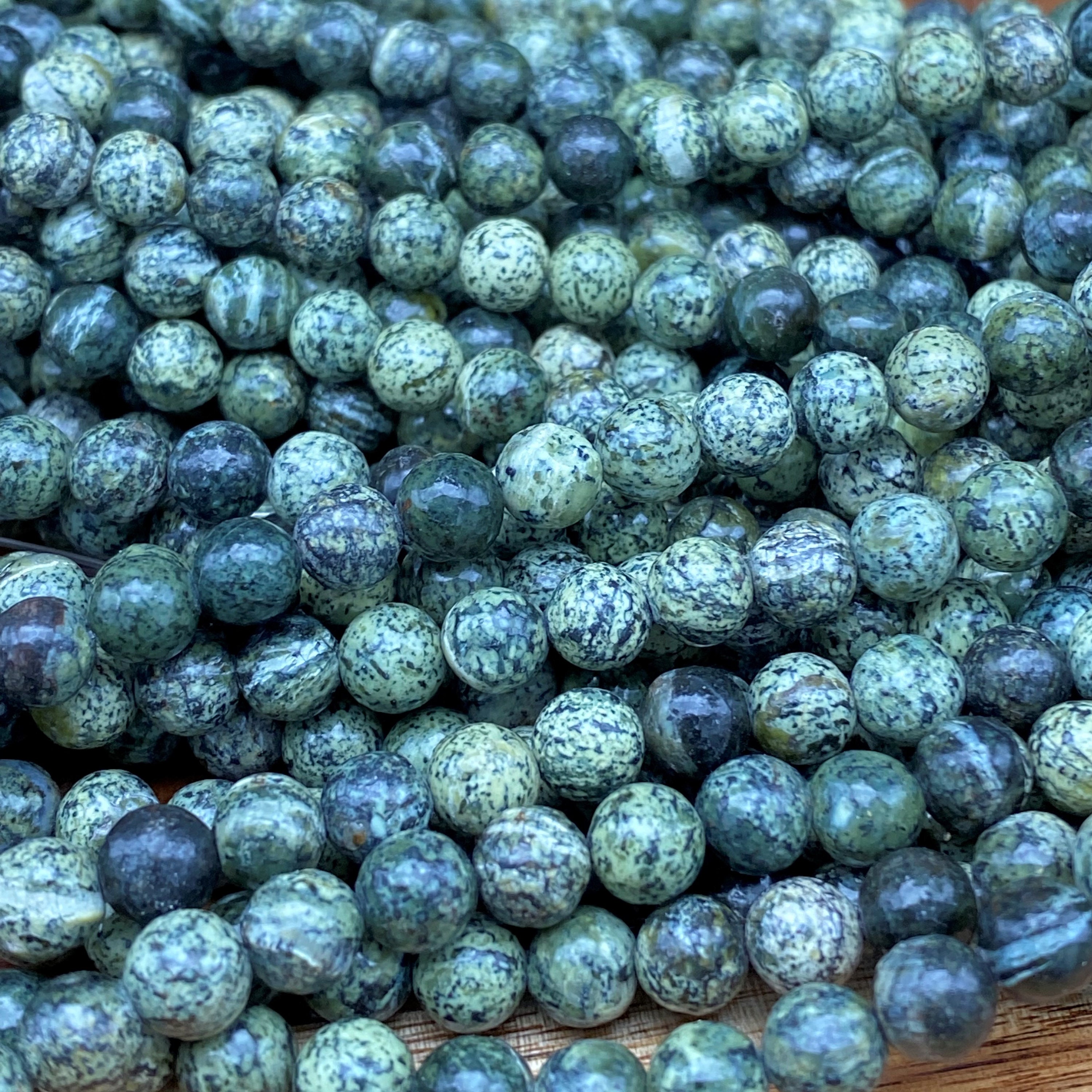 Radiant Natural Green Zebra Jasper Gemstone/6 for Jewelry/Craft Making, Round: 6mm, 8mm