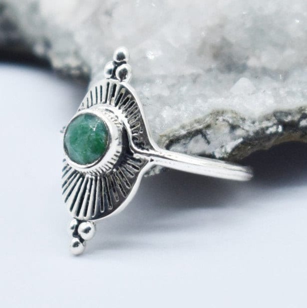 This ring is made of high-quality materials. The Emerald is natural and untreated and the setting is made of solid 925 sterling silver.