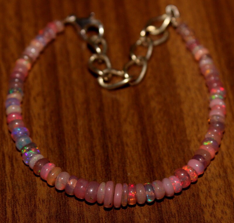 This bracelet is made of high-quality materials. The Ethiopian Welo Opal is natural and has been smoked to get the beautiful pink tones. The clasp is made of solid 925 sterling silver.