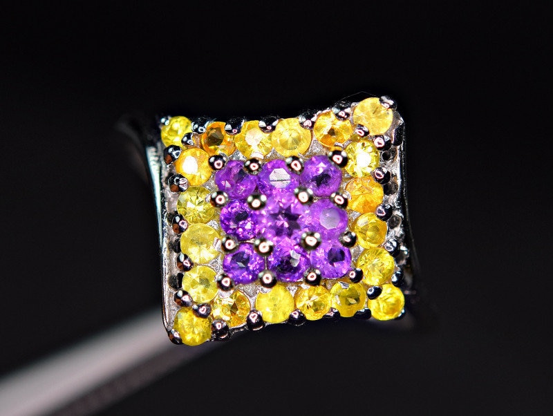 This ring is made of high-quality materials. The citrine is natural and untreated while the setting is made of solid 925 sterling silver. The small stones around the main stone are high quality cubic zirconia.