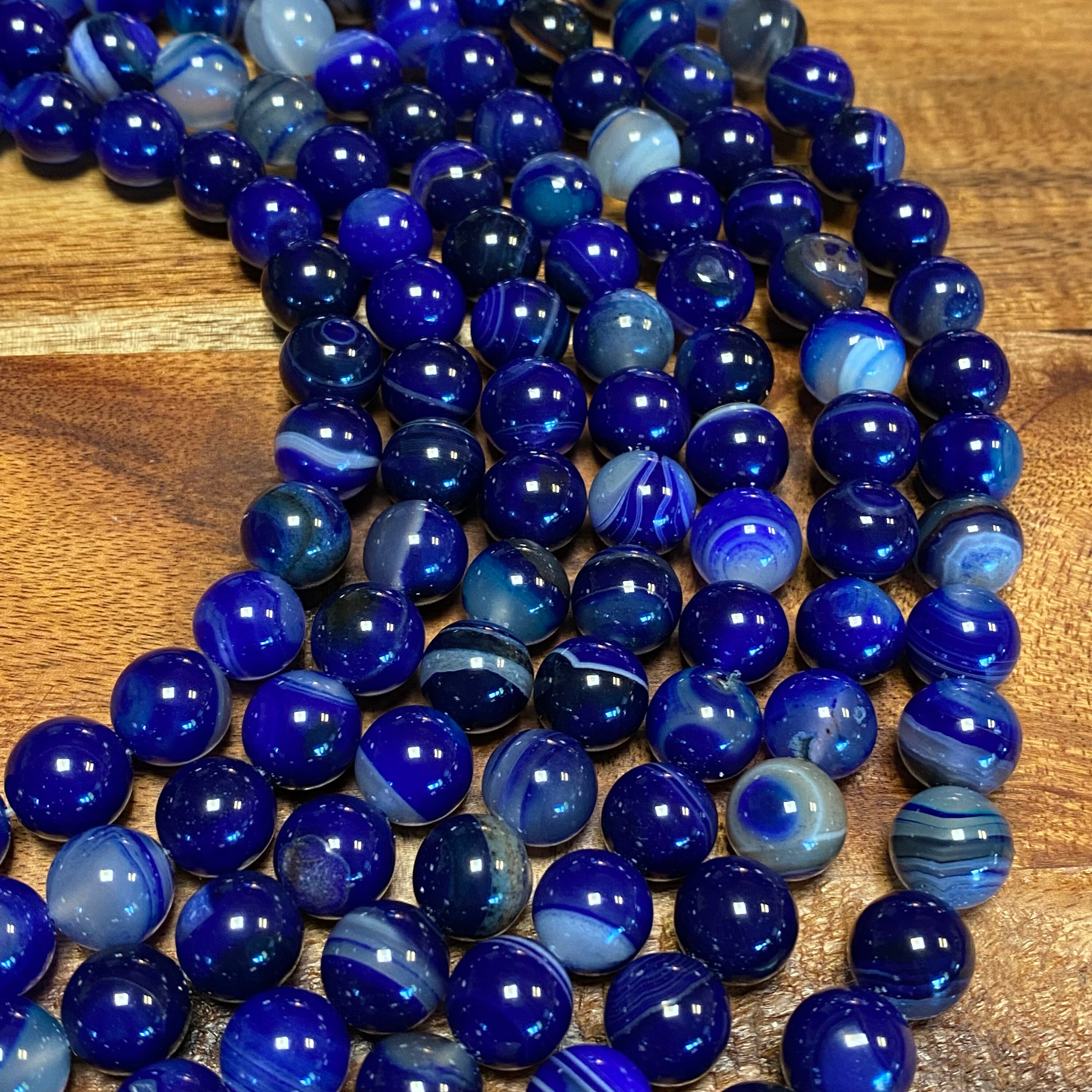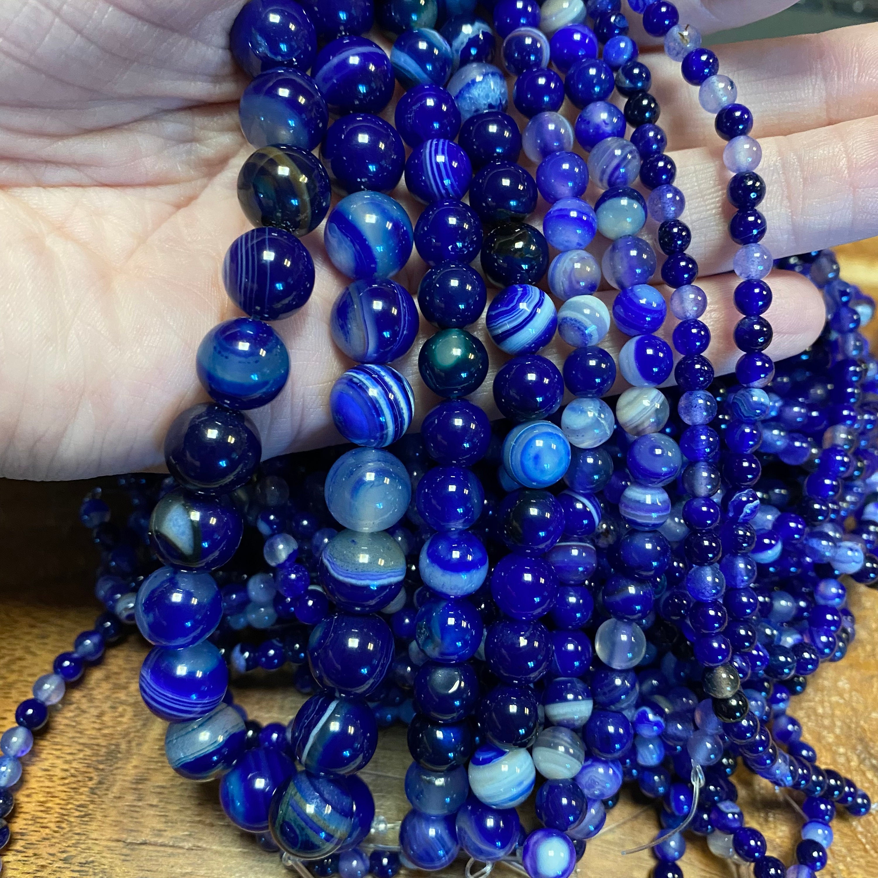 Striking Midnight Blue Striped 2 for Jewelry/Craft Making, Round: 4mm, 6mm, 8mm, 10mm