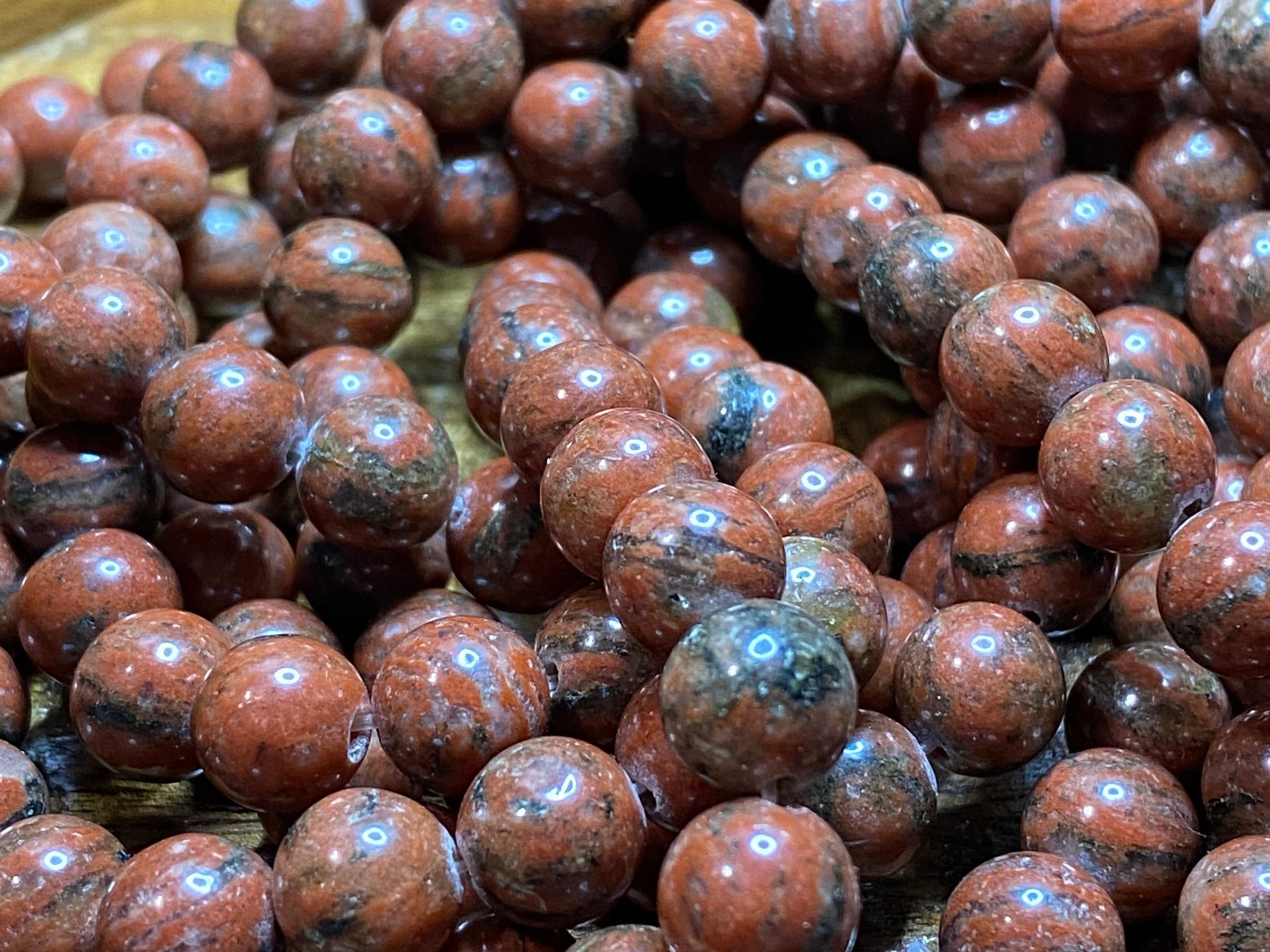 Stunning Natural Red/Brown Poppy 15 for Jewelry/Craft Making, Round 8mm (44-48 pieces)