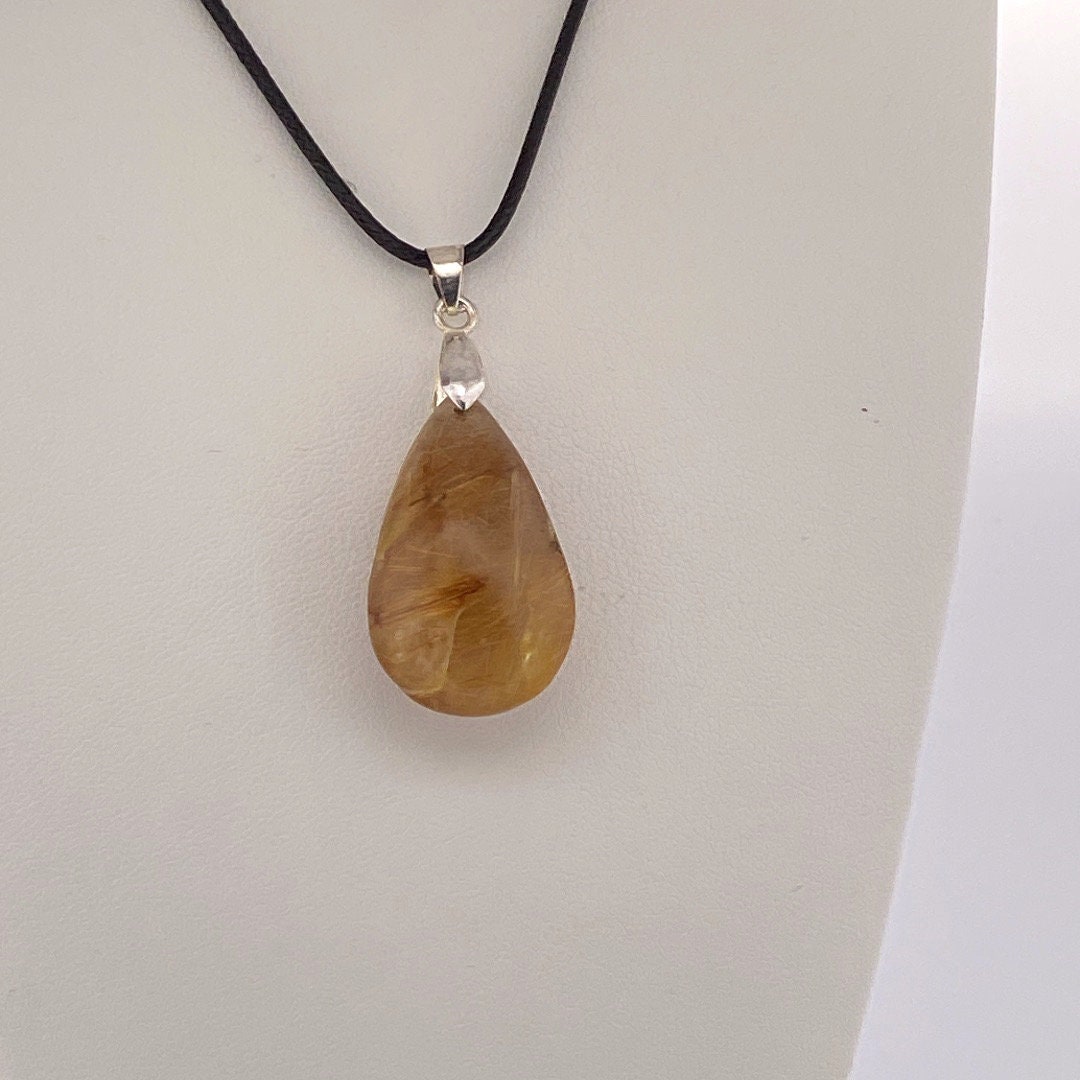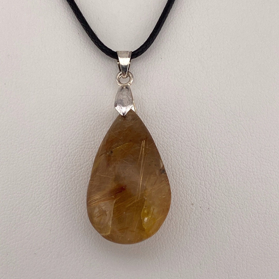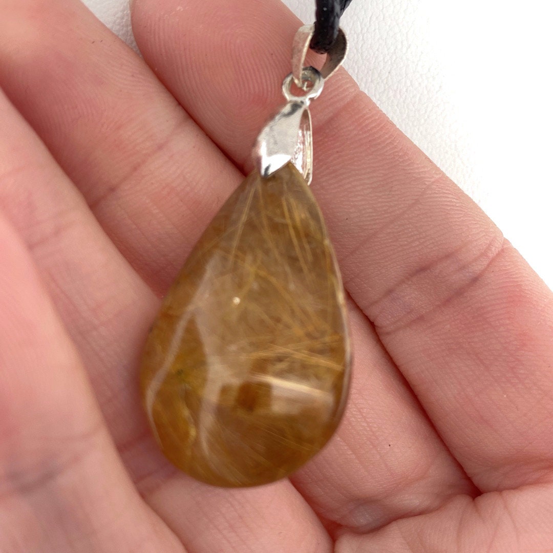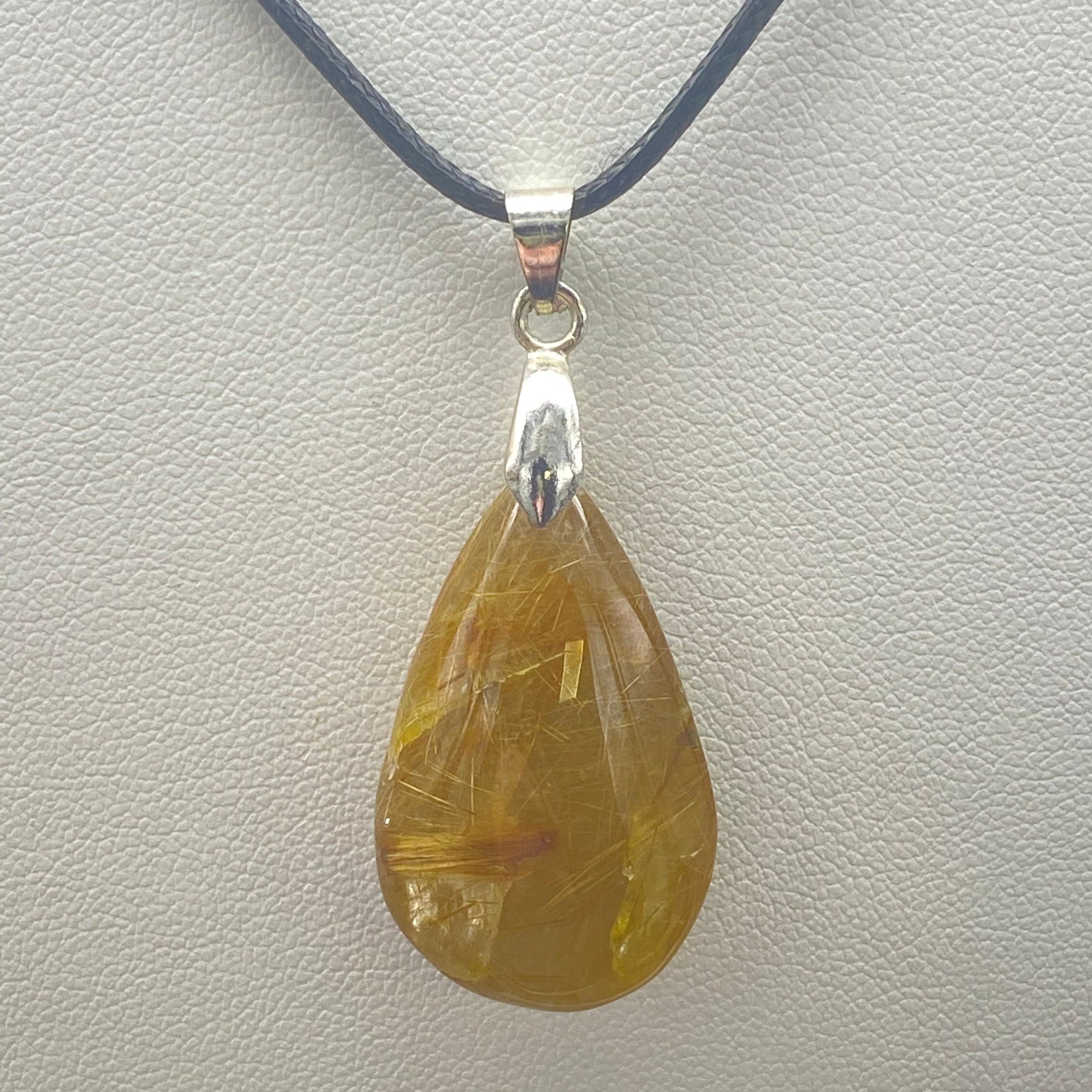 This necklace and pendant are made of high-quality materials. The Golden Rutile Quartz is natural and untreated and the pendant is made of solid 925 sterling silver. The necklace is nylon with silver findings. Listing includes an extra nylon necklace