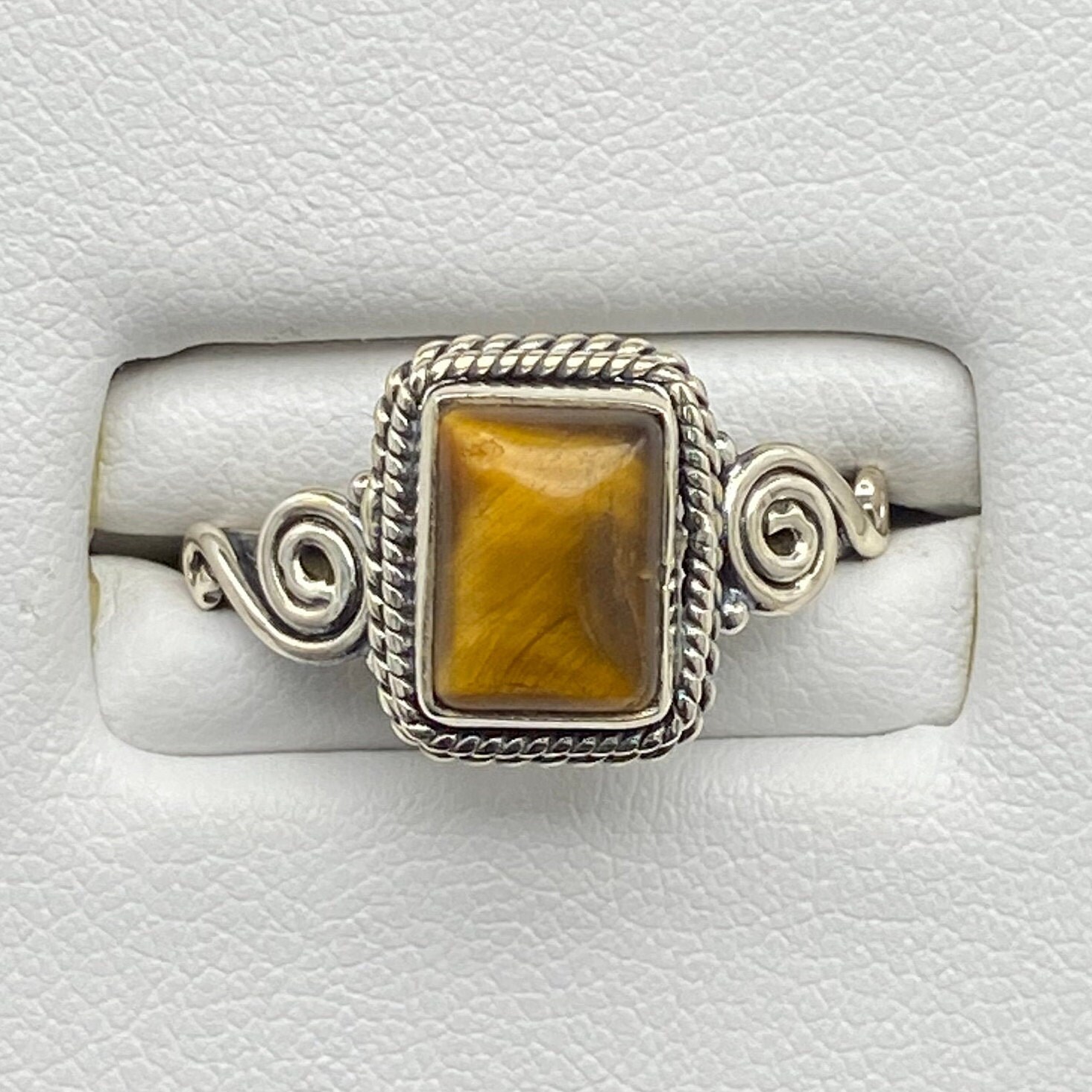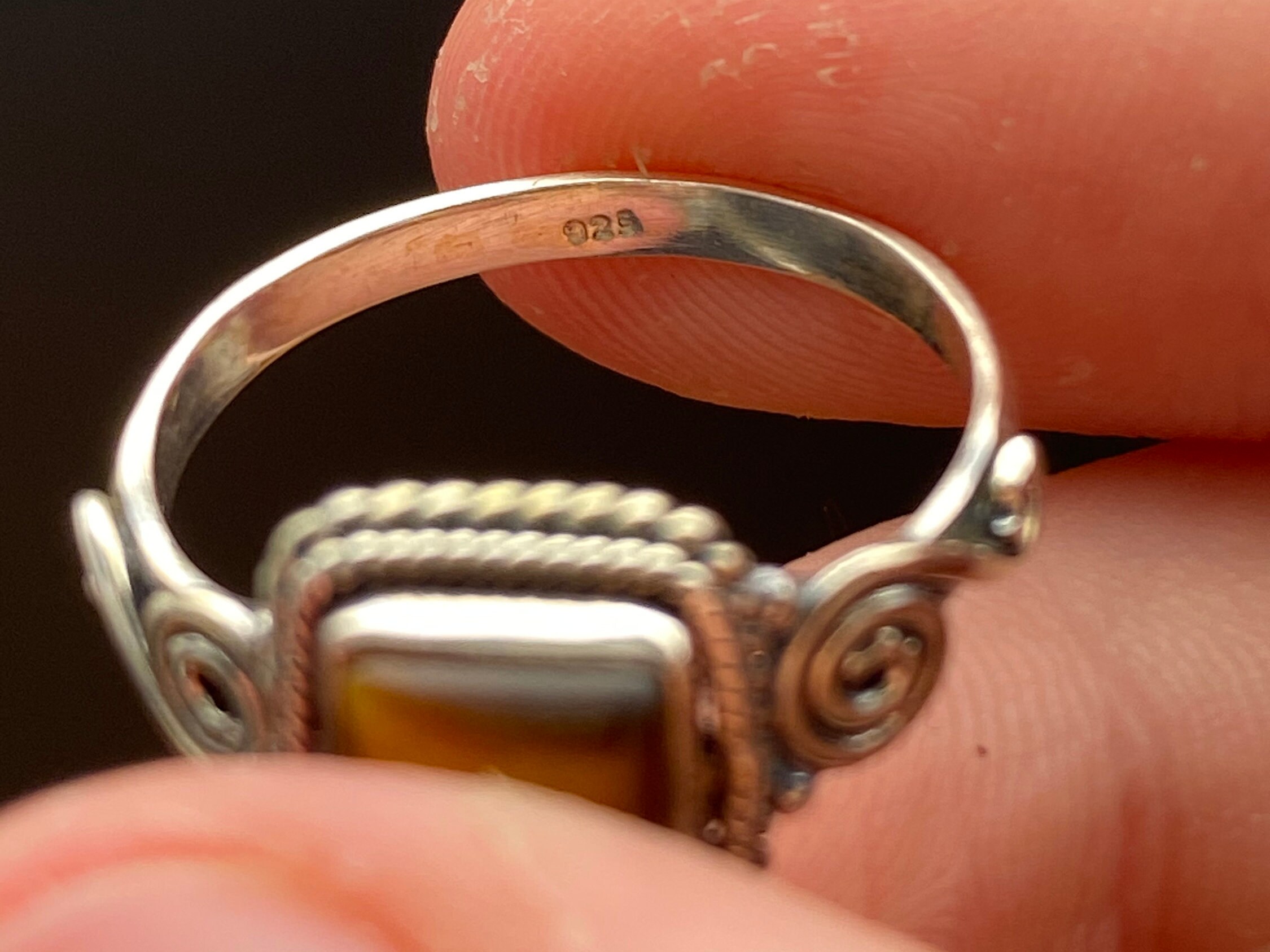 This ring is made of high-quality materials. The Tiger Eye is natural and untreated and the setting is made of solid 925 sterling silver.